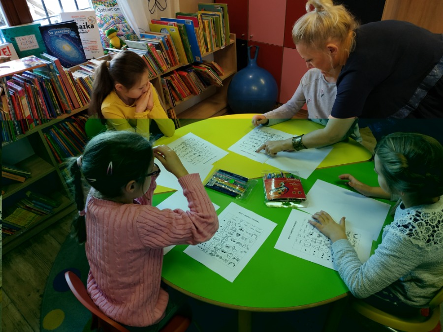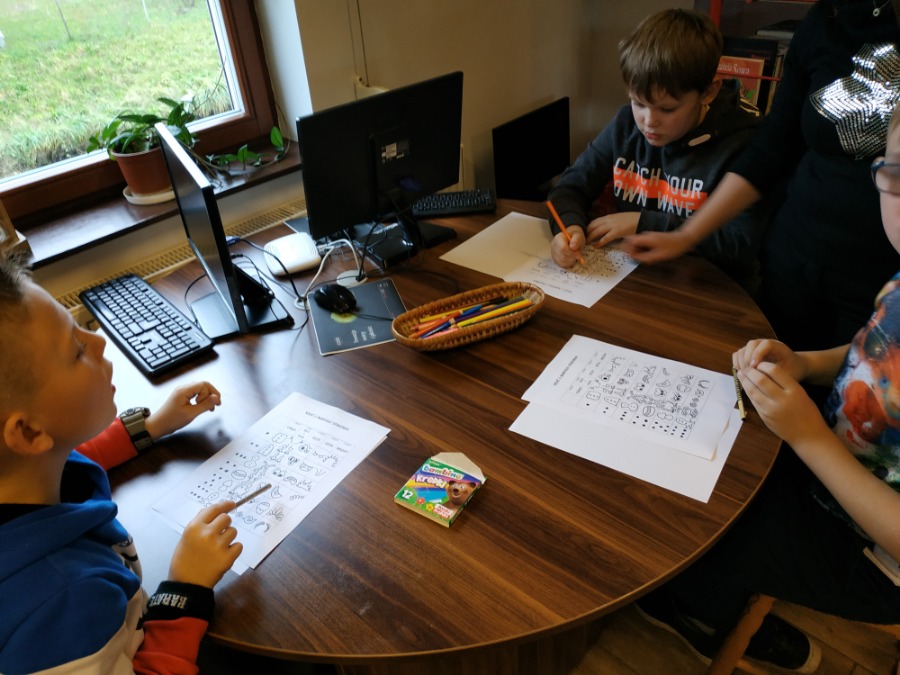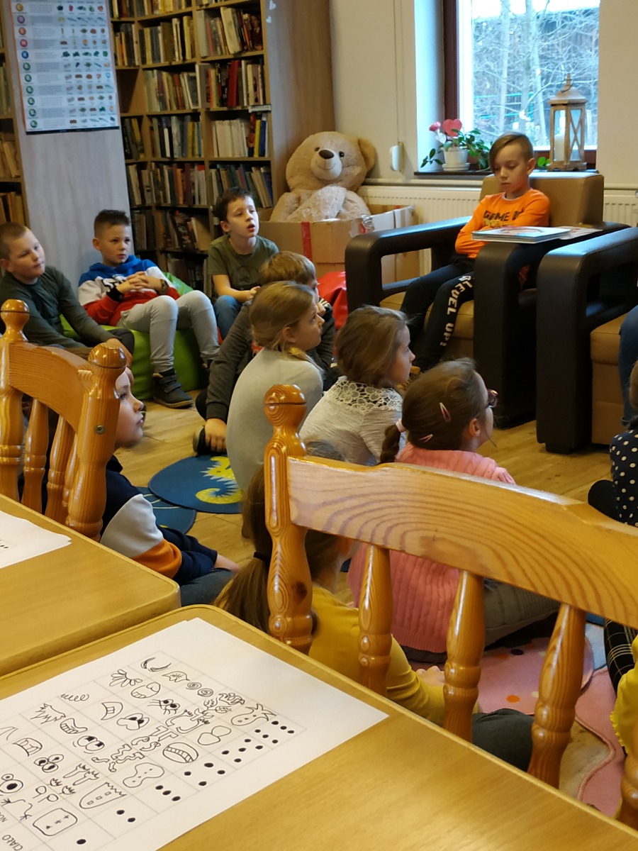 W piątek klasa 3A wzięła udział w warsztatach prowadzonych przez panią Anitę Pasiuk w naszej gminnej Bibliotece. Zajęcia dotyczyły okazywania swoich emocji, na podstawie kolorów dzieci dopasowywały emocje jakie im towarzyszą. Rozmawialiśmy o tym jak każdy z Nas radzi sobie z negatywnymi emocjami. Dzieci chętnie uczestniczyły w rozmowie. Następnie każdy tworzył własnego stworka, wyszły Nam bardzo ciekawe rysunki. Bardzo dziękujemy za miłe przyjęcie, ciekawe zajęcia i już nie możemy się doczekać kolejnych warsztatów.