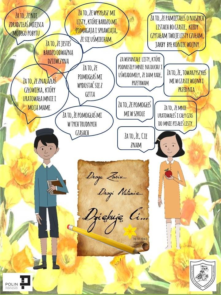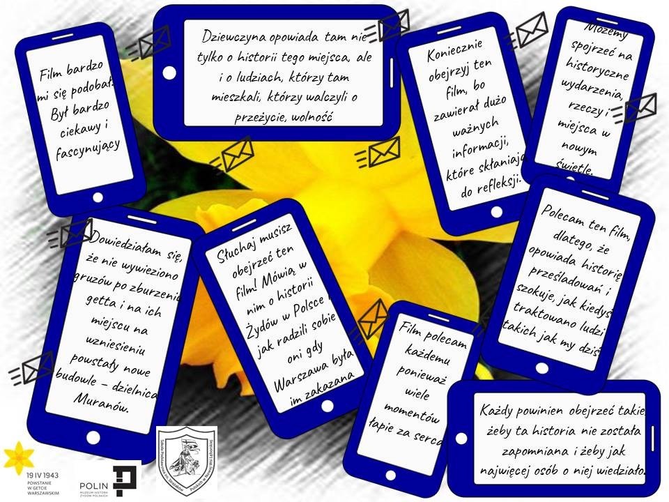 W ramach akcji Żonkile uczniowie naszej szkoły uczestniczyli w wyjątkowych premierach filmowych i słuchowiskach oraz pracowali z kartami pracy przygotowanymi przez Centrum Edukacyjne Muzeum Polin, i wykonywali papierowe żonkile.
