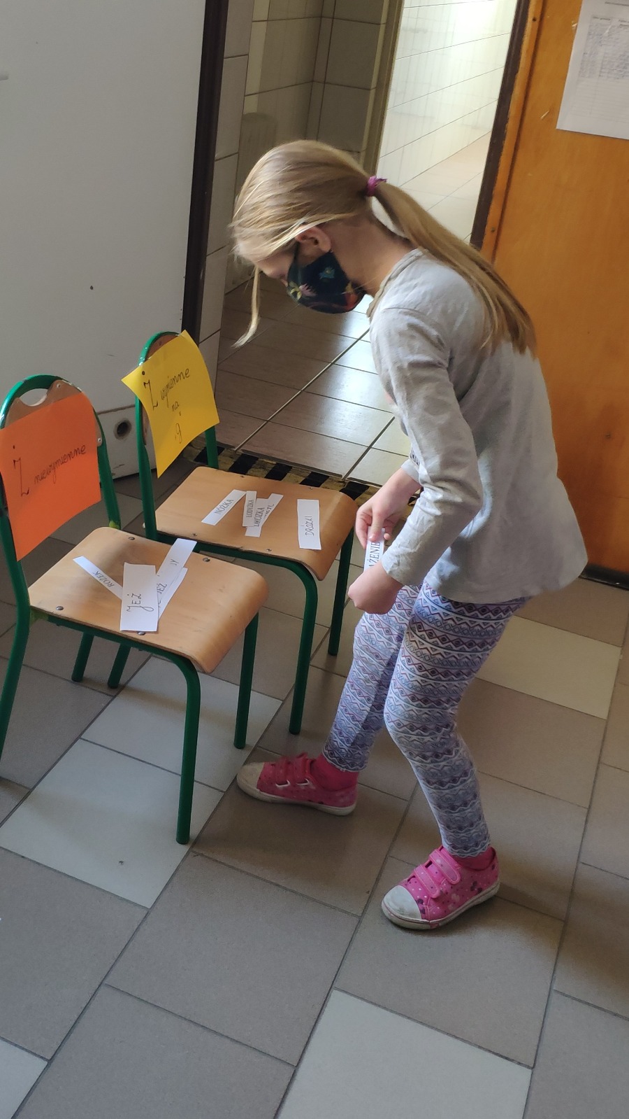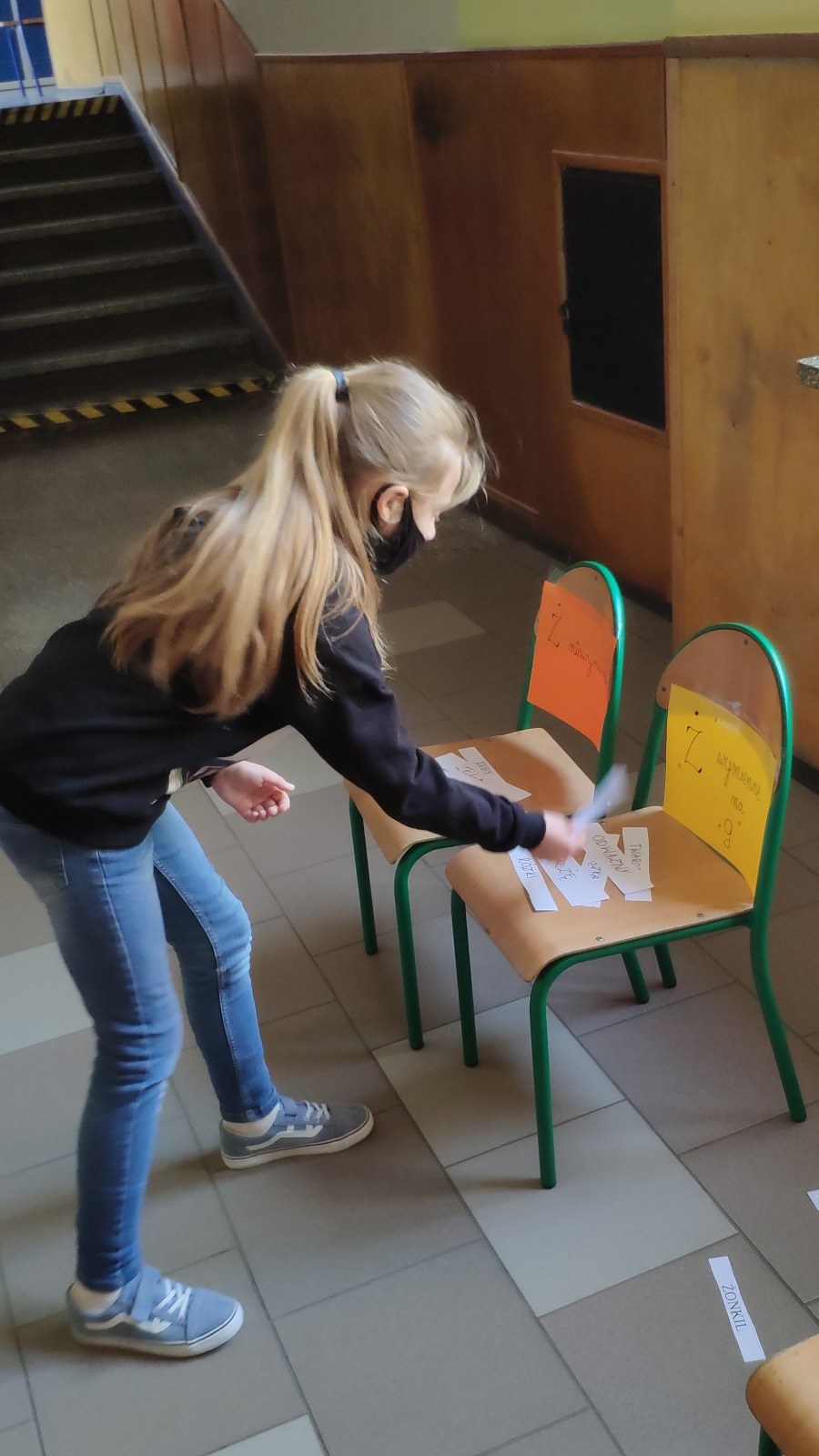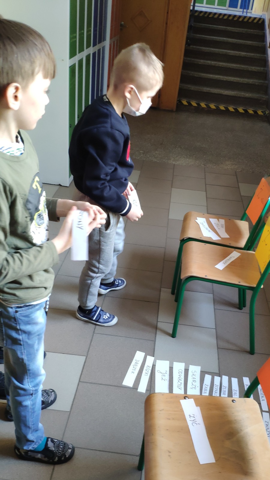 Zasady były proste. Klasa została podzielona na dwie grupy. Każda z grup miała do dyspozycji po dwa krzesełka oraz mnóstwo wyrazów z „ż”. Na jednym z krzeseł uczniowie mieli położyć wyrazy z „ż” wymiennym, na drugim zaś wyrazy z „ż” niewymiennym. Biegana ortografia okazała się nie lada wyzwaniem, ale i świetną zabawą. Uczniowie wykazali się bardzo dobrym refleksem i wiedzą. Każda z grup walczyła zawzięcie o największą liczbę poprawnych odpowiedzi. Taki sposób utrwalenia zasad ortograficznych bardzo się wszystkim spodobał. Na pewno do niego wrócimy!