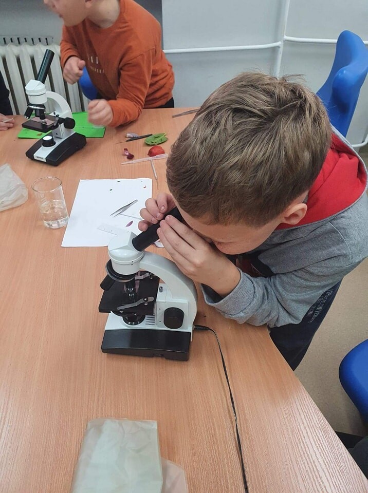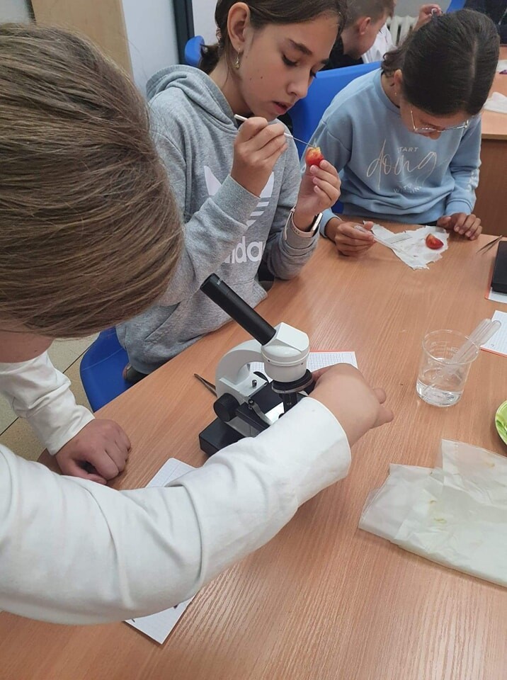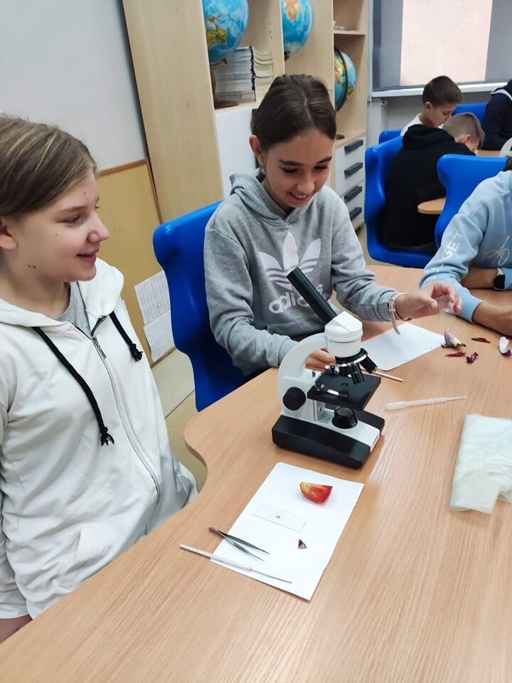 Przez kilka ostatnich lekcji piątoklasiści uczyli się jak poznawać biologię. Korzystając z pięknej pogody, młodzi badacze obserwowali przyrodę na zajęciach terenowych. Mogli wykorzystać do tego lupy oraz lornetki. Jednak najbardziej interesujące było odkrywanie tego, co jest niewidoczne „gołym okiem”. Samodzielne wykonywanie preparatów mikroskopowych oraz obserwowanie budowy komórkowej organizmów, to jest to, co młodzi odkrywcy lubią najbardziej. Dzięki takim zajęciom, uczniowie mogli zobaczyć w jak różny sposób można uczyć się biologii oraz przeanalizować swoją postawę w stosunku do cech dobrego badacza przyrody.