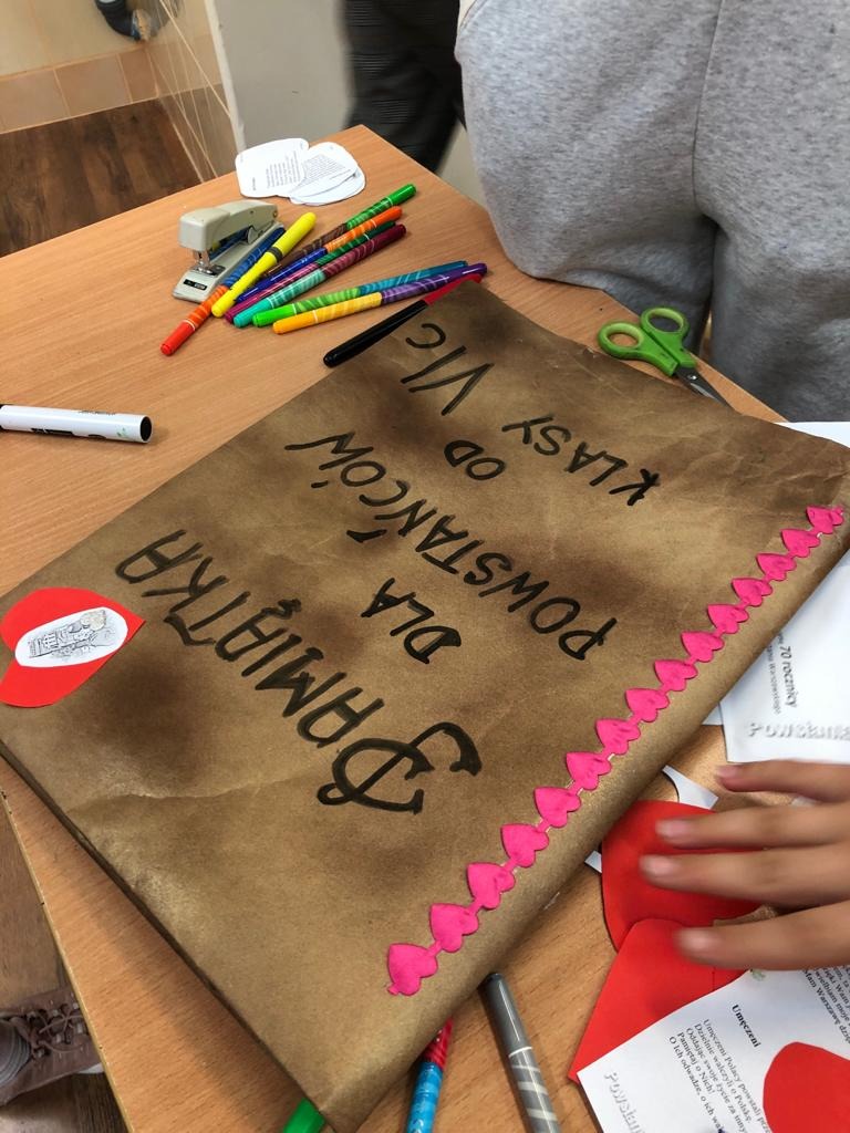W ramach projektu uczniowie wykonali kartki do Powstańców, a także poznali sylwetki bohaterów walk o Warszawę.