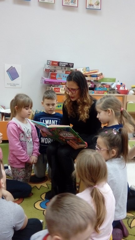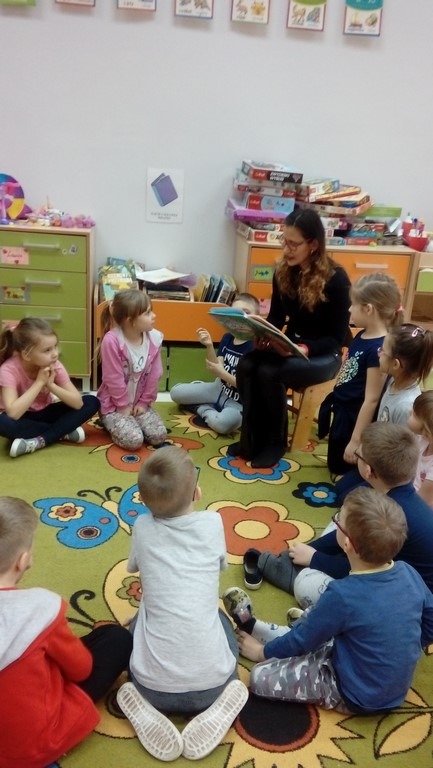 Podczas minionego tygodnia dzieci z grupy 0 „b” odwiedziła mama Hani, która przeczytała nam bajkę „Piękna i Bestia” w ramach realizacji programu „Mały miś w świecie wielkiej literatury” oraz „Cała Polska Czyta Dzieciom”. Dziękujemy Pani Ani za ciekawą lekturę oraz słodki upominek.