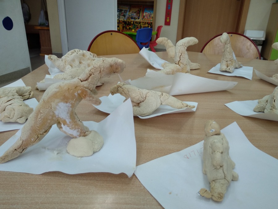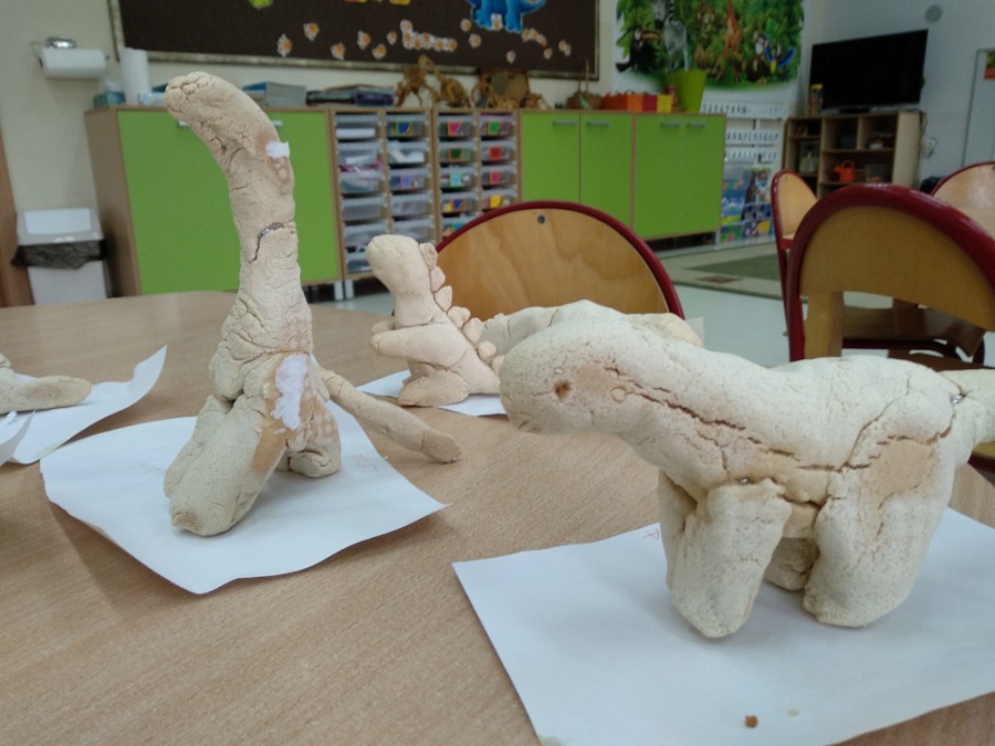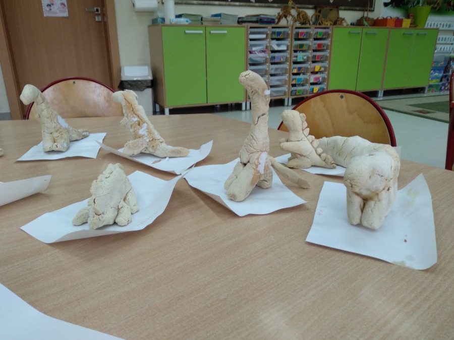 Rzeźbiarskie umiejętności wykazały dzieci z klasy O a na zajęciach plastycznych. Dinozaury o których się uczyliśmy wyszły nam wspaniale. Panie z naszej szkolnej kuchni pomogły nam je upiec dzięki temu będą nas cieszyć dłuższy czas. Po powrocie z kwarantanny pomalujemy je i będą jeszcze piękniejsze