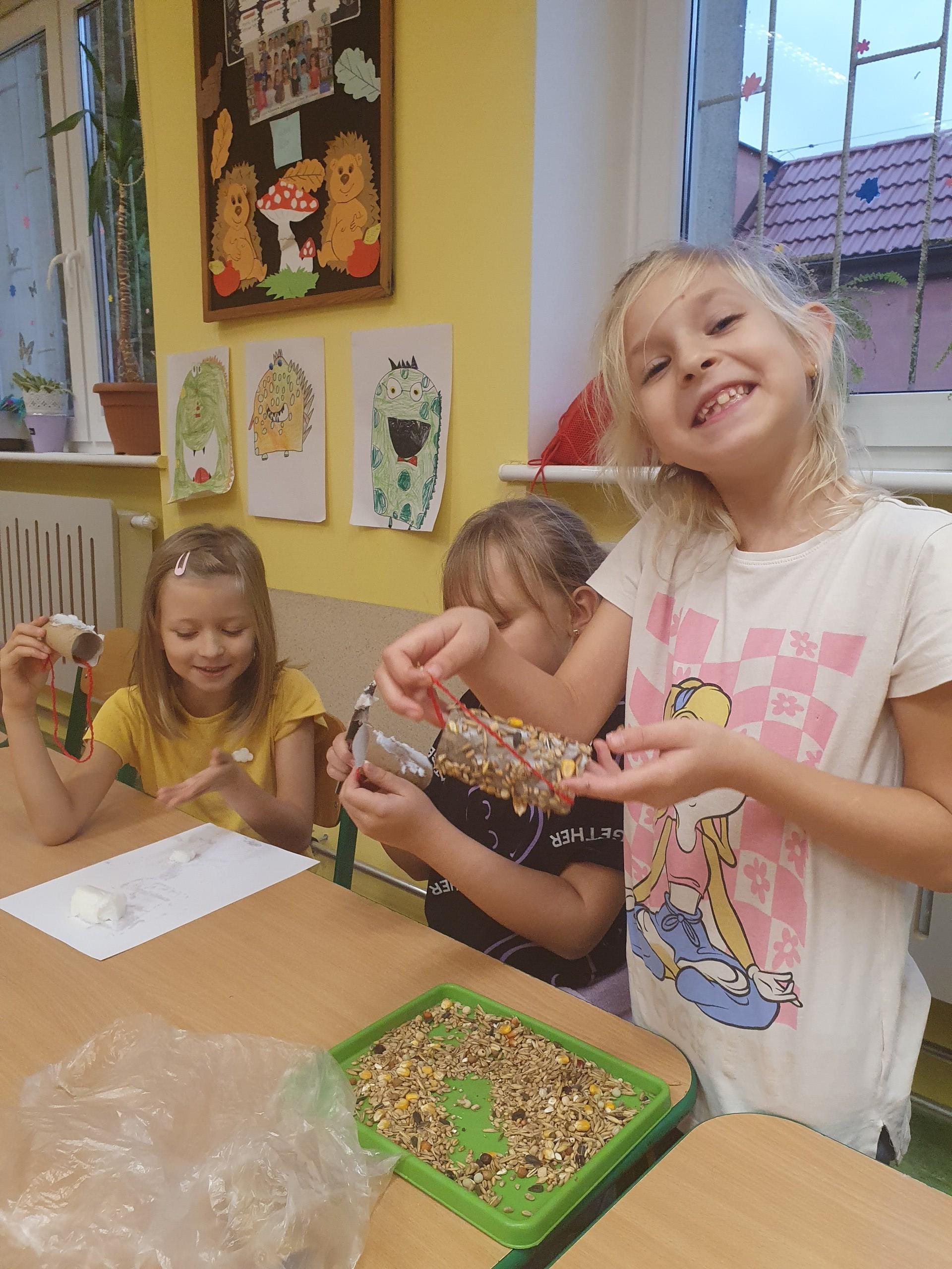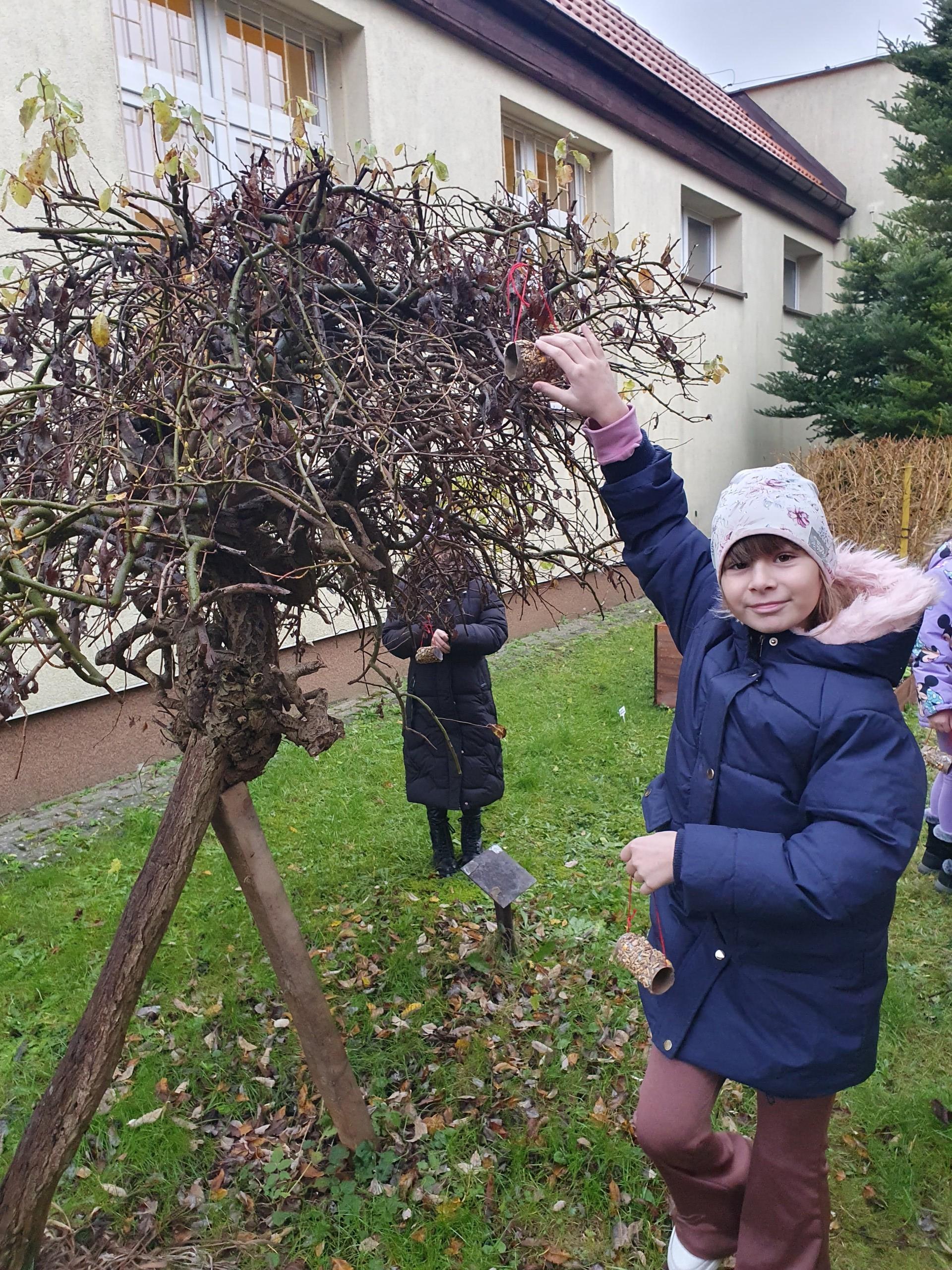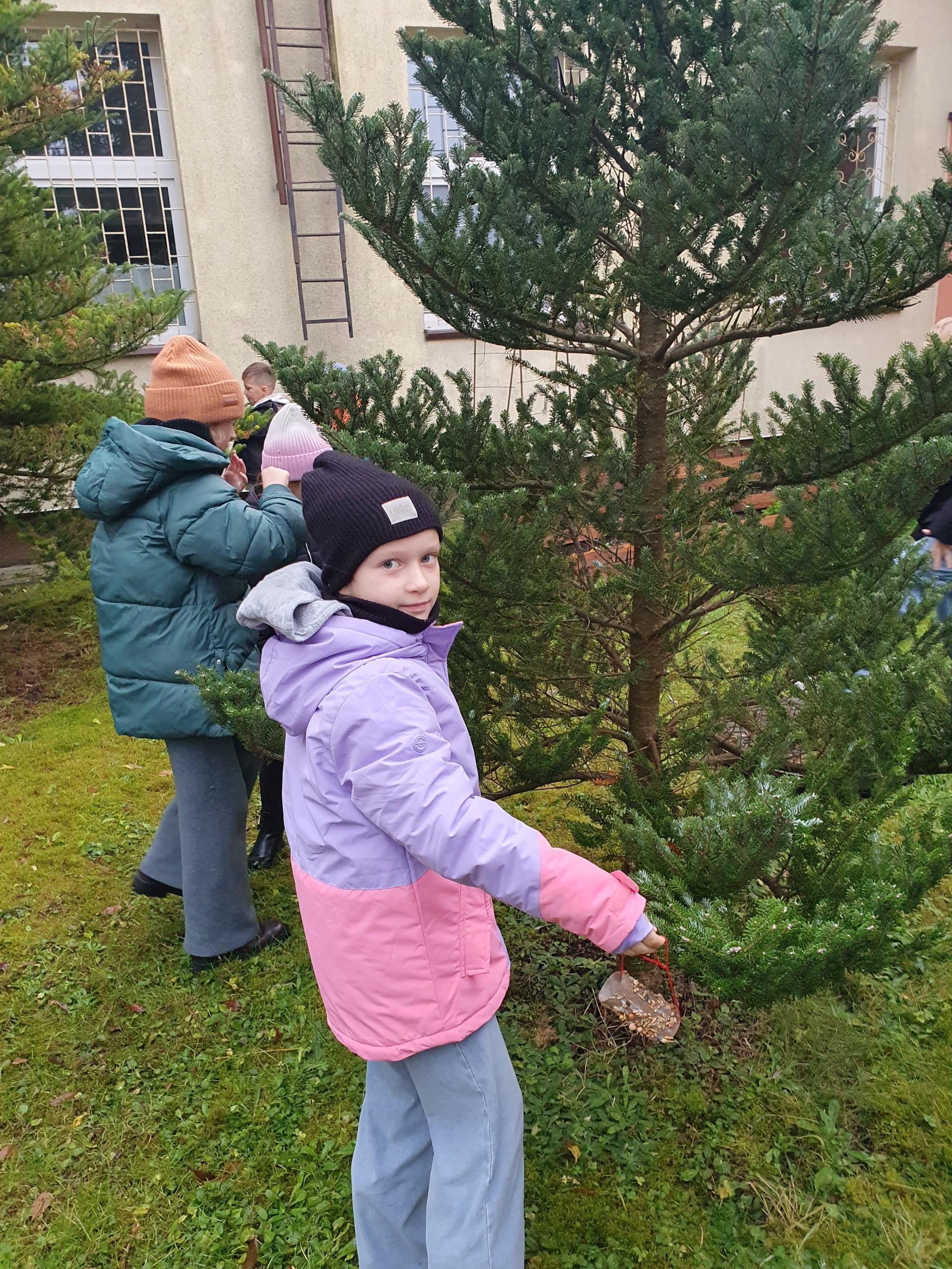 Na zajęciach z edukacji przyrodniczej uczniowie uczyli się, jak można pomagać zwierzętom w zimowym okresie, które pokarmy można im podać, a które mogą im zaszkodzić. Drugoklasiści wykonali ekologiczne karmniki zawierające różne gatunki nasion, które rozwiesili na drzewach w okolicy szkoły.