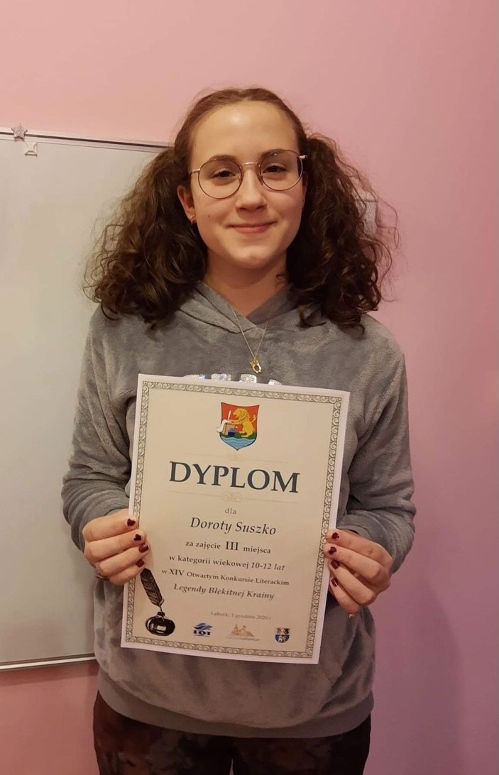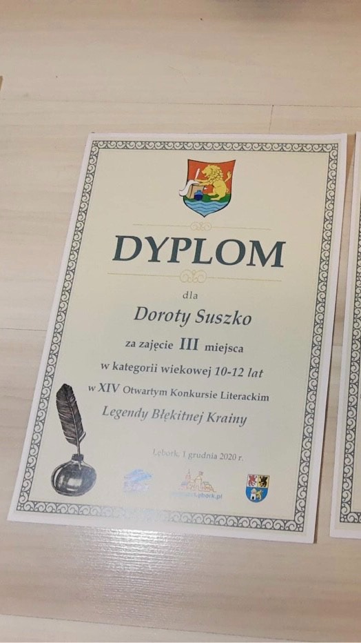 Dobry pomysł i umiejętności literackie naszej uczennicy - Doroty Suszko z klasy 7a - kolejny raz zostały zauważone i docenione przez jury! Zdobyła ona III miejsce w XIV Otwartym Konkursie Literackim Legendy Błękitnej Krainy.