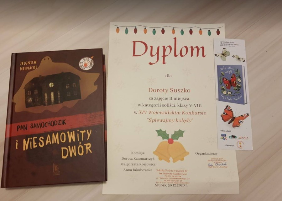 Śpiewanie kolęd w bożonarodzeniowe wieczory jest jedną z najstarszych i najpiękniejszych polskich tradycji. W dawnej Polsce czas ten poświęcano zabawom i śpiewaniu tych starych pieśni obrzędowych, składano sobie życzenia i obdarowywano wzajemnie. Uczennica klasy VII a Dorota Suszko jeszcze przed świętami wzięła udział w XIV WOJEWÓDZKIM KONKURSIE SZKÓŁ PODSTAWOWYCH „Śpiewajmy kolędy” wyśpiewując II miejsce w swojej kategorii wiekowej. Gratulujemy!