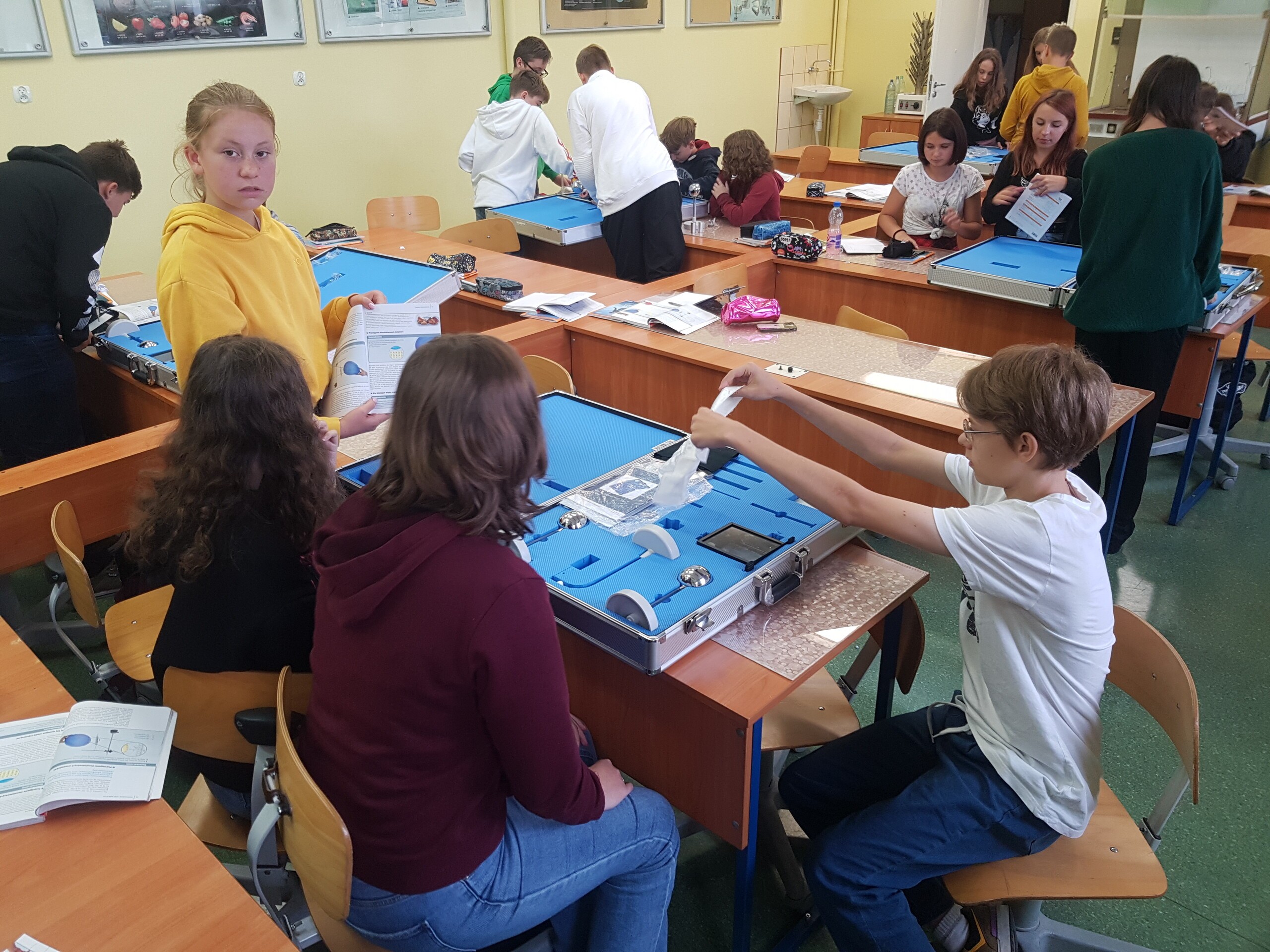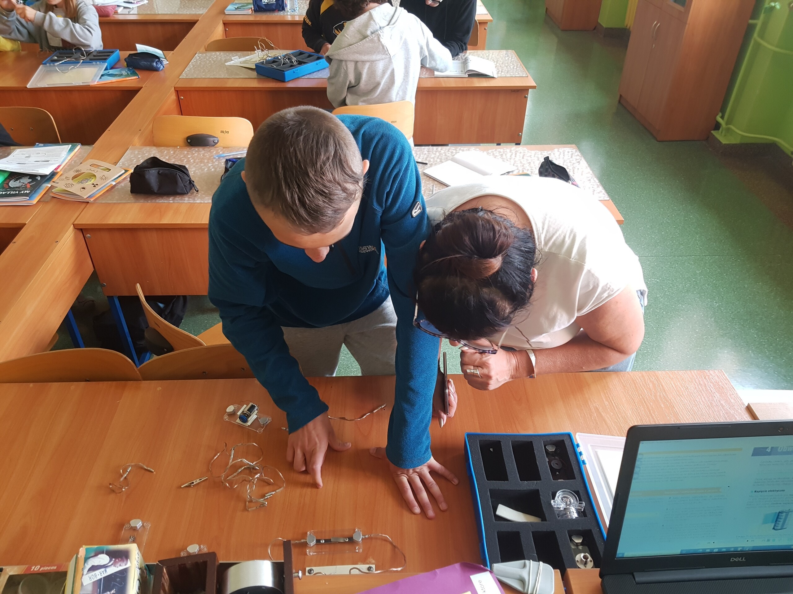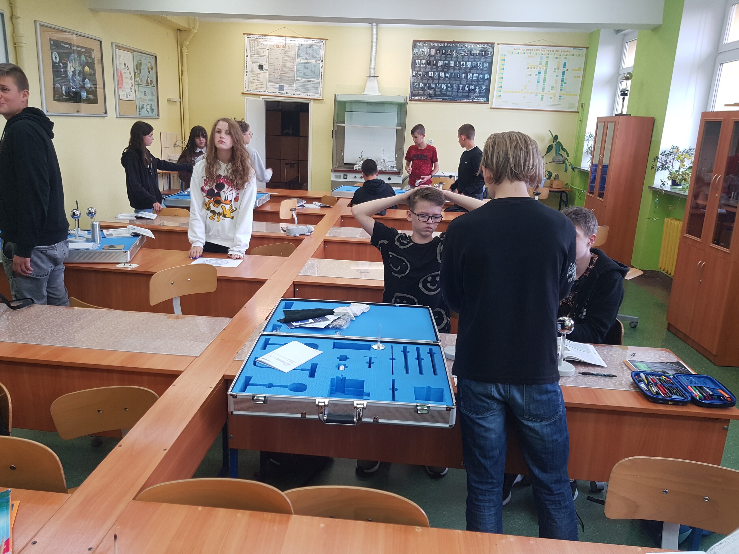 We wrześniu, na lekcjach fizyki, uczniowie klas 8 poznawali zagadnienia związane z elektrostatyką i prądem elektrycznym. Oprócz zajęć teoretycznych odbywały się lekcje doświadczalne. Wszystkie dzieci podczas tych zajęć bardzo chętnie pracowały.