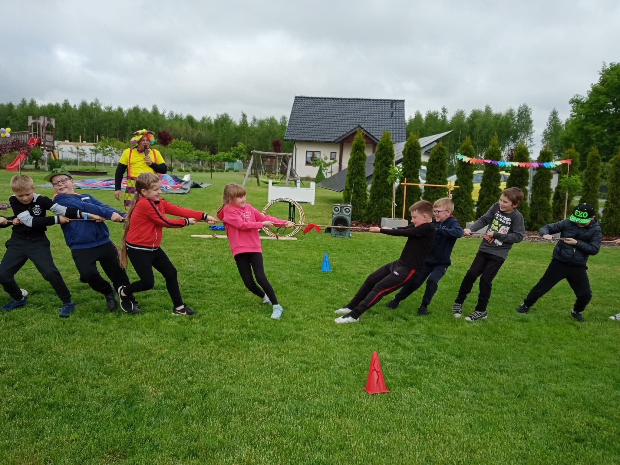 Uczniowie klasy I a Dzień Dziecka spędzili doskonale bawiąc się na świeżym powietrzu. Były gry i zabawy z elementami rywalizacji – skoki w workach, przeciąganie liny, zabawy z chustą animacyjną , a także mały pokaz iluzji oraz bańki mydlane . Nie zabrakło animacji z dmuchańcem. Odbył się także klasowy pokaz talentów. Ten dzień na długo pozostanie w naszej pamięci.