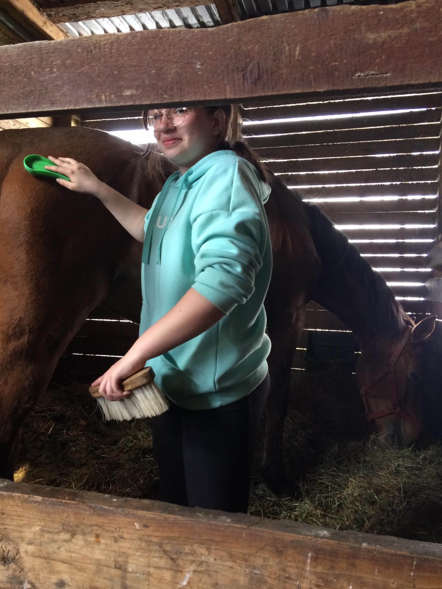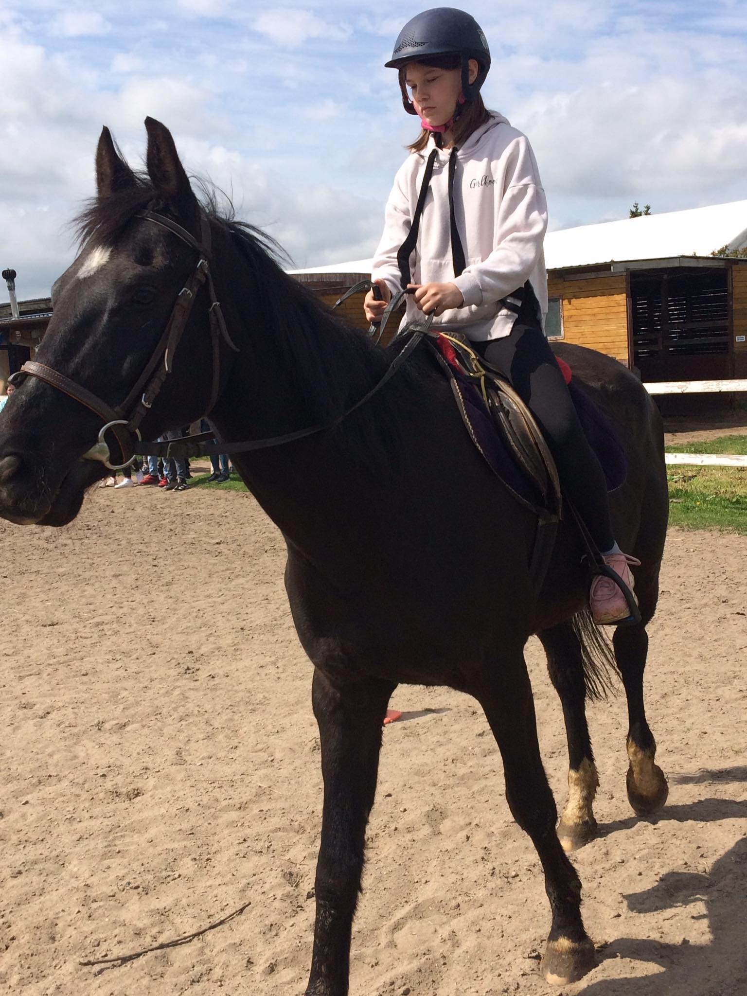 Uczniowie kl. 6b Dzień Dziecka spędzili w stadninie koni „Koniczynka” w Krępie Kaszubskiej. Gdy przyjechaliśmy na miejsce, z uśmiechem powitał nas Pan - właściciel stadniny. Zaprosił na ognisko, przy którym upiekliśmy kiełbaski. Po posiłku wzięliśmy udział w zajęciach. Dowiedzieliśmy się wielu ciekawych rzeczy. Między innymi nauczyliśmy się prowadzić konia. Potem każdy, kto miał ochotę, przejechał się na koniu, prowadzonym przez instruktora. Podziwialiśmy również naszą koleżankę z klasy - Zosię - która zaprezentowała jazdę konną połączoną ze skokami przez przeszkody. Wszyscy wróciliśmy bardzo zadowoleni.