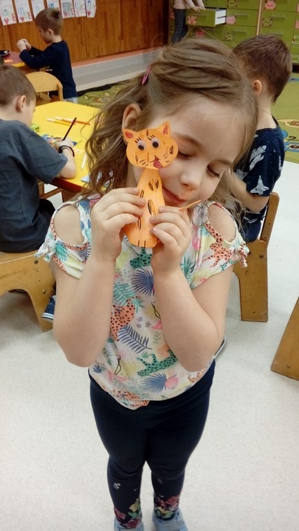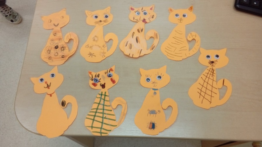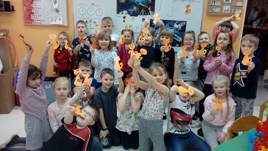 W grupie 0 „b” tego dnia rozmawialiśmy o kotach. Poznaliśmy ich budowę, usposobienie, zwyczaje. Każdy miał okazję wymienić się swoimi wiadomościami na temat kotów, opowiadać o swoich milusińskich. Bawiliśmy się w „Kocie wygibasy oraz wiele innych zabaw związanych z kotami, jak np. „koci taniec” „wchodzi kotek na płotek”, „poranna gimnastyka kotka” oraz „najładniejszy koci kłębek” - czyli układanie się kotka do poobiedniej drzemki i „Kocie mruczanki”. Obejrzeliśmy również bajkę „Przygody kota Filemona” oraz zrobiliśmy prace plastyczne – papierowe kotki.