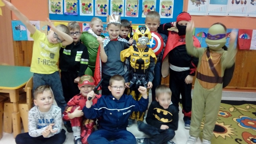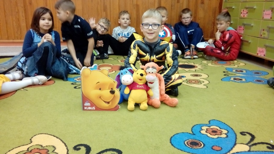 We wtorek 5 listopada w grupie 0 b było jak w bajce. Wszyscy przyszli do szkoły przebrani za postacie z różnych bajek. Podczas zajęć odwiedziła nas bajkowa wróżka , która przyniosła list informujący o tym, że zły czarodziej Kadabra rzucił klątwę i pozamieniał bohaterów bajek! Aby pomóc zdjąć zaklęcie z bajkowej krainy musieliśmy wykonać wiele zadań, wziąć udział w zabawach dydaktycznych, grach i konkursach, które związane były z tematyką bajek. Następnie kolorowaliśmy bajkowe obrazki i czytaliśmy książeczki. Ale udało się - wszystkie postacie wróciły do swoich bajek J