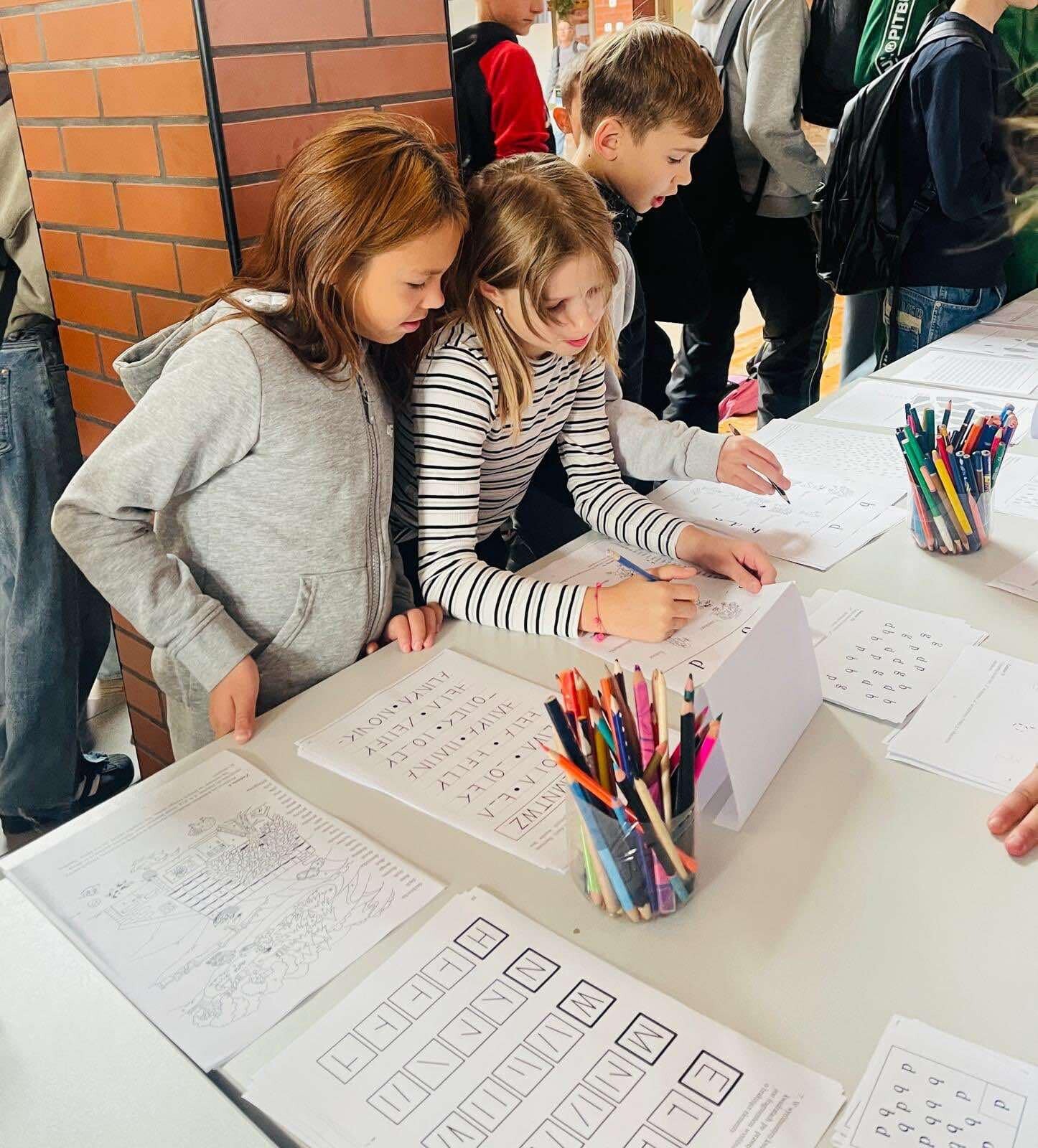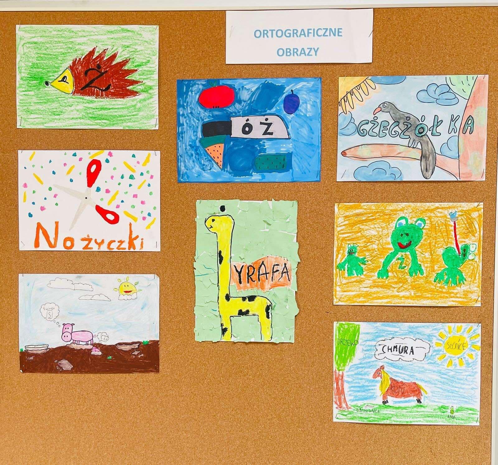 Klasy II wykonywały prace plastyczne z podobnymi literami, klasy III tworzyły ortograficzne obrazy.
