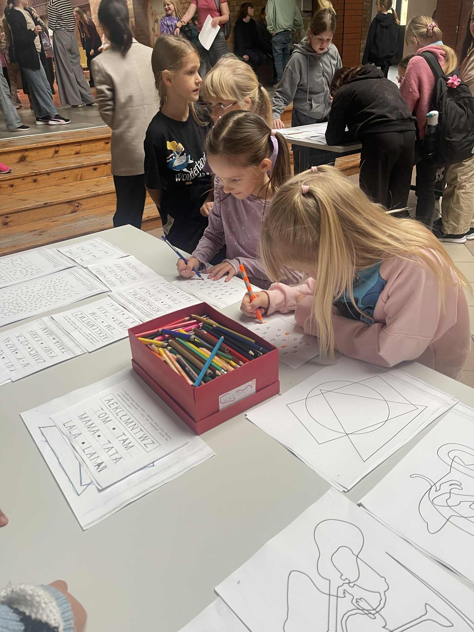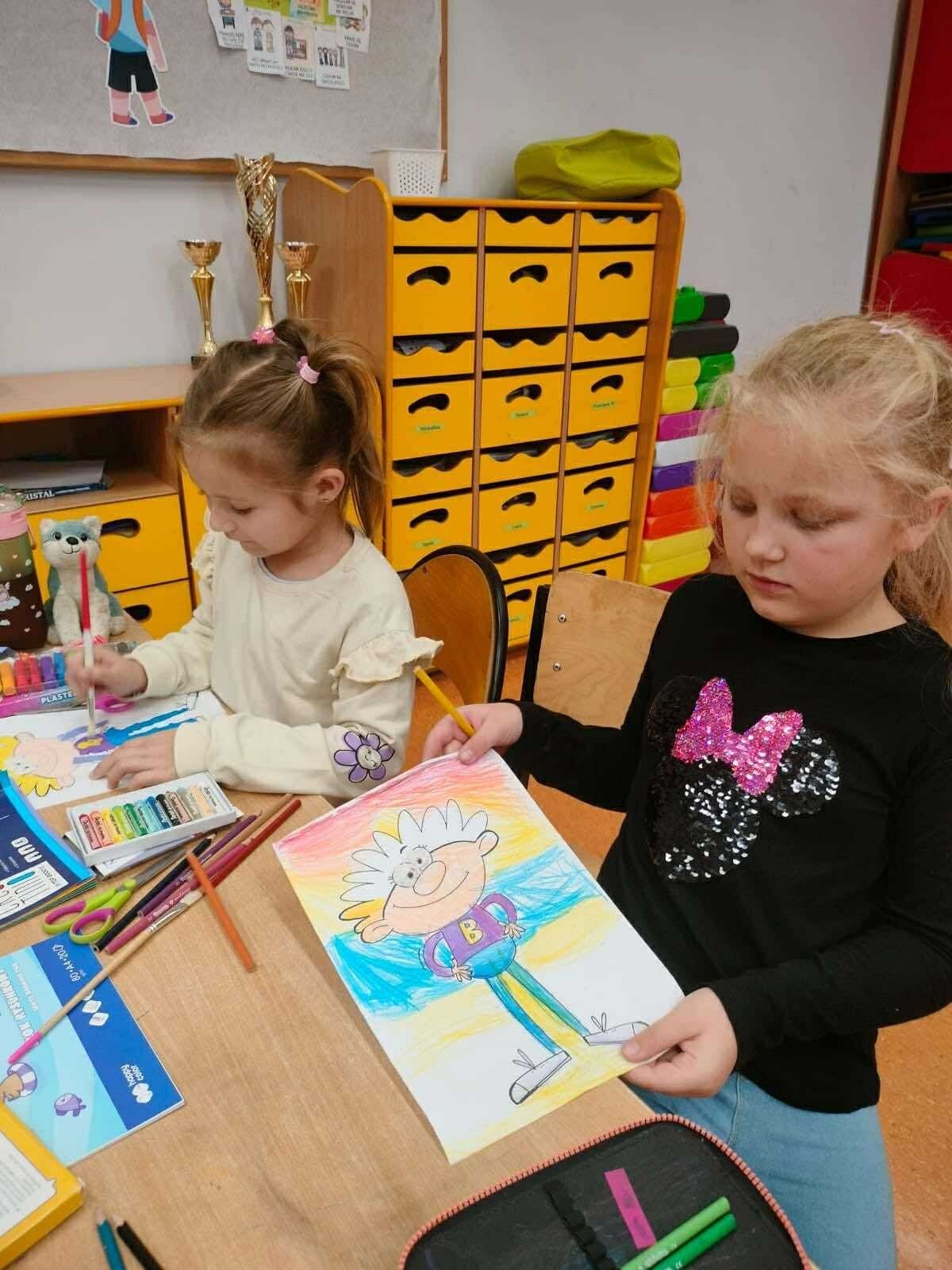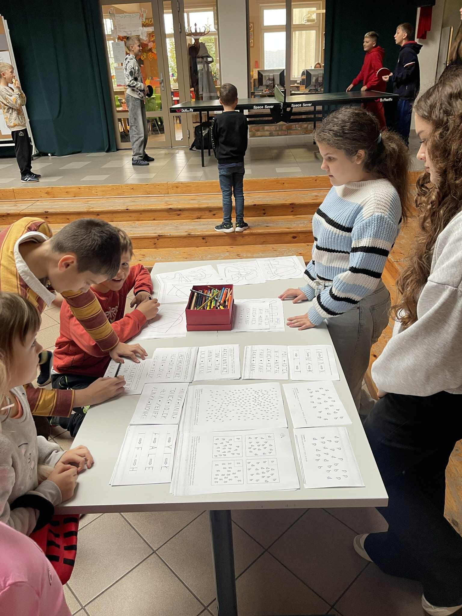 W ramach aktywnych przerw oraz na zajęciach dodatkowych mogli wziąć udział w zabawach ćwiczących koncentrację, pamięć, logiczne myślenie, percepcję wzrokową, słuchową, koordynację wzrokowo - ruchową, czy sprawność manualną. W świetlicy mieli okazję posłuchać pięknych baśni Hansa Christiana Andersena. Ponadto klasy I wysłuchały bajki o Bratku i w ramach konkursu robiły jego portret. Klasy II wykonywały prace plastyczne z podobnymi literami, a klasy III tworzyły ortograficzne obrazy.