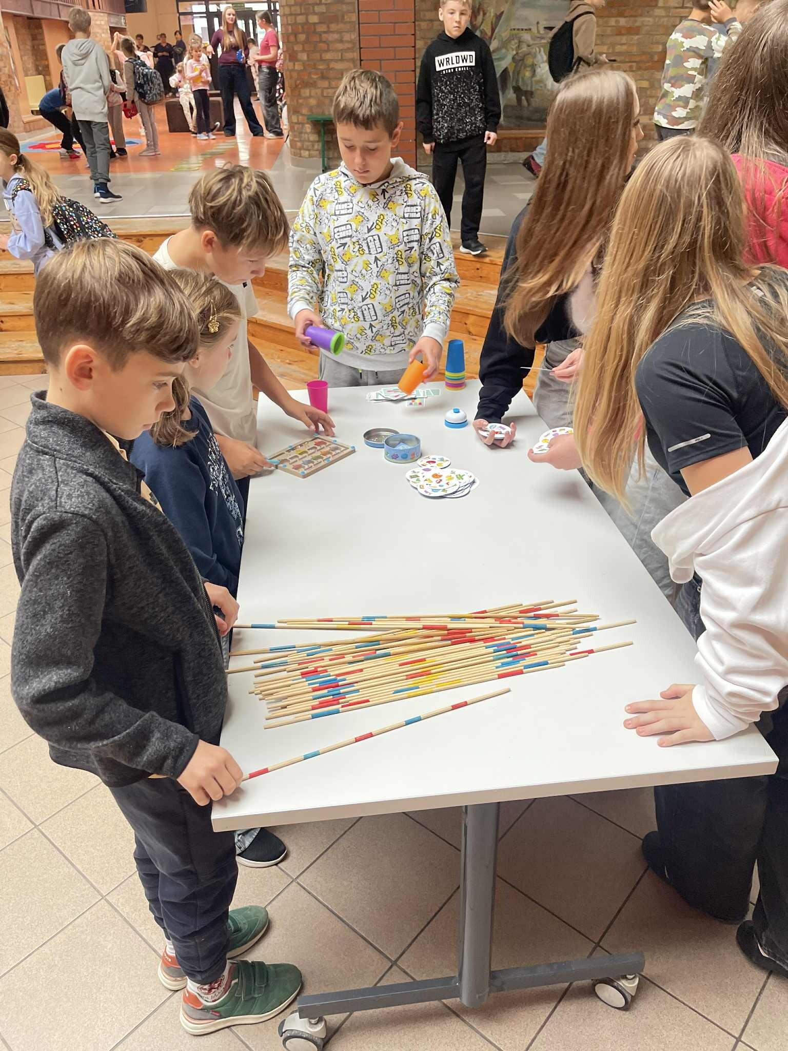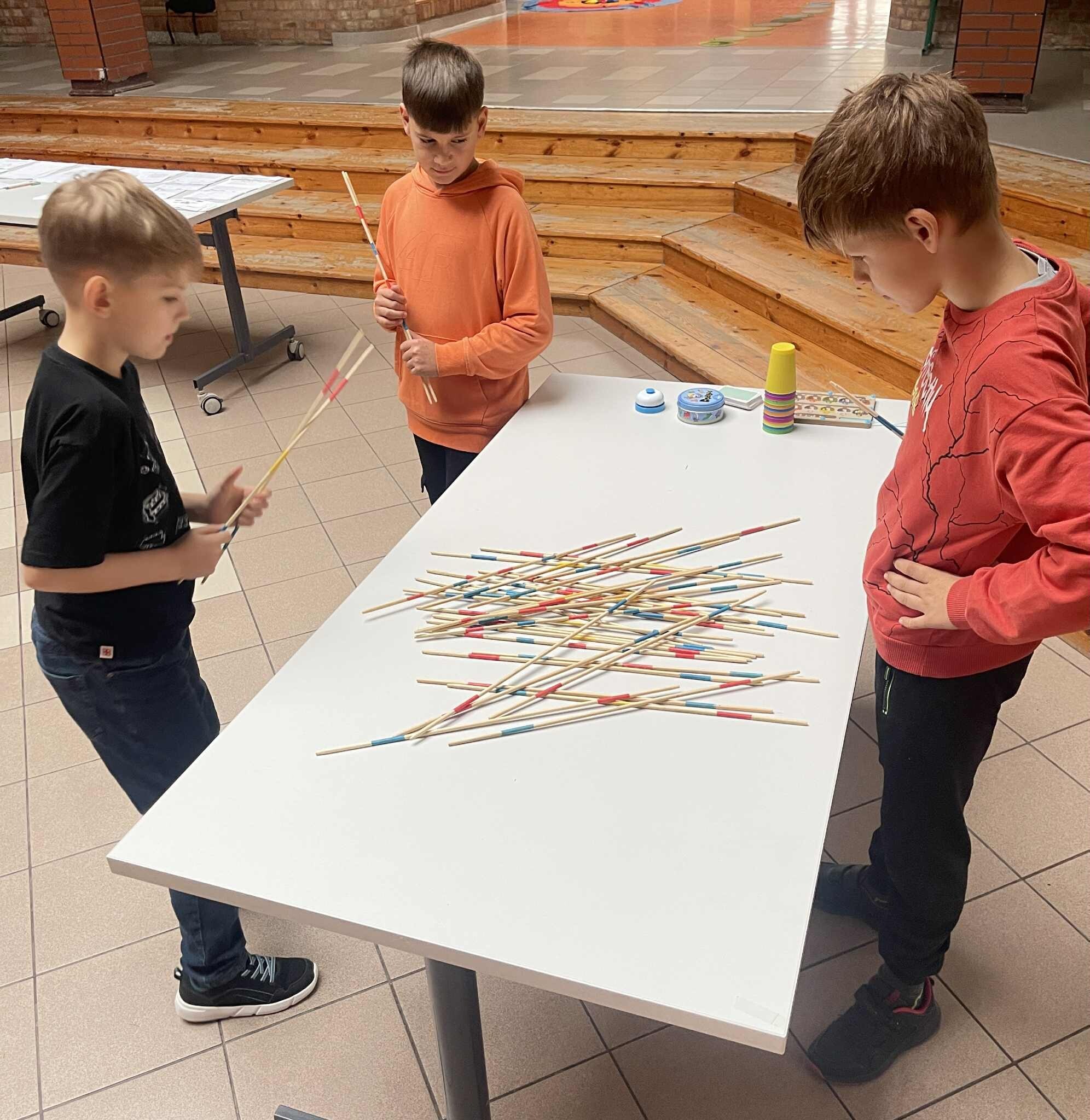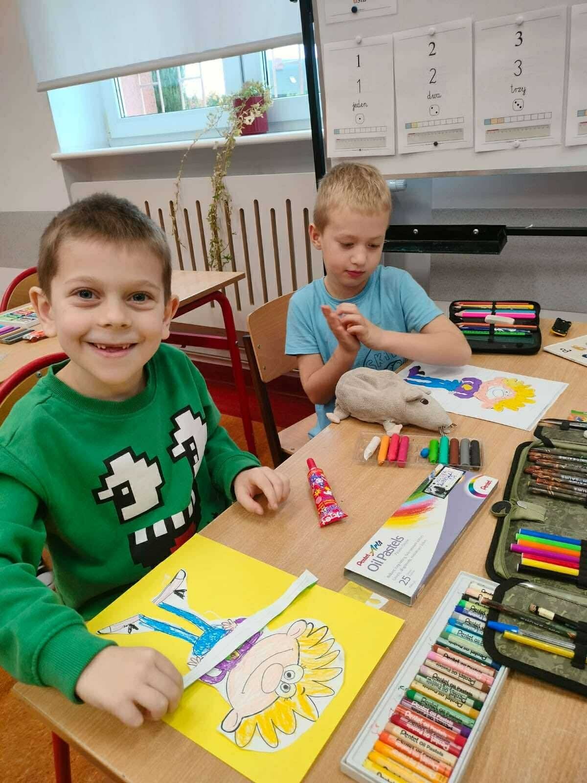 W ramach aktywnych przerw oraz na zajęciach dodatkowych mogli wziąć udział w zabawach ćwiczących koncentrację, pamięć, logiczne myślenie, percepcję wzrokową, słuchową, koordynację wzrokowo - ruchową, czy sprawność manualną. W świetlicy mieli okazję posłuchać pięknych baśni Hansa Christiana Andersena. Ponadto klasy I wysłuchały bajki o Bratku i w ramach konkursu robiły jego portret. Klasy II wykonywały prace plastyczne z podobnymi literami, a klasy III tworzyły ortograficzne obrazy.