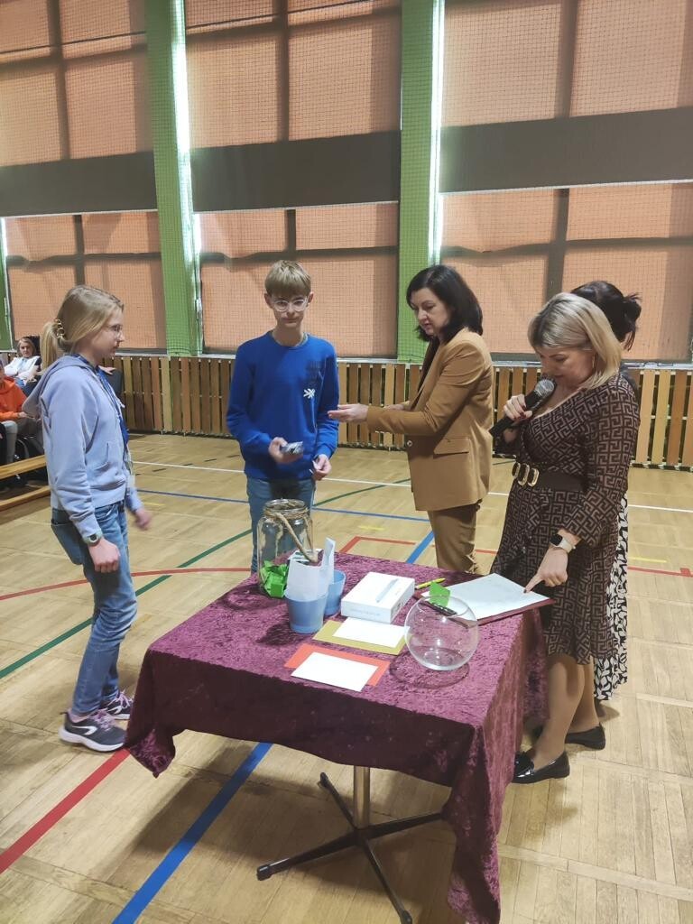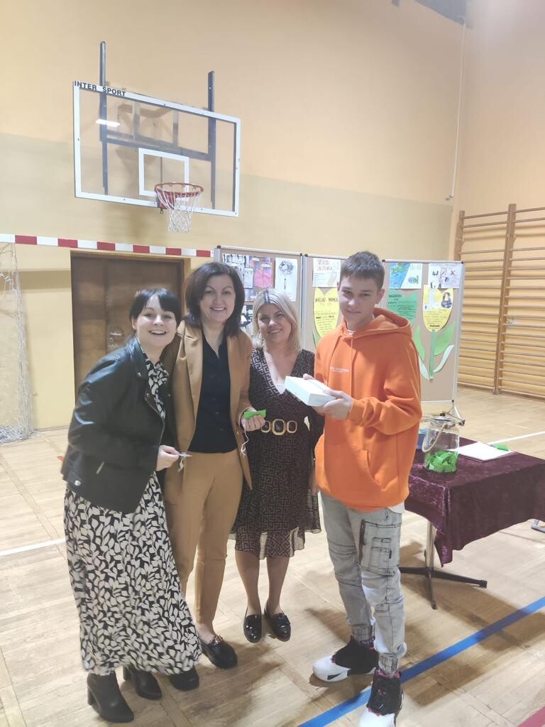 Wyróżnienia za walor artystyczny otrzymali: Adrianna Gibuła- Niegrebecka z klasy VIIIB, Szymon Serwański z klasy VIIID, Agata Ramczyk z klasy VI B. Uczniowie otrzymali słuchawki bezprzewodowe.