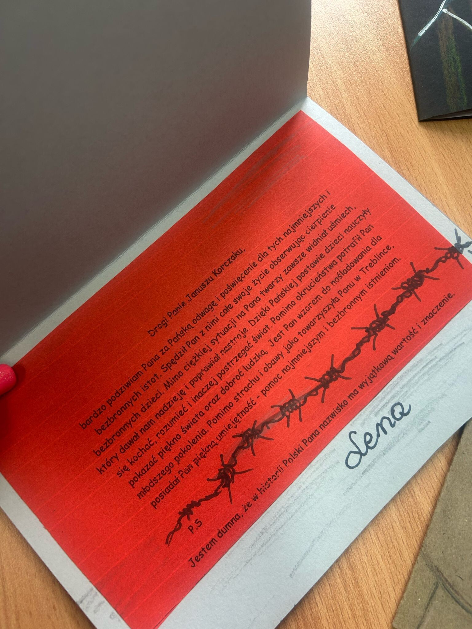 Uczniowie naszej szkoły uczestniczyli w kolejnym etapie Wojewódzkiego Konkursu ,,Kartka dla Korczaka". W pierwszym wykazali się doskonałą znajomością życia i twórczości Janusza Korczaka, a w drugim redagowali kartkę z podziękowaniem dla „Starego Doktora”.