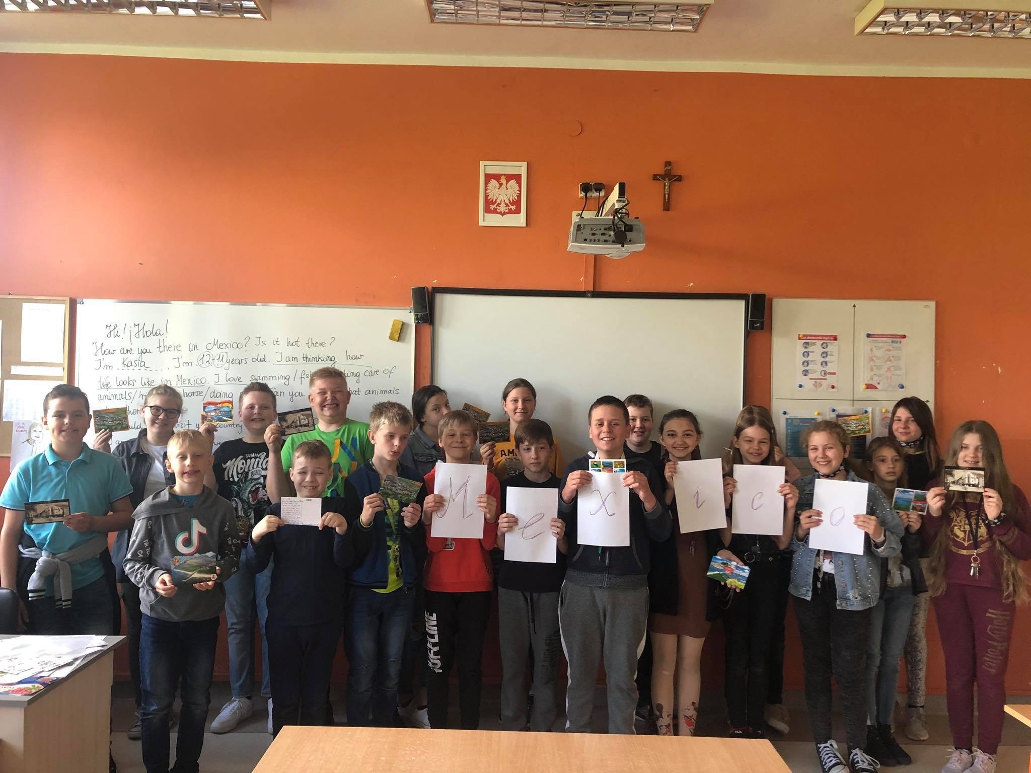 W ramach innowacji pedagogicznej Using English to Communicate with our Mexican Friends, klasa 5a postanowiła wysłać pocztówki do kolegów i koleżanek z Meksyku. Uczniowie podczas nauki zdalnej mieli możliwość spotkać się z rówieśnikami z tak odległego kraju w formie online. Dzięki tym spotkaniom nasi uczniowie zapoznali się z kulturą i obyczajami Meksyku, ale również przybliżyli polskie obyczaje swoim kolegom ze Szkoły Aculmaitl. Mamy nadzieję, że pocztówki szczęśliwie dotrą do Meksyku. Oczekując odpowiedzi zwrotnej, wierzymy, że to dopiero początek naszej owocnej współpracy.