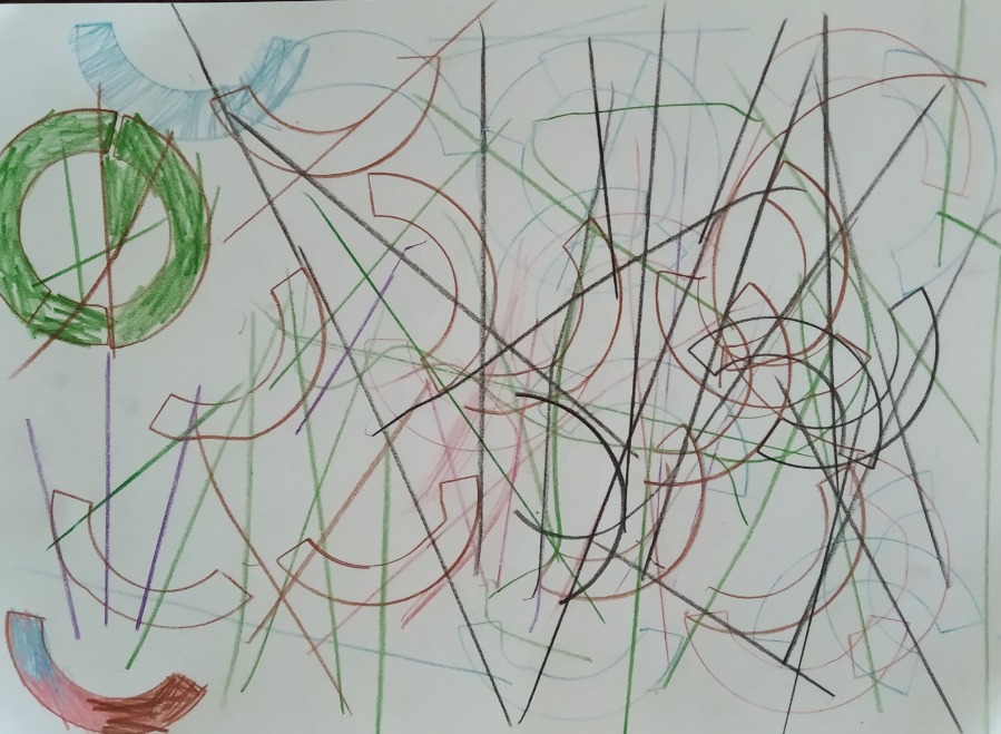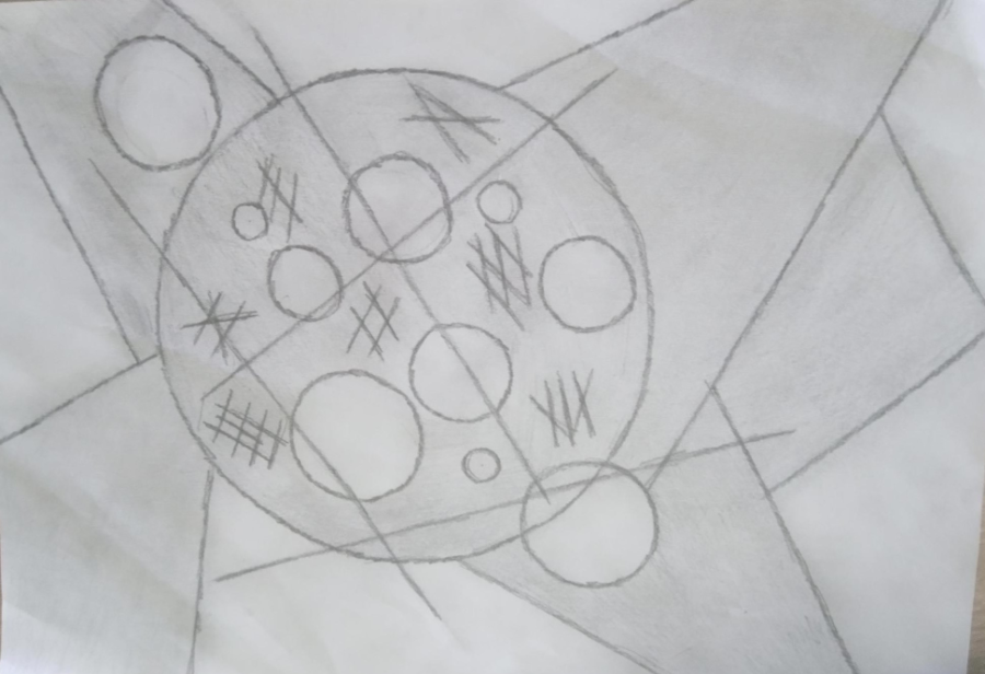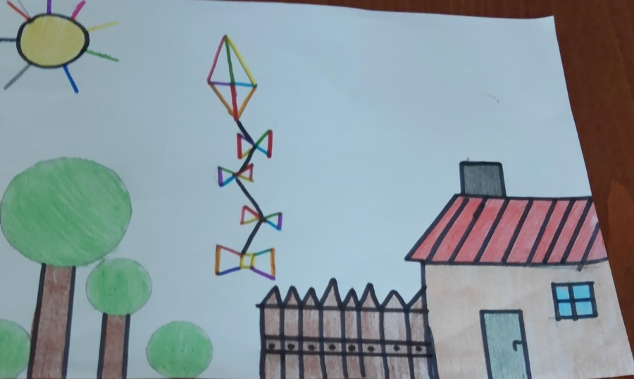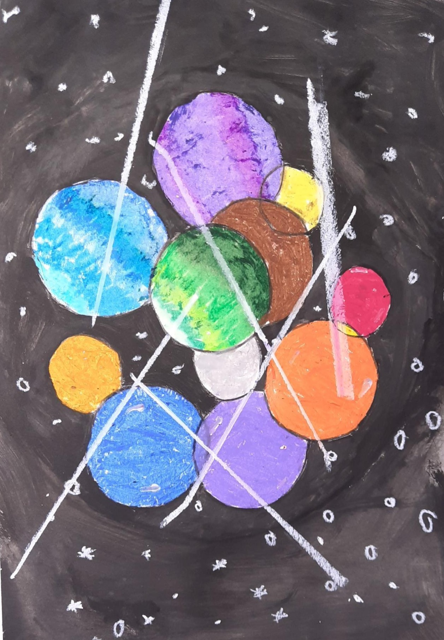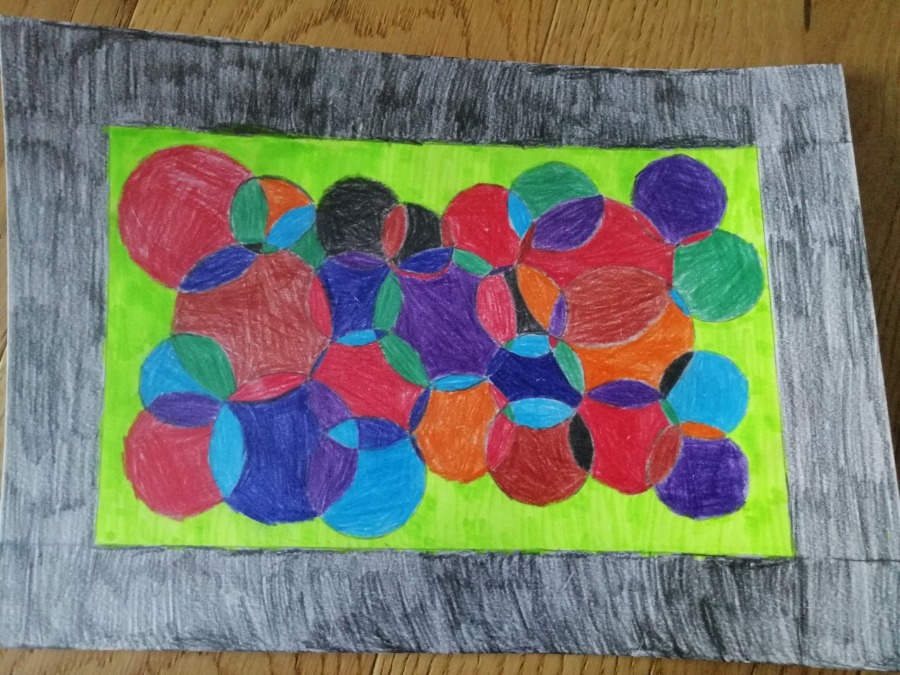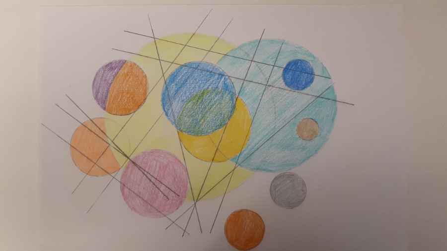 Uczniowie klas 5 podczas zajęć technicznych online wykonali piękne prace, wykorzystując przybory do wykonywania rysunków technicznych.