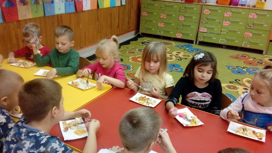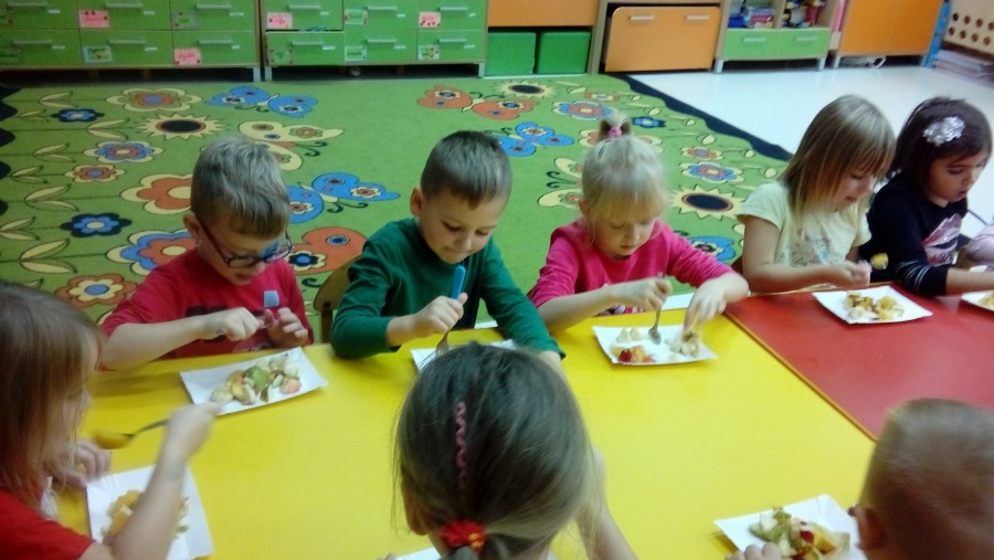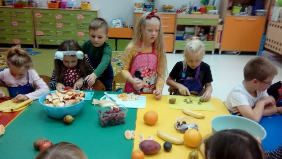 Kolejne zadanie z modułu II „JESTEM TYM, CO JEM I PIJĘ” w ramach realizacji ogólnopolskiego projektu ,,Moje zdrowie – moja siła, wielka moc” w grupie „0” b wykonane ;-) Dziś robiliśmy pyszne zdrowe sałatki owocowe. Rozmawialiśmy również na temat zdrowego odżywiania i zastąpienia słodyczy owocami. Podzieliliśmy owoce na polskie i zagraniczne. Sałatka była pyszna :)