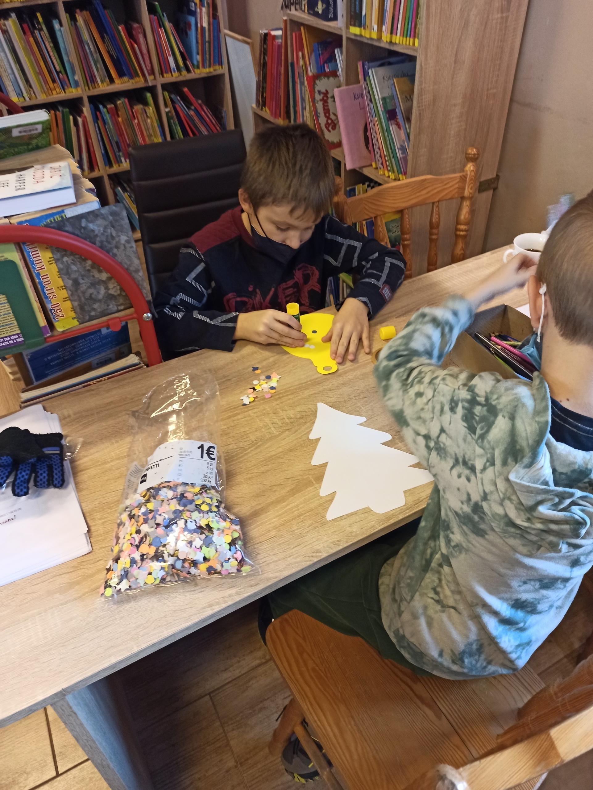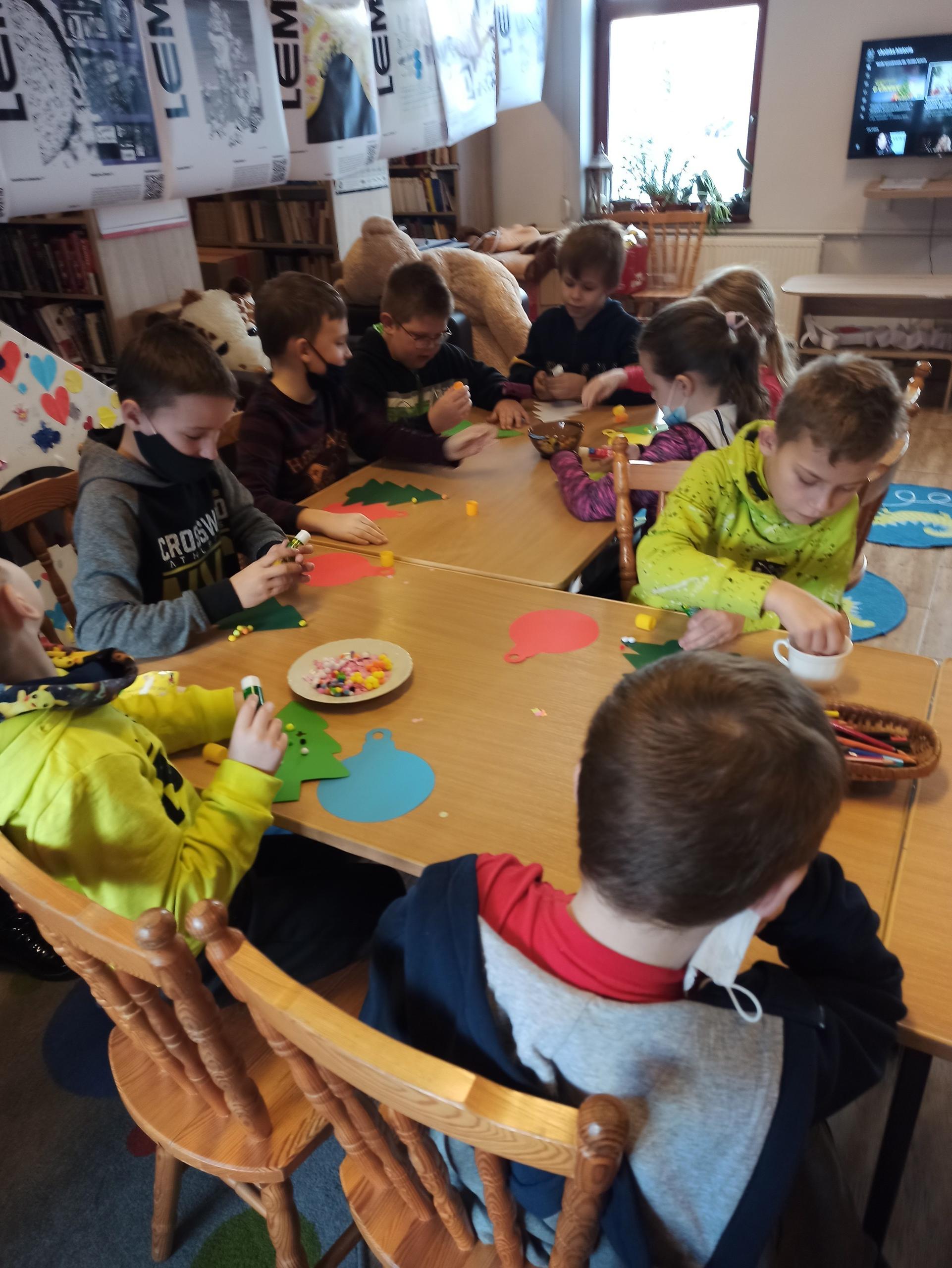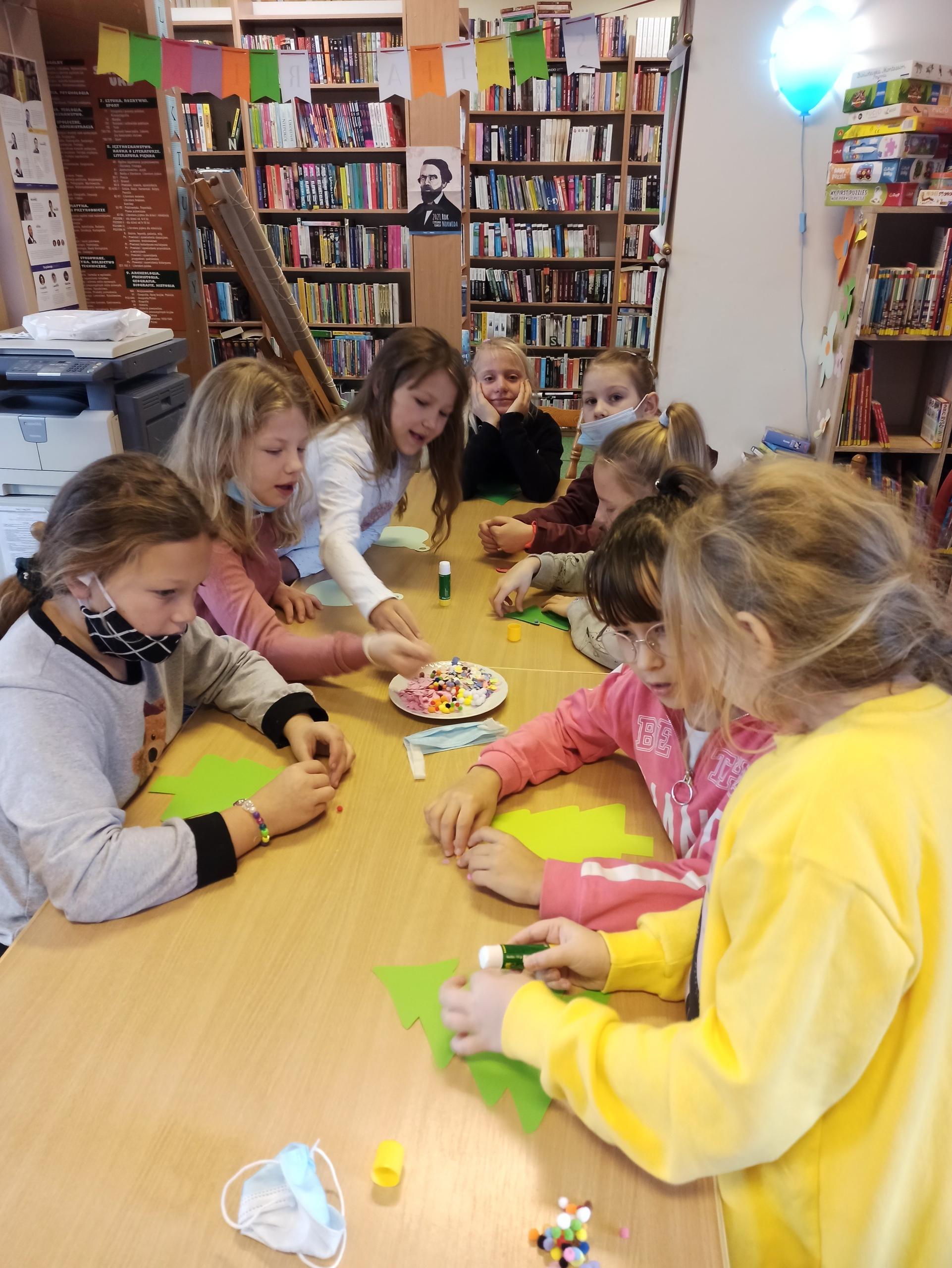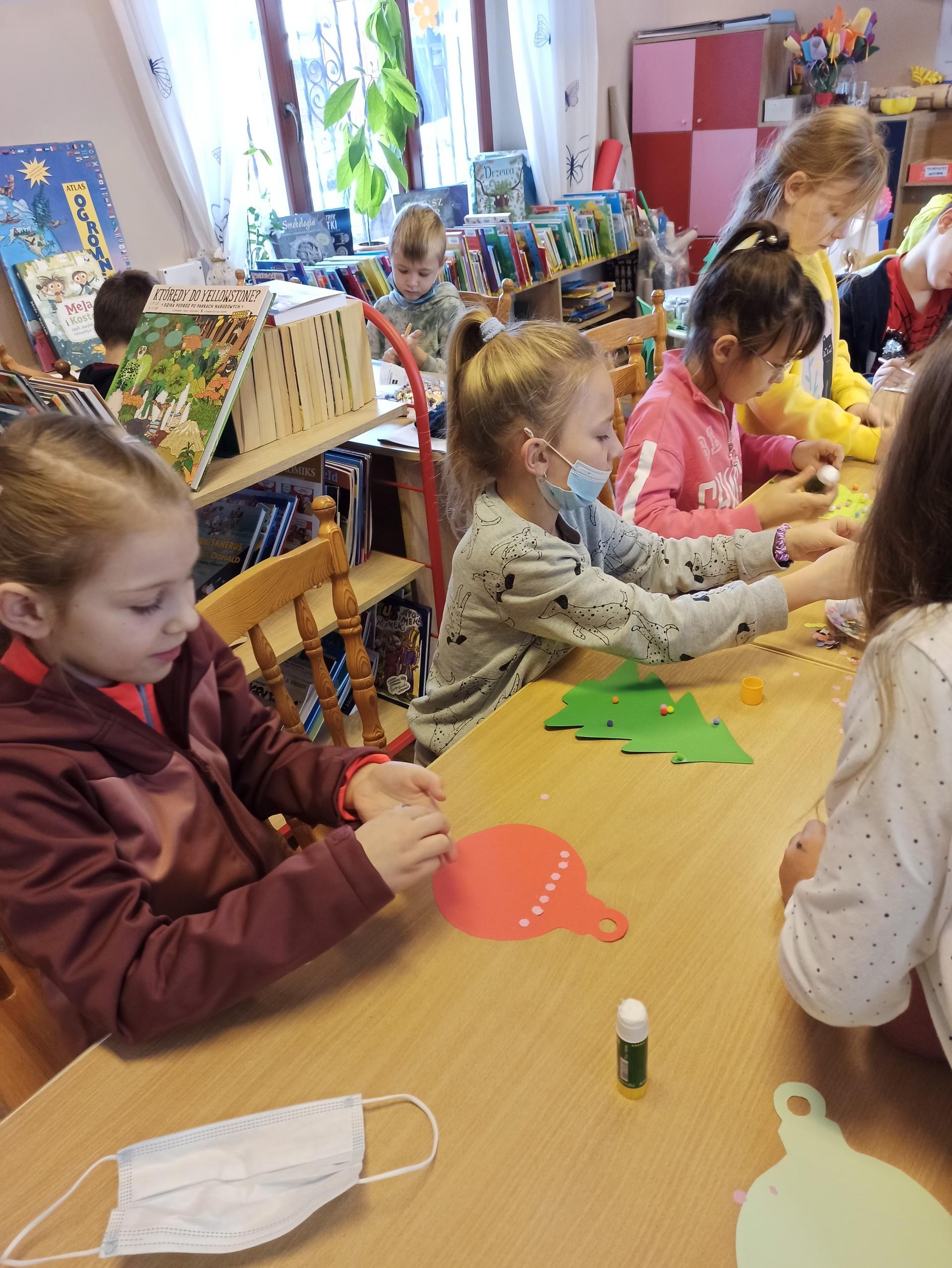 W miniony piątek uczniowie klasy 2b miały okazję odwiedzić bibliotekę, przenosząc się w świąteczny klimat. Na spotkaniu zatytułowanym ,,Czas na choinkę'' dzieci zapoznały się z historią choinki i wybranymi zwyczajami i tradycjami świątecznymi. Następnie samodzielnie przystroiły przygotowane choinki i bombki z papieru, na koniec wysłuchały życzeń od Świętego Mikołaja. Do domu otrzymały w prezencie kartki, na których napiszą list do Świętego Mikołaja. Było naprawdę miło, ciekawie i świątecznie.