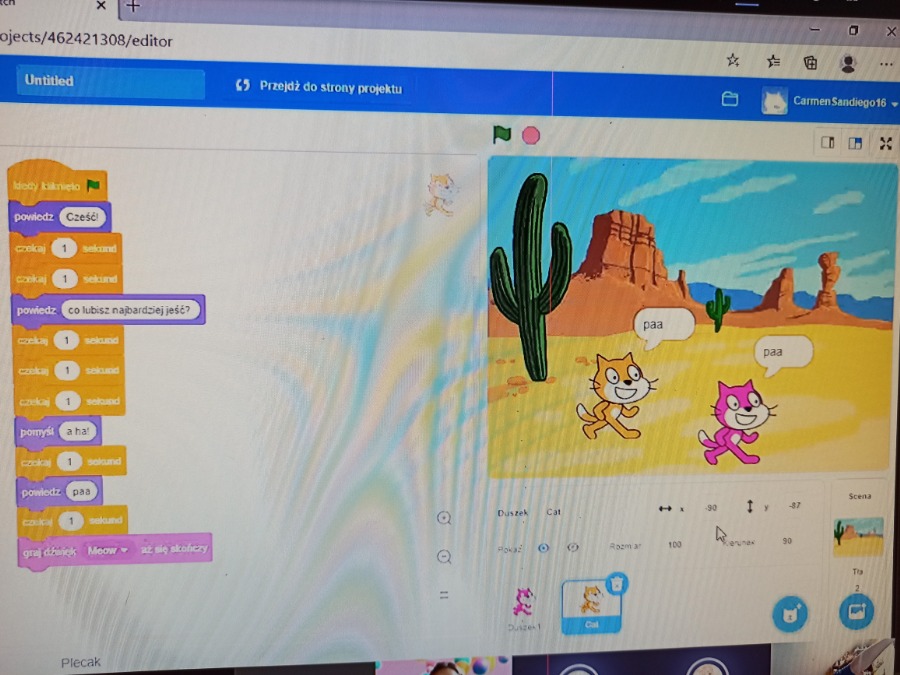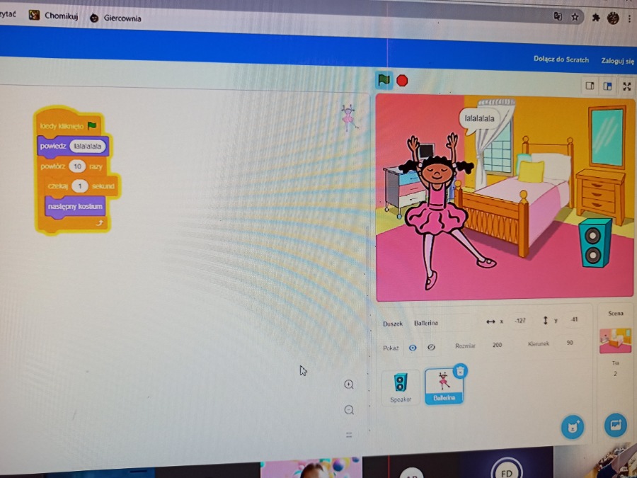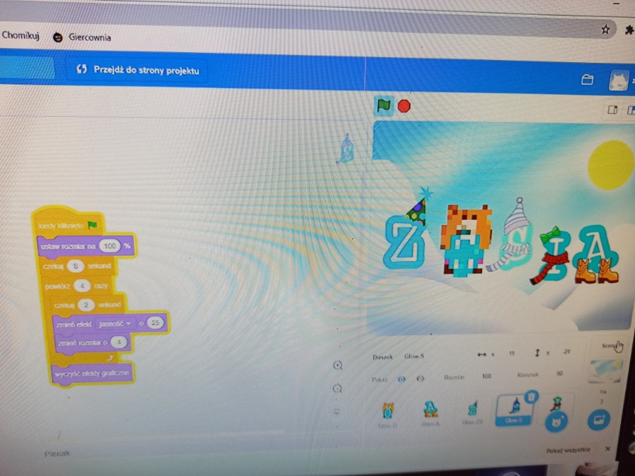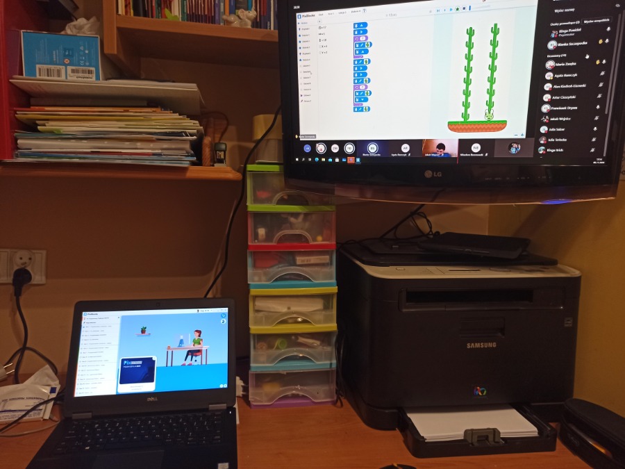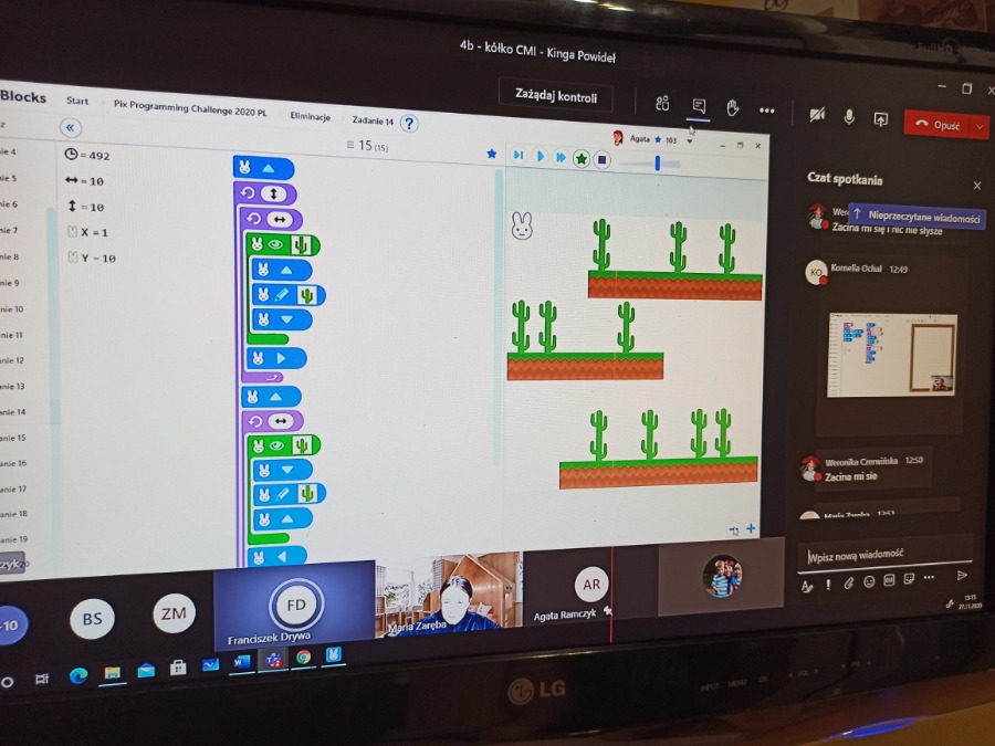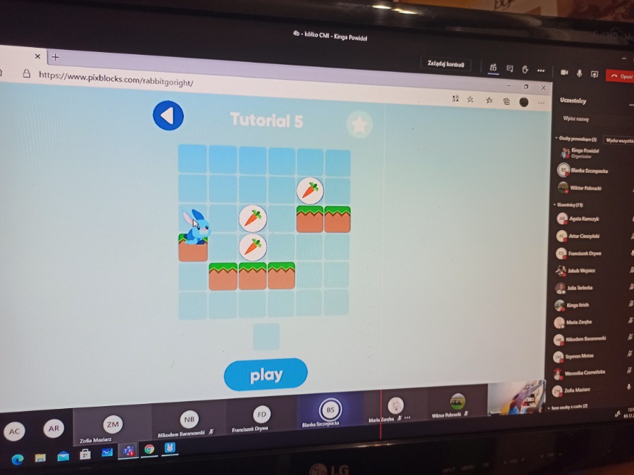 Od października uczniowie klasy 4b spotykają się na zajęciach CMI online. Podczas zajęć chętnie uczą się programować.