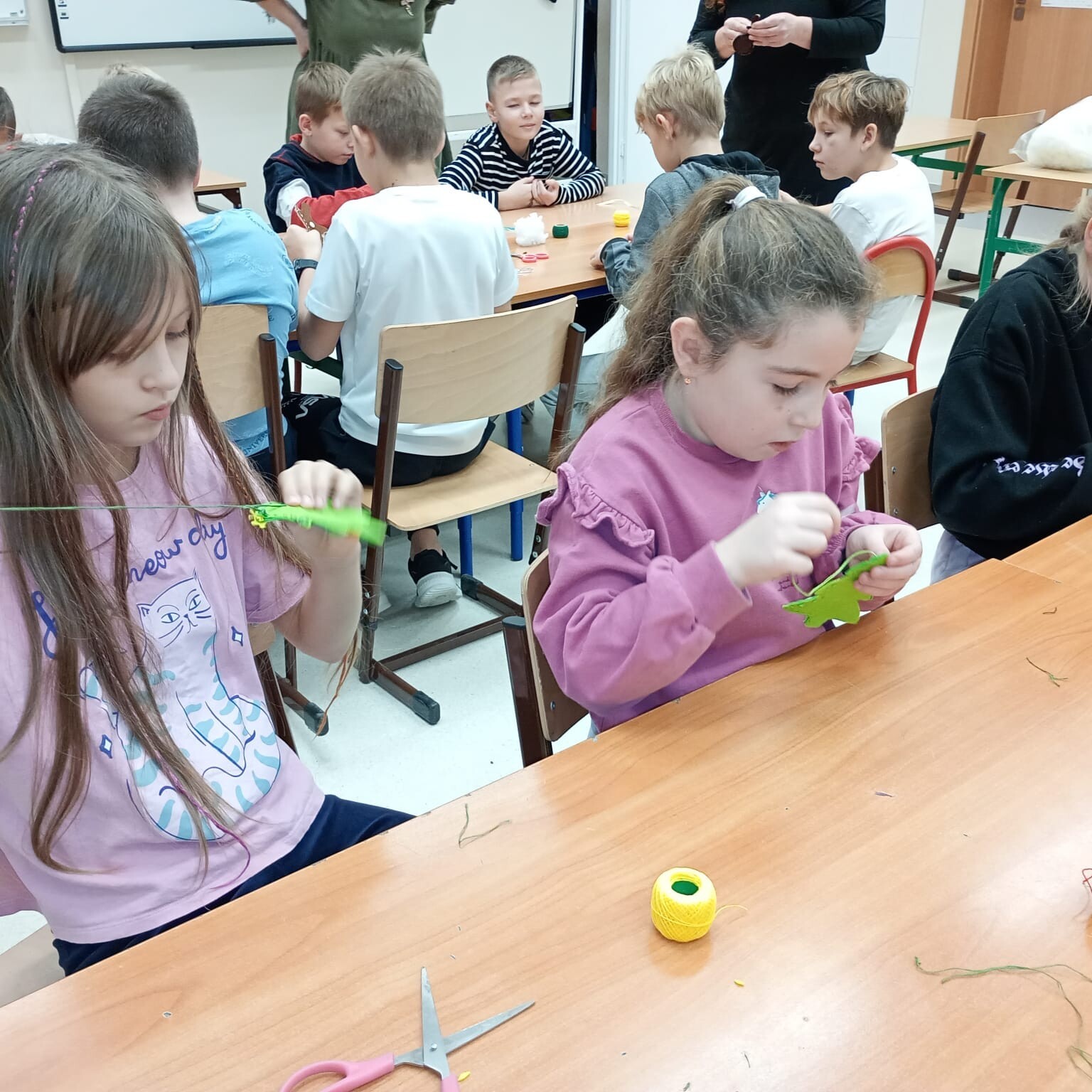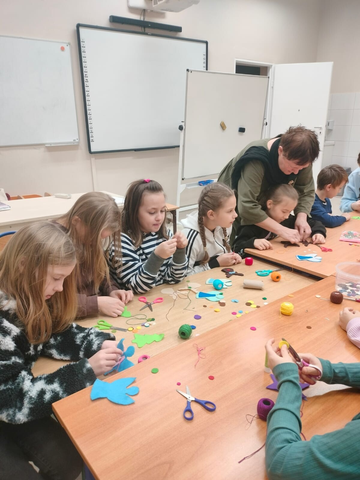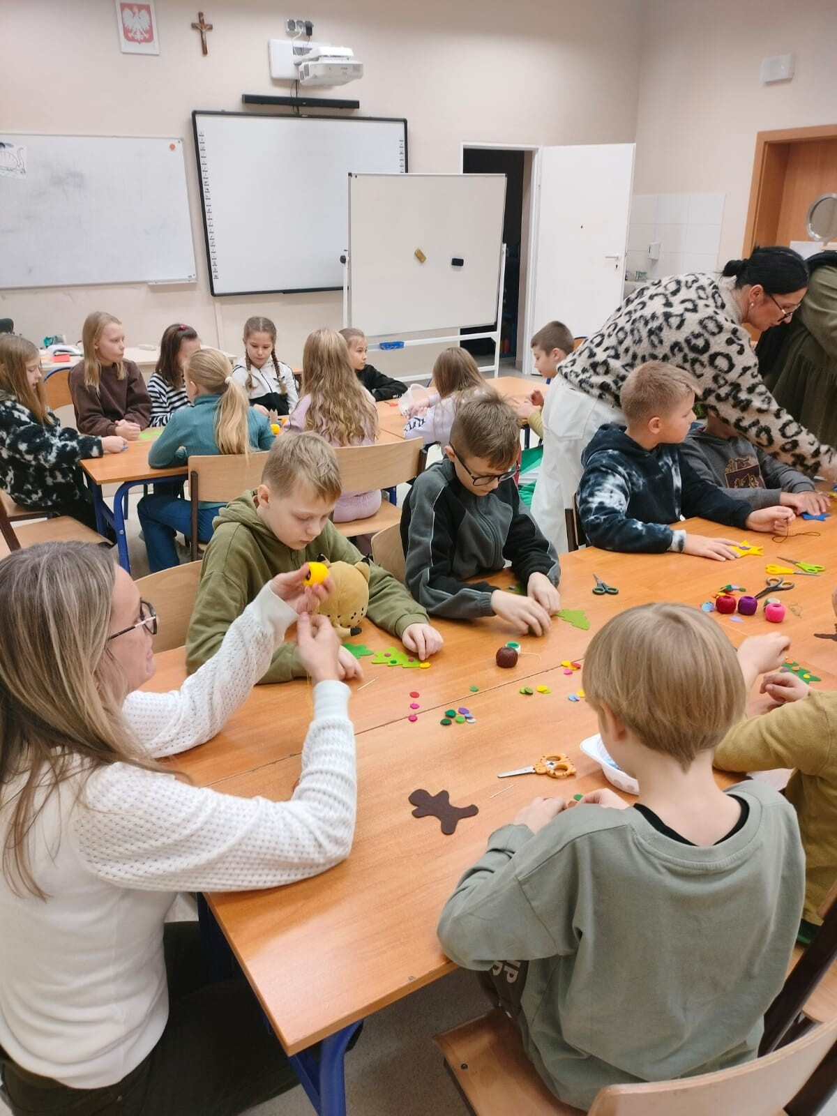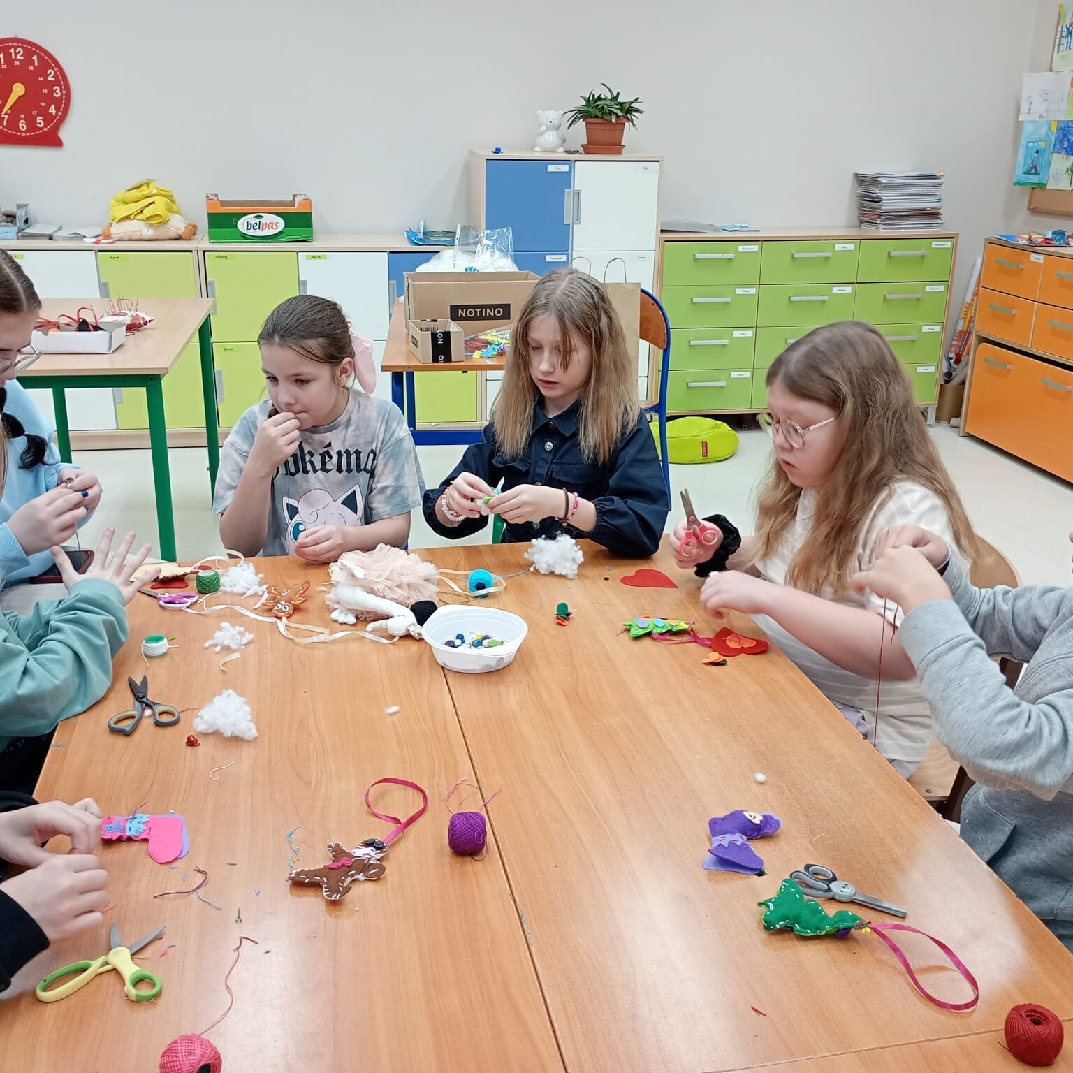 Dnia 27.11.24r. uczniowie klasy 3a i 3b mieli okazję wzięcia udziału w warsztatach szycia filcowych ozdób świątecznych. Wszystko za sprawą wyjątkowych gości - Pań z lęborskiego muzeum, które mieliśmy zaszczyt gościć w naszej szkole.