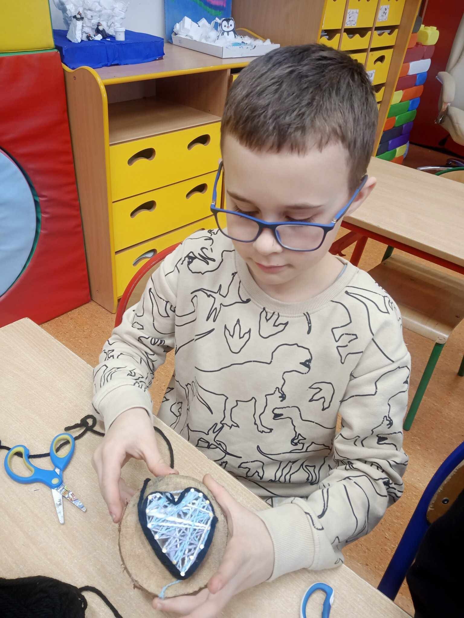 Uczniowie klasy 2b rozwijają swoje zdolności kreatywne podczas zajęć plastyczno – technicznych. W minionym tygodniu wykonali oryginalne serduszka. Do wykonania swojej ozdoby użyli drewna, gwoździ oraz materiałów niezbędnych do ozdabiania. Zajęcia dostarczyły wszystkim mnóstwa radości, wyzwoliły w uczniach pomysłowość oraz rozwinęły wyobraźnię twórczą. Ich prace będą doskonałym prezentem dla rodziców z okazji nadchodzących walentynek.