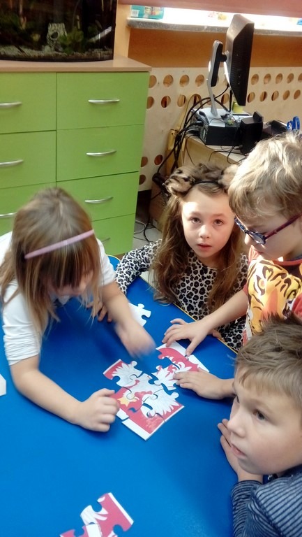 Dzień 11 listopada to jedna z najważniejszych dat w historii naszej Ojczyzny. Po wieloletniej niewoli Polska odzyskała niepodległość. Dzieci z grupy 0 b przed tym ważnym świętem rozmawiały o patriotyzmie, przywiązaniu do swojej Ojczyzny, do ziemi rodzinnej, obejrzały film animowany o polskich symbolach narodowych. Na zakończenie utrwaliły zdobytą wiedzę pracując w grupach i kodując obrazki.