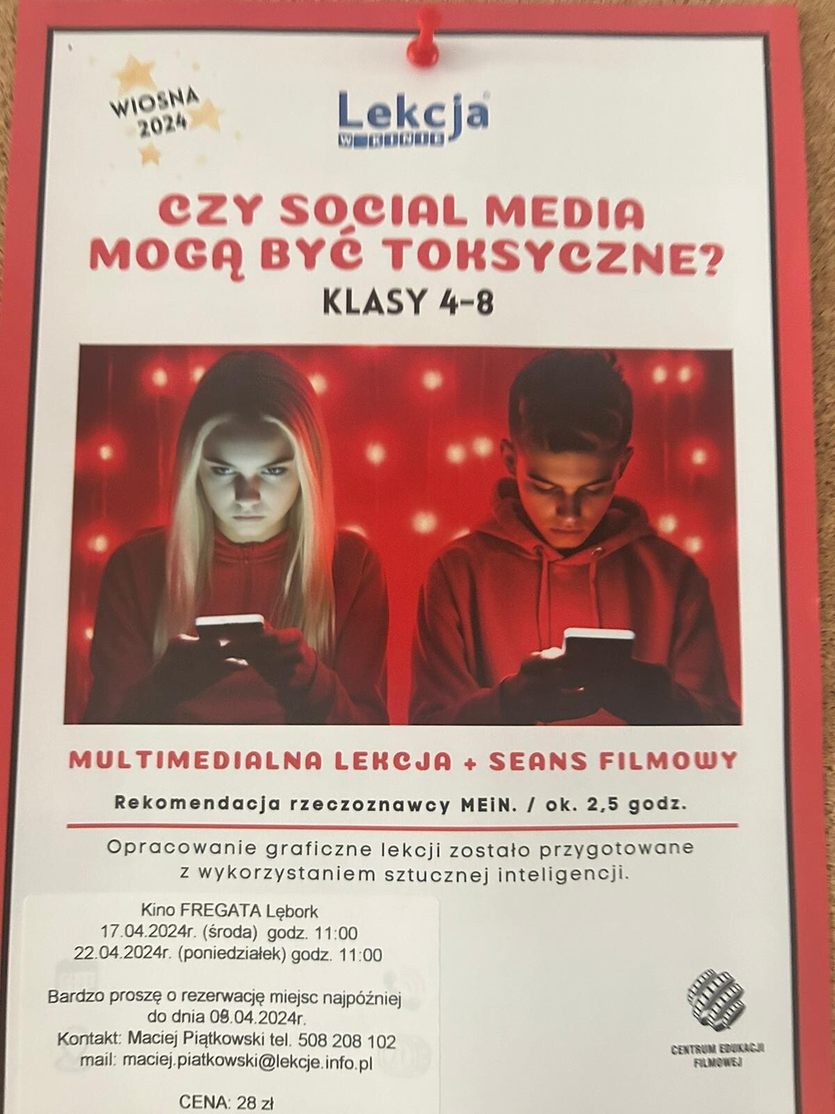 Czy social media mogą być toksyczne? podczas której zapoznali się z zagrożeniami płynącymi z mediów społecznościowych, sposobami radzenia sobie z ich negatywnym wpływem. Obejrzeli również film Dancing Queen opowiadający o trudnej drodze młodej dziewczyny do samoakceptacji oraz odkrycia znaczenia przyjaźni i naturalności.