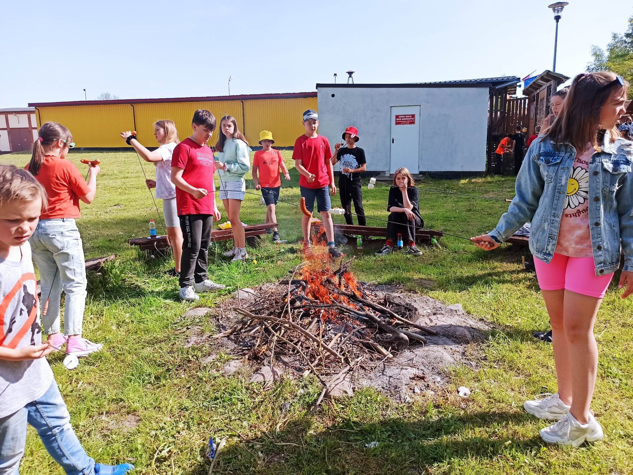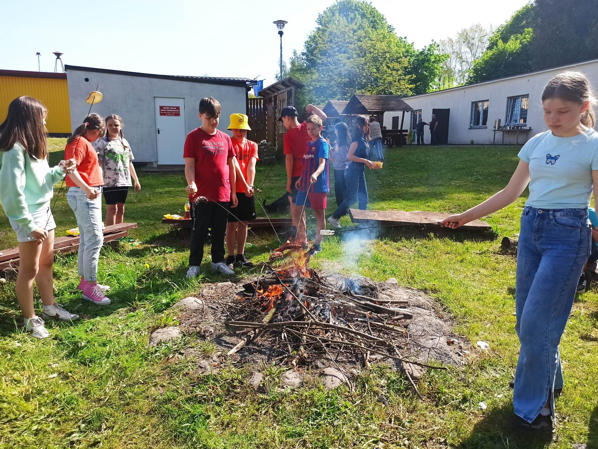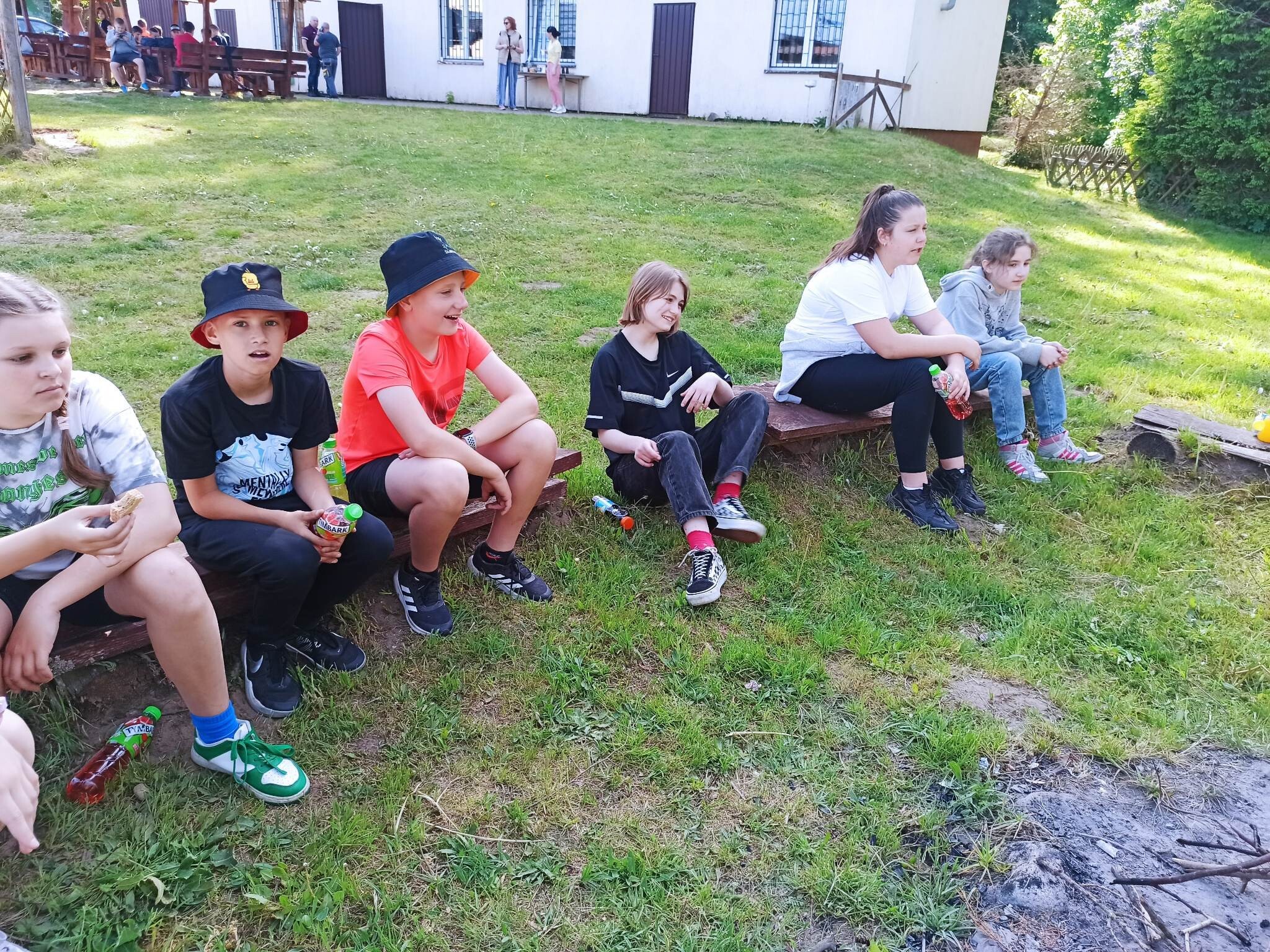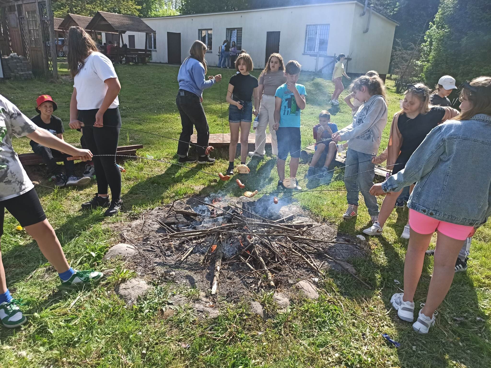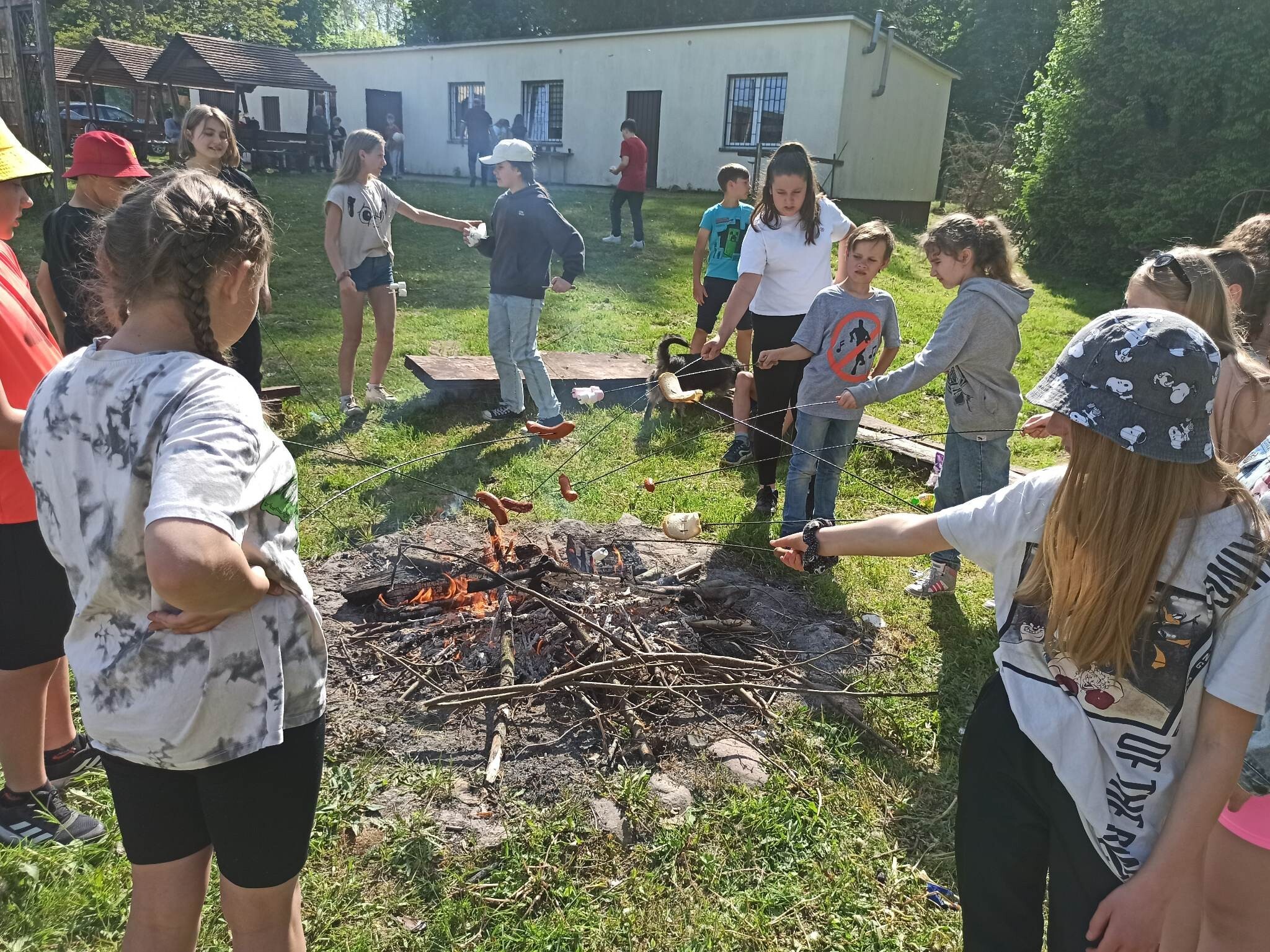 22 maja klasy 5 wraz ze swoimi nauczycielkami wyruszyły na poszukiwanie przygody w Obliwicach. Dzieci zabrały ze sobą niezbędne gadżety: piłki, paletki do badmintona, kijki na ognisko. Rozpaliły ognisko. Upiekły kiełbaski, ziemniaki i pianki. Deser ufundował Pan Pruszak z GOK. Wszyscy dobrze się bawili.