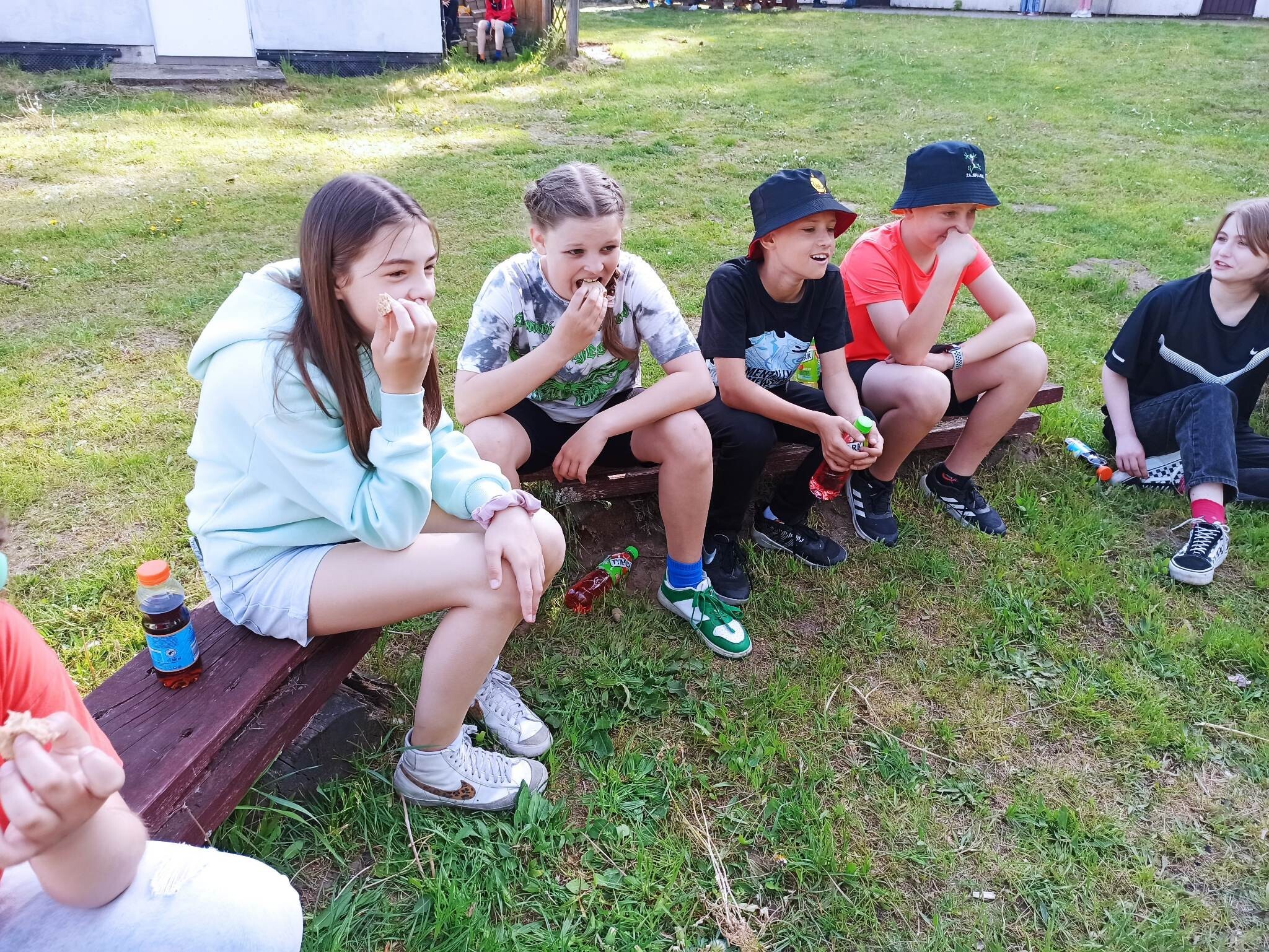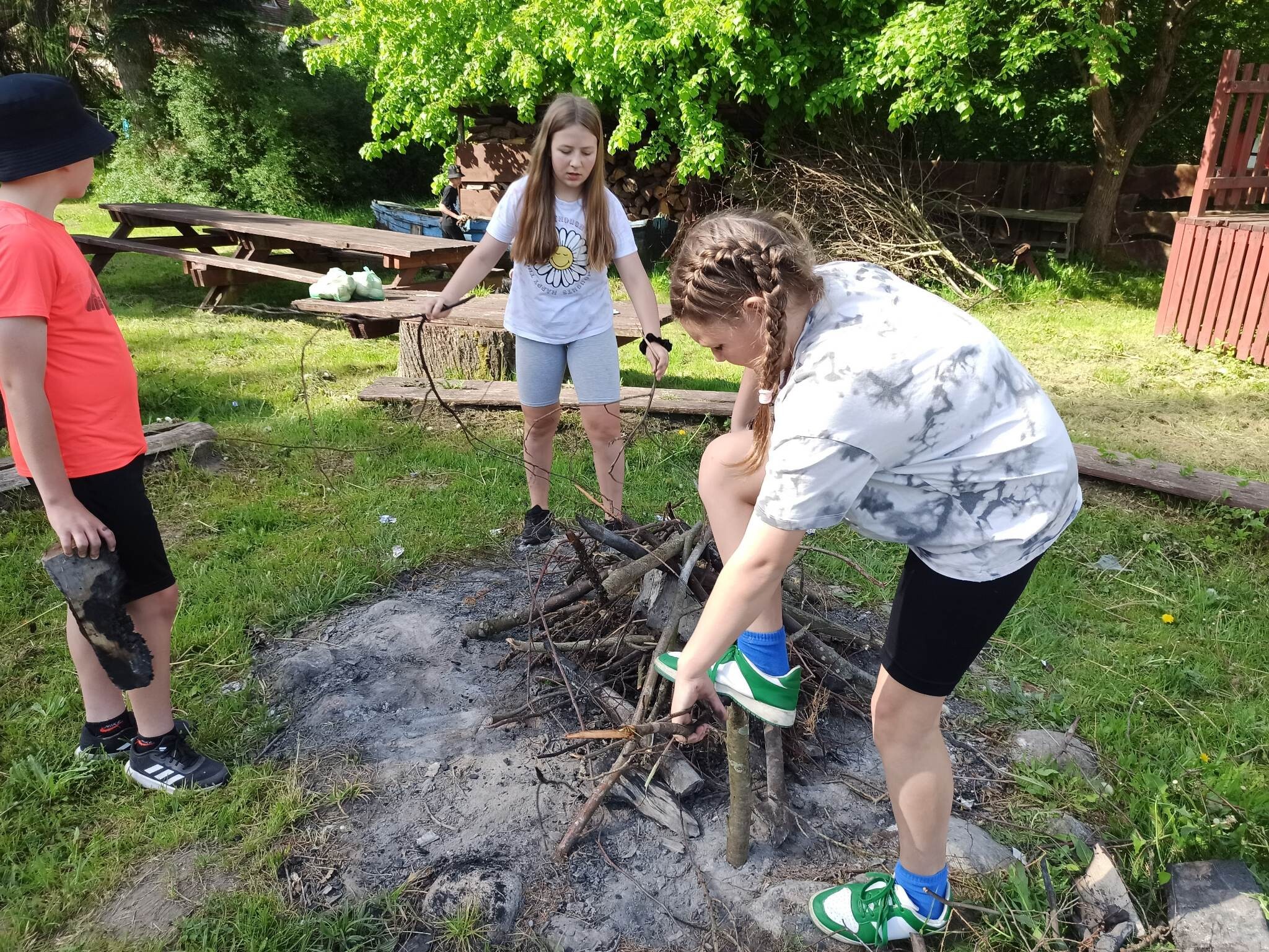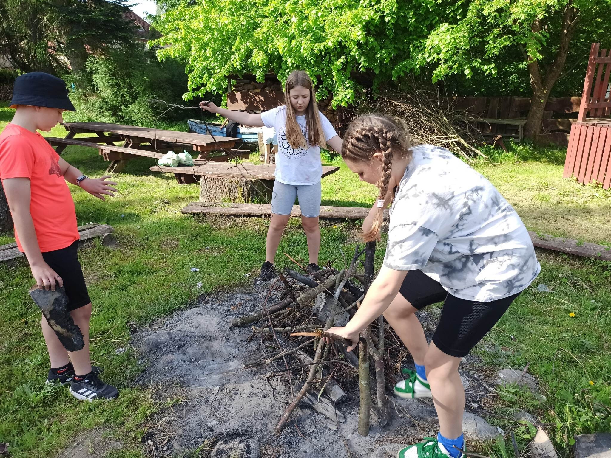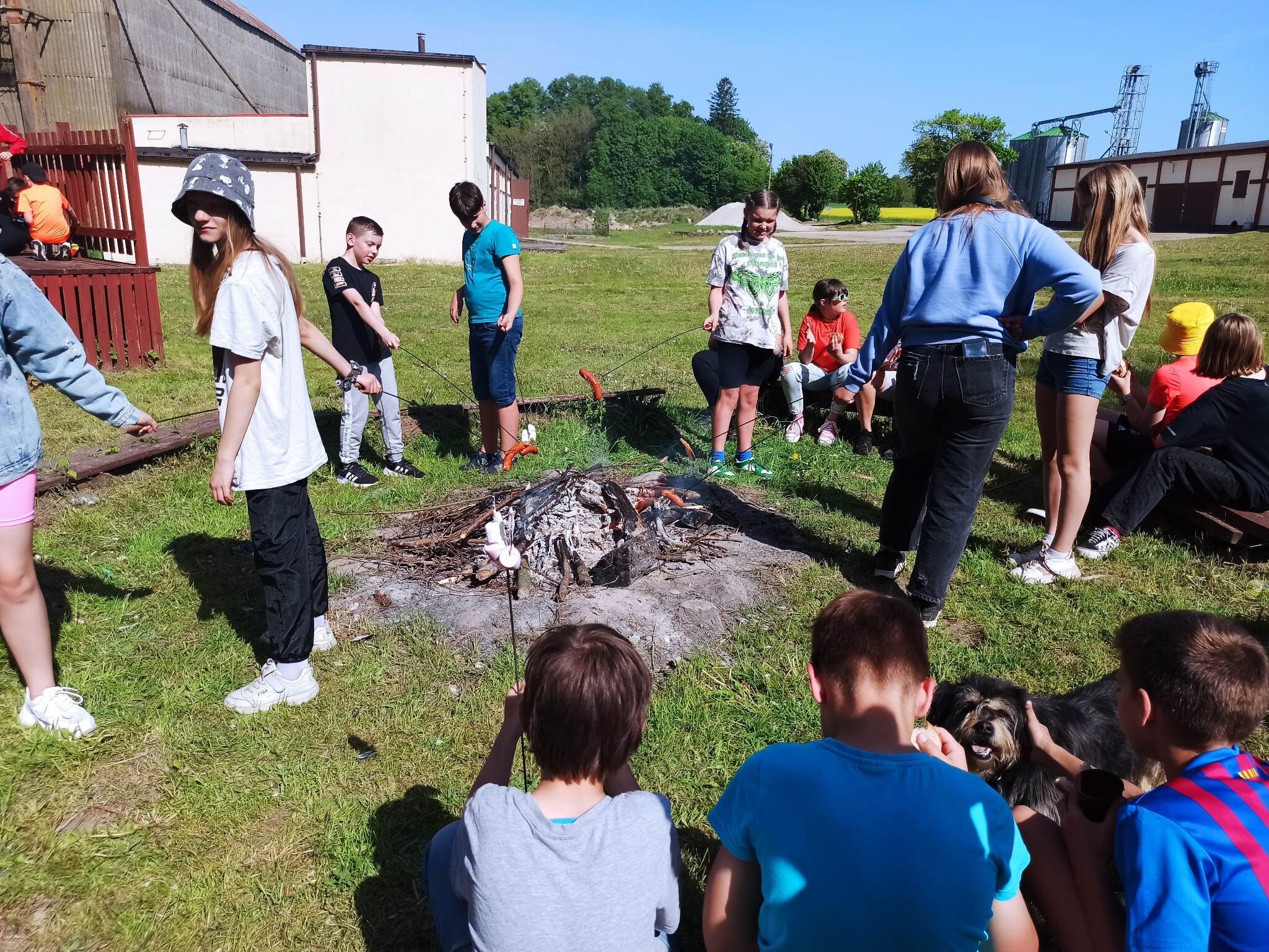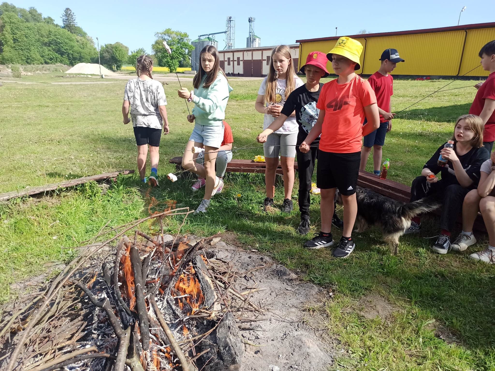 22 maja klasy 5 wraz ze swoimi nauczycielkami wyruszyły na poszukiwanie przygody w Obliwicach. Dzieci zabrały ze sobą niezbędne gadżety: piłki, paletki do badmintona, kijki na ognisko. Rozpaliły ognisko. Upiekły kiełbaski, ziemniaki i pianki. Deser ufundował Pan Pruszak z GOK. Wszyscy dobrze się bawili.