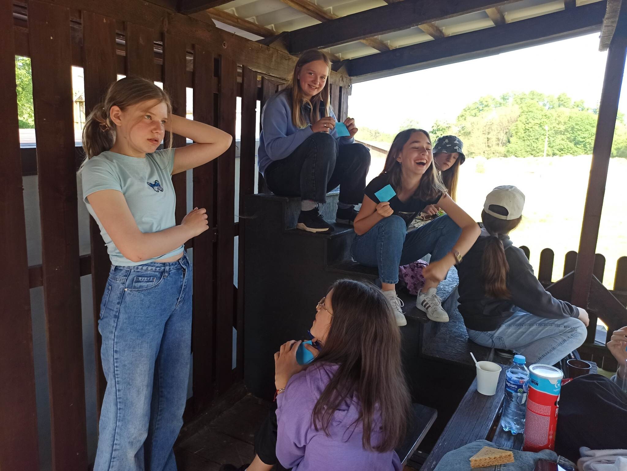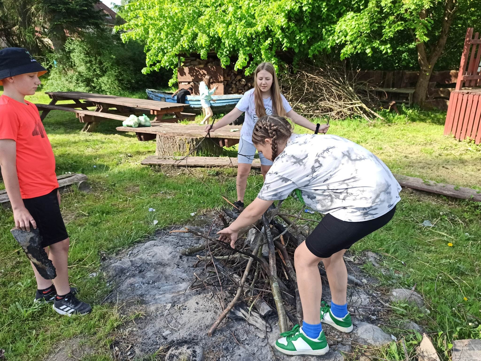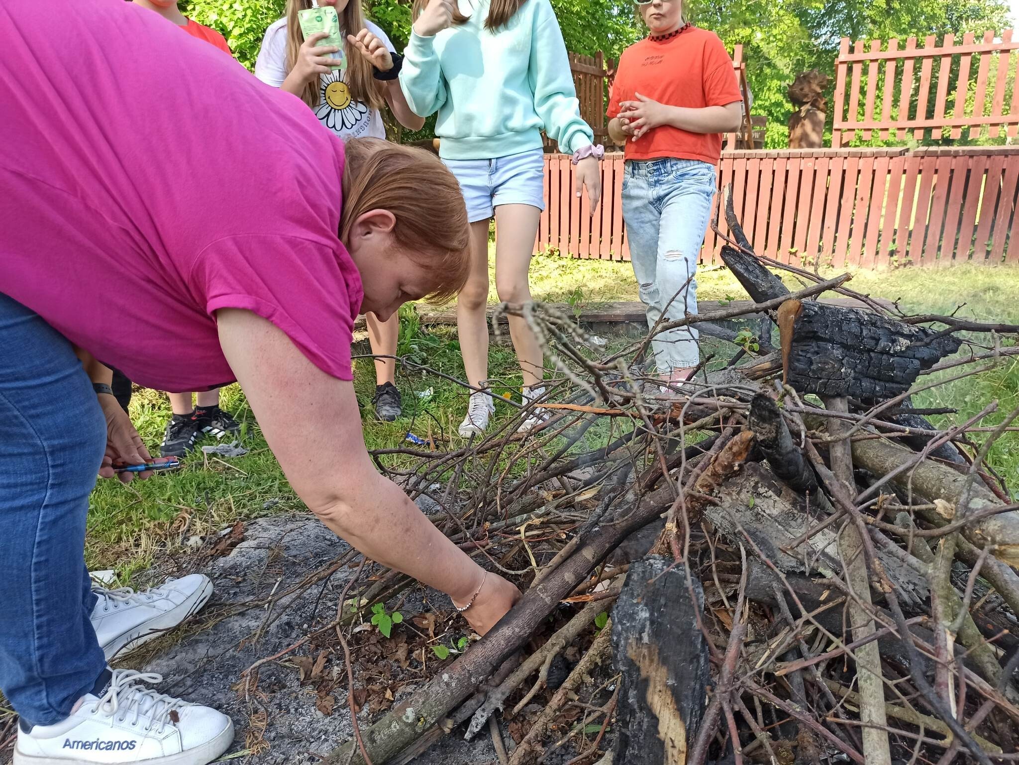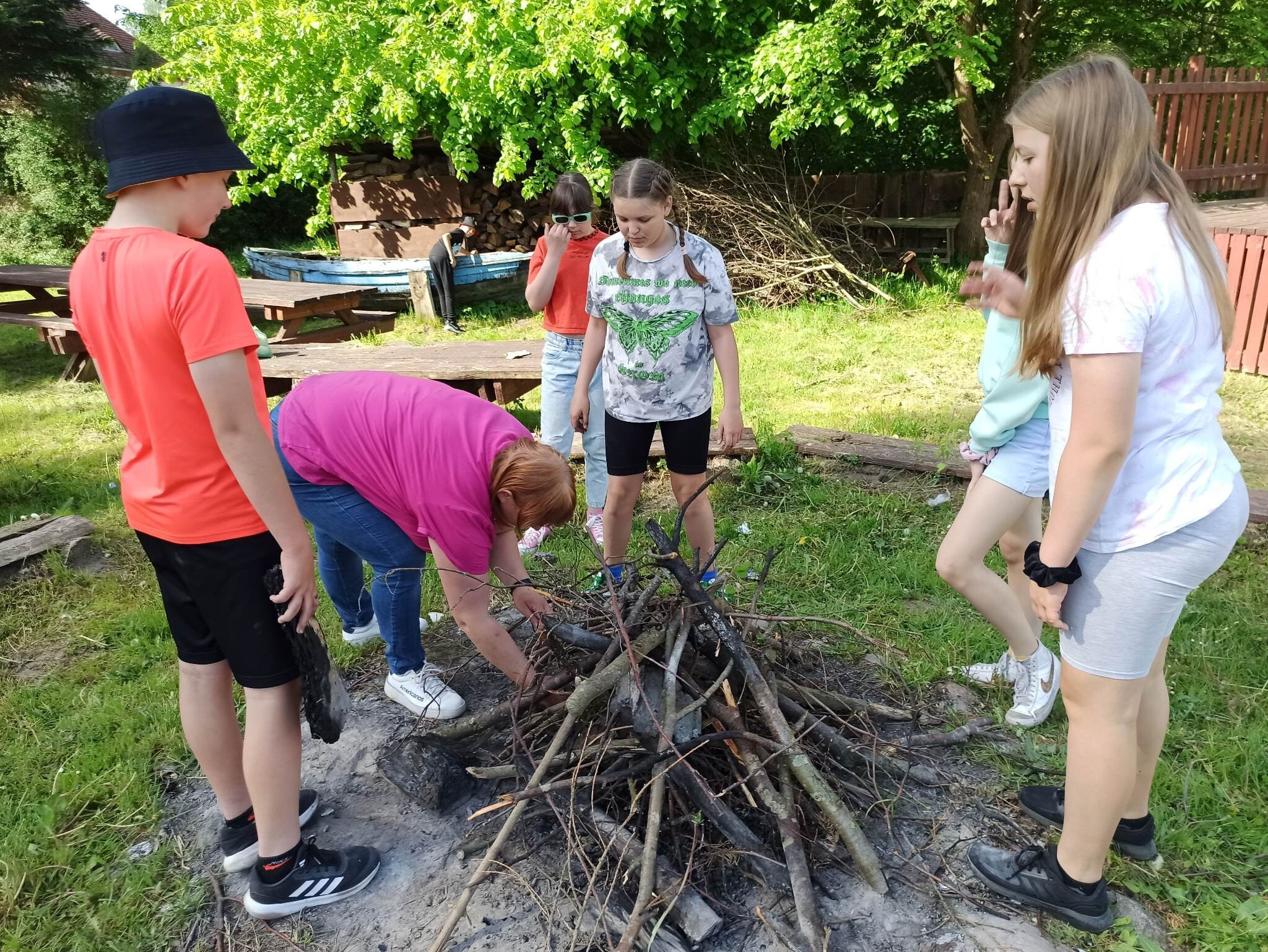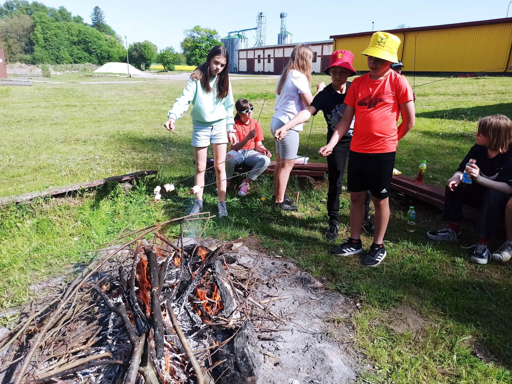 22 maja klasy 5 wraz ze swoimi nauczycielkami wyruszyły na poszukiwanie przygody w Obliwicach. Dzieci zabrały ze sobą niezbędne gadżety: piłki, paletki do badmintona, kijki na ognisko. Rozpaliły ognisko. Upiekły kiełbaski, ziemniaki i pianki. Deser ufundował Pan Pruszak z GOK. Wszyscy dobrze się bawili.