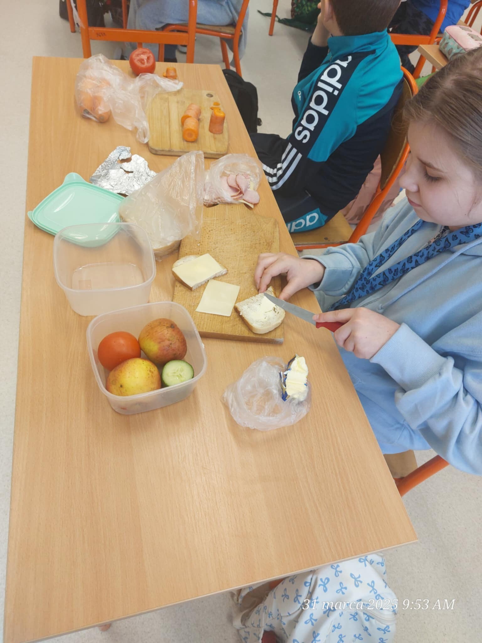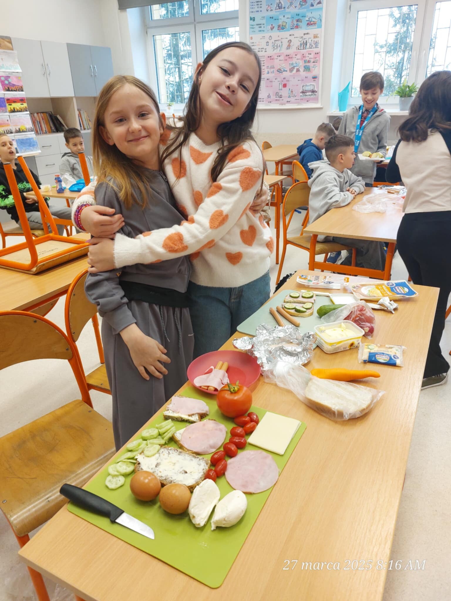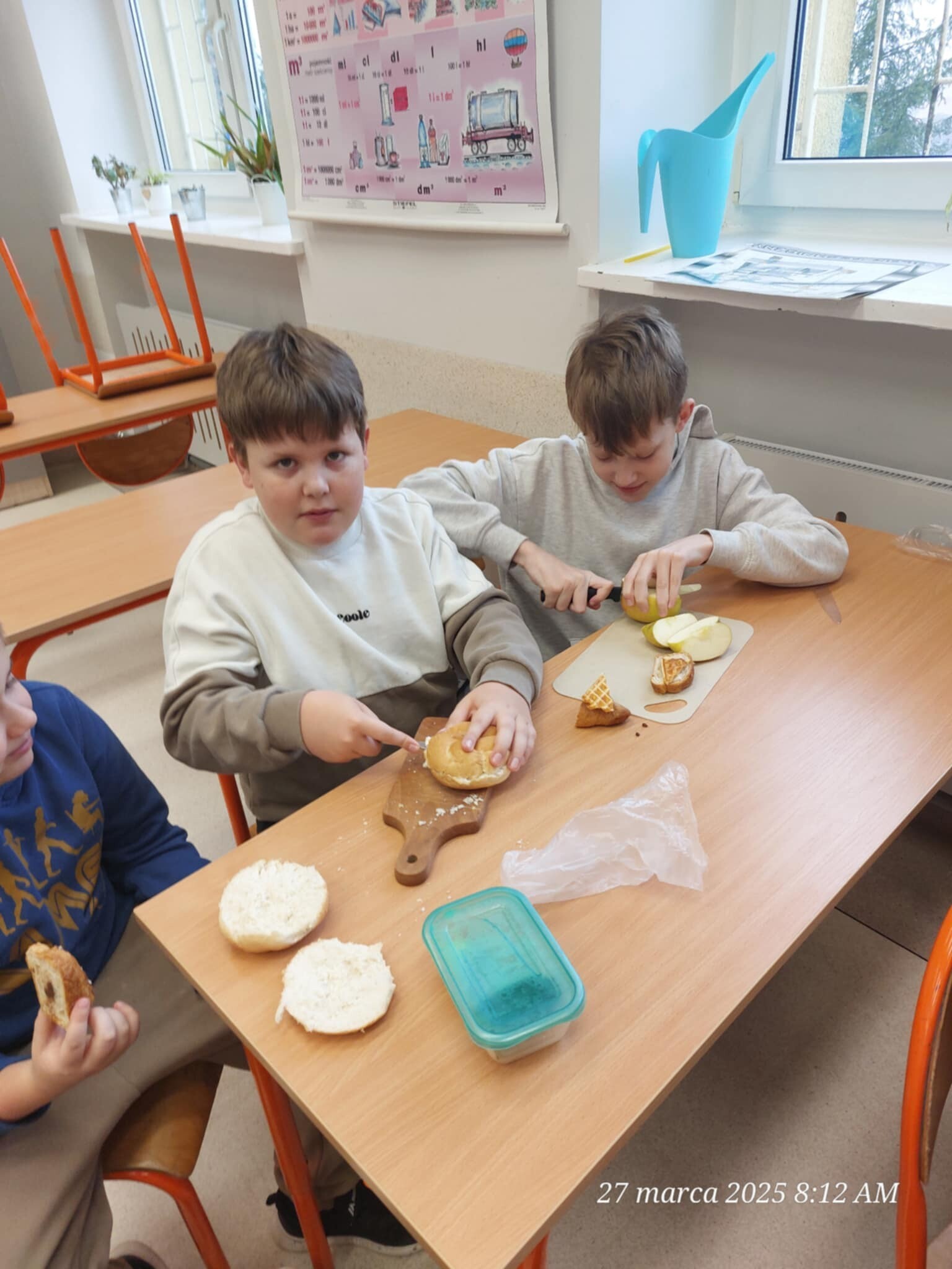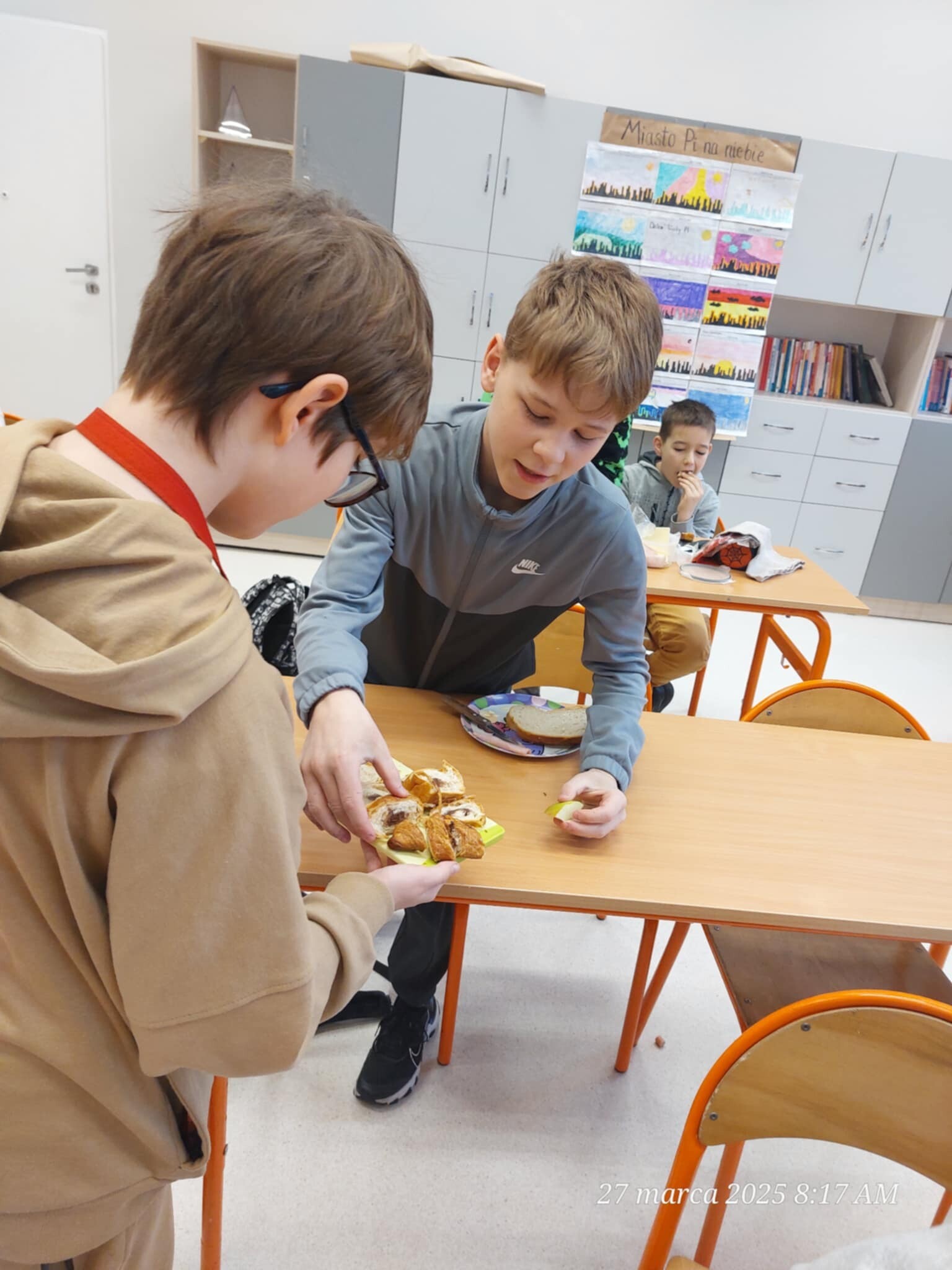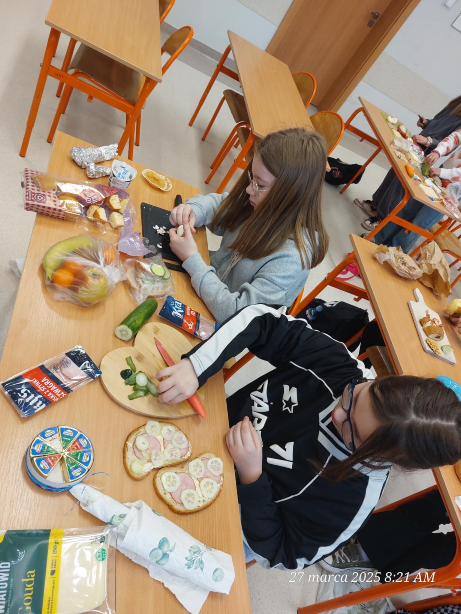 Dzieci samodzielnie komponowały kanapki, dzieliły produkty na połówki, ćwiartki i inne części, ucząc się, jak w praktyce wyglądają ułamki. Matematyka okazała się smaczna i przyjemna, a przy okazji wszyscy świetnie się bawili i integrowali.