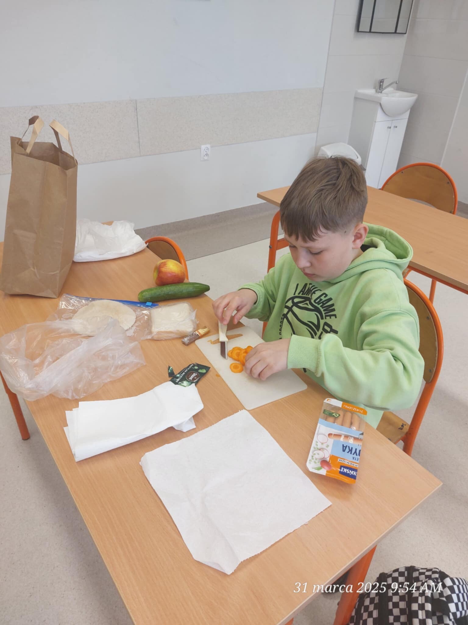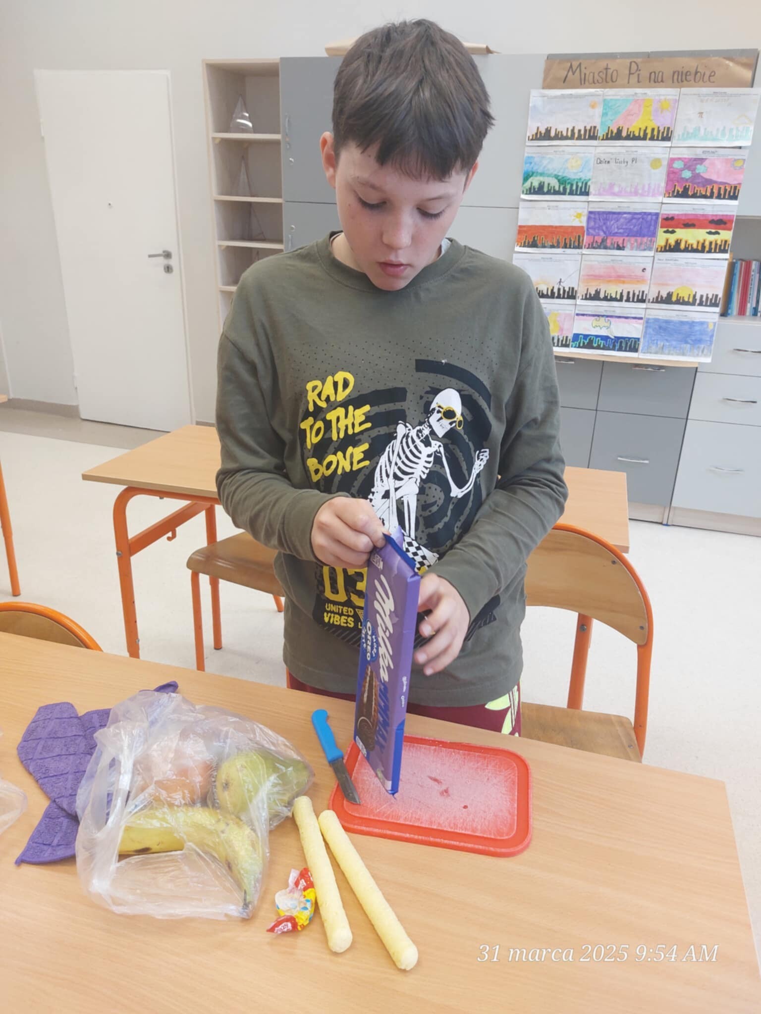 Dziś na lekcji matematyki klasa 4 wkroczyła w fascynujący świat ułamków zwykłych! Aby przełamać pierwsze obawy, zamieniliśmy teorię w pyszną zabawę – warzywno-owocowe śniadanie pełne kolorów, smaków i... ułamków!