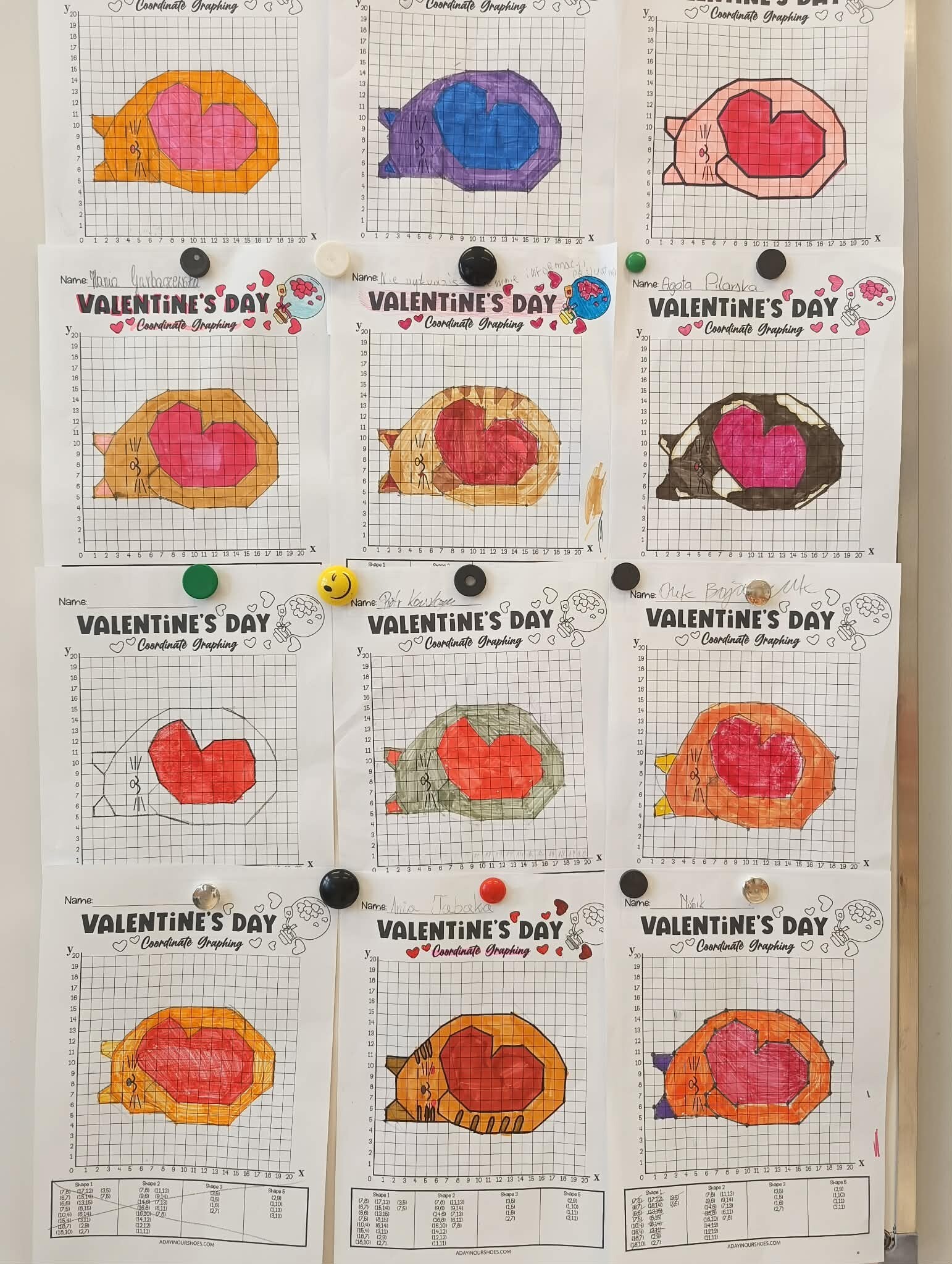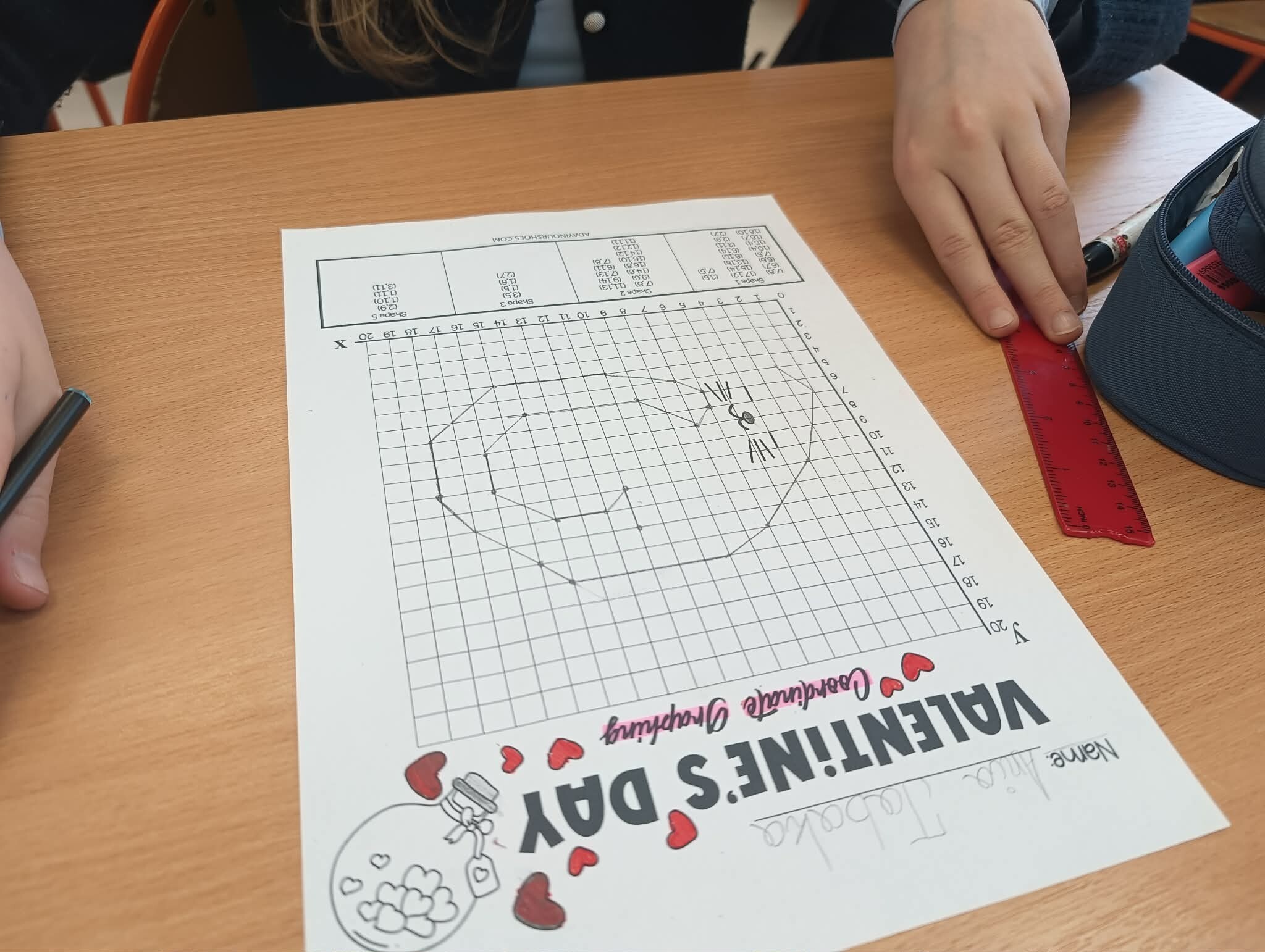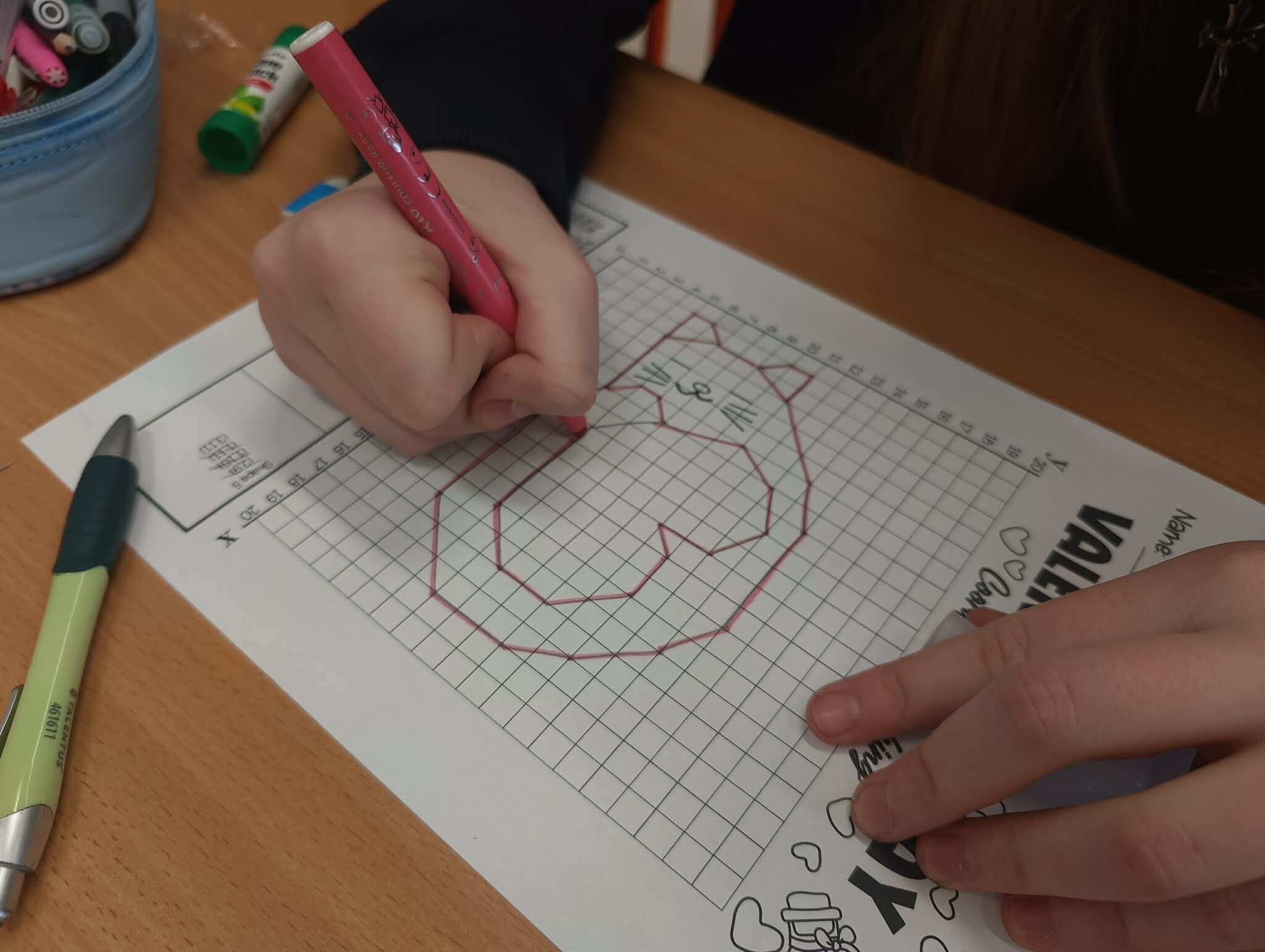 Z kolei uczniowie klas szóstych ćwiczyli precyzję, tworząc matematyczne walentynki w układzie współrzędnych. Łącząc punkty, odkrywali ukryte kształty i utrwalali wiedzę w kreatywny sposób.