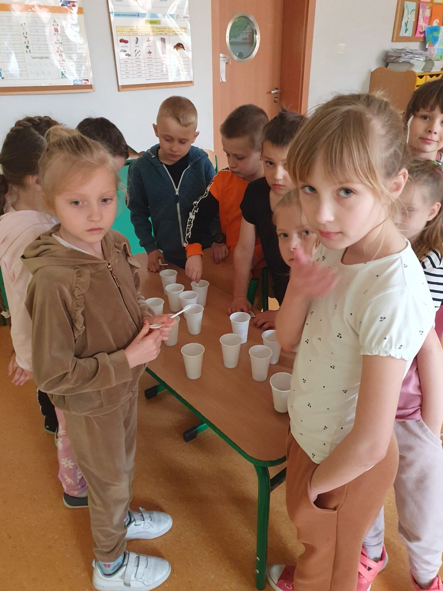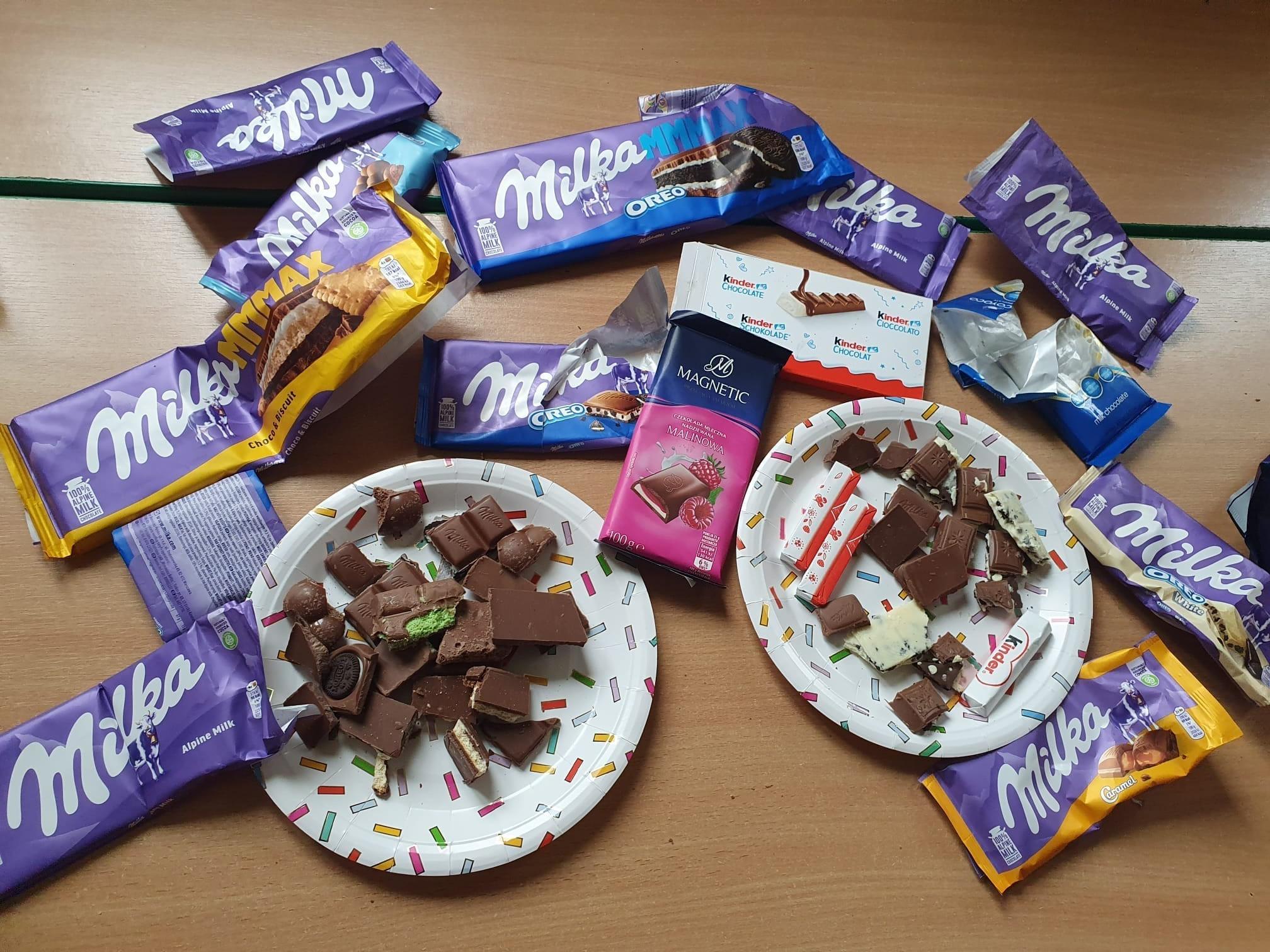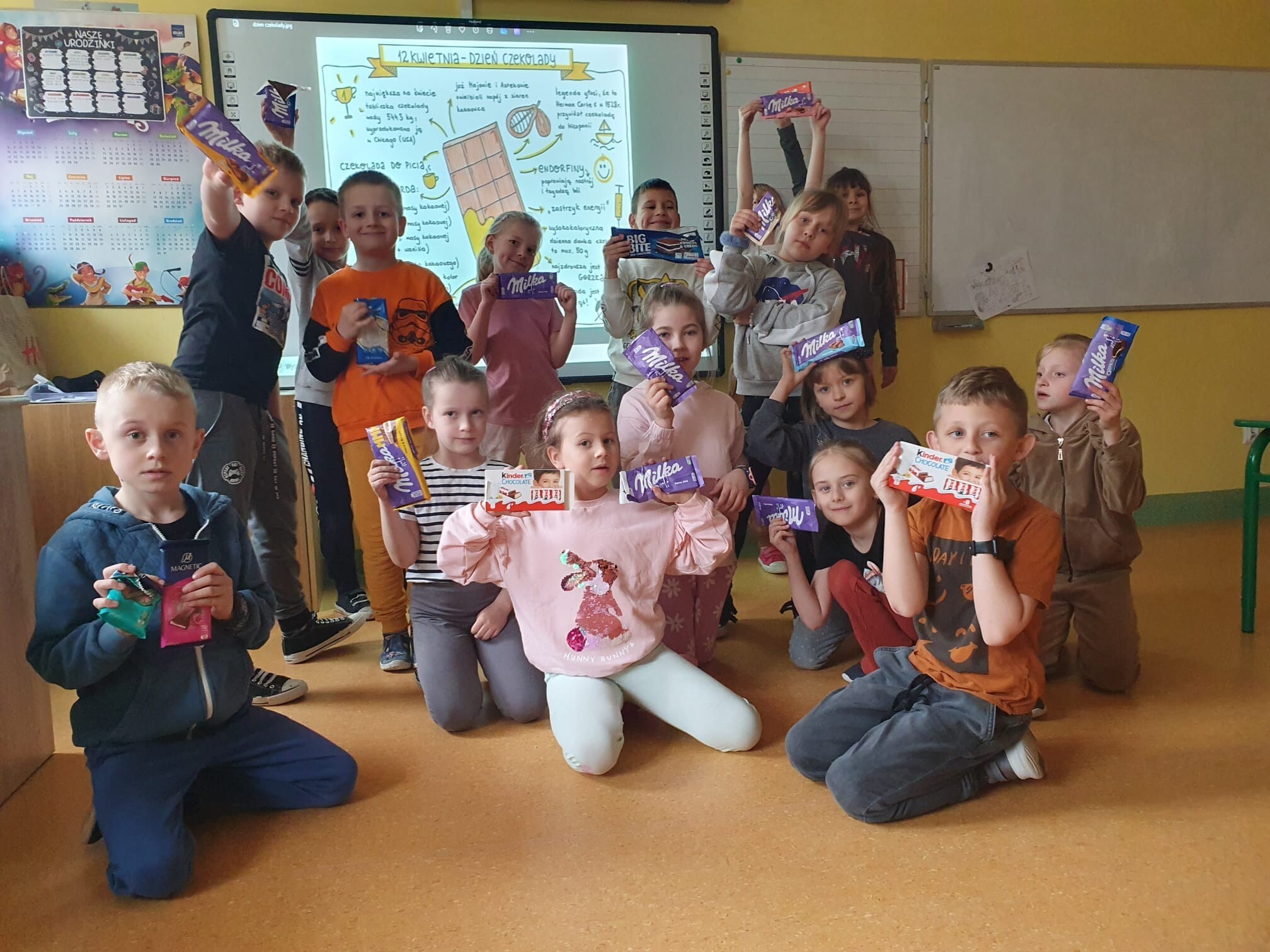 12 kwietnia uczniowie klas 1 obchodzili najsłodszy dzień w roku czyli Międzynarodowy Dzień Czekolady. Był to nie tylko dzień, w którym każdy łasuch sięgnął po kostkę (niektórzy nawet tabliczkę) swojej ulubionej czekolady, ale również okazja do poznania tradycji związanych z tym uwielbianym na całym świecie przysmakiem. Pierwszoklasiści dowiedzieli się, że spożywanie gorzkiej czekolady w zdrowych ilościach ma wiele zalet: czekolada dodaje energii, podnosi sprawność intelektualną, reguluje ciśnienie krwi, spowalnia proces starzenia i zapobiega licznym chorobom. Uczniowie obejrzeli film i już wiedzą jak wygląda proces produkcji czekolady. Tego dnia oczywiście nie zapomnieliśmy również o degustacji! Palce lizać !