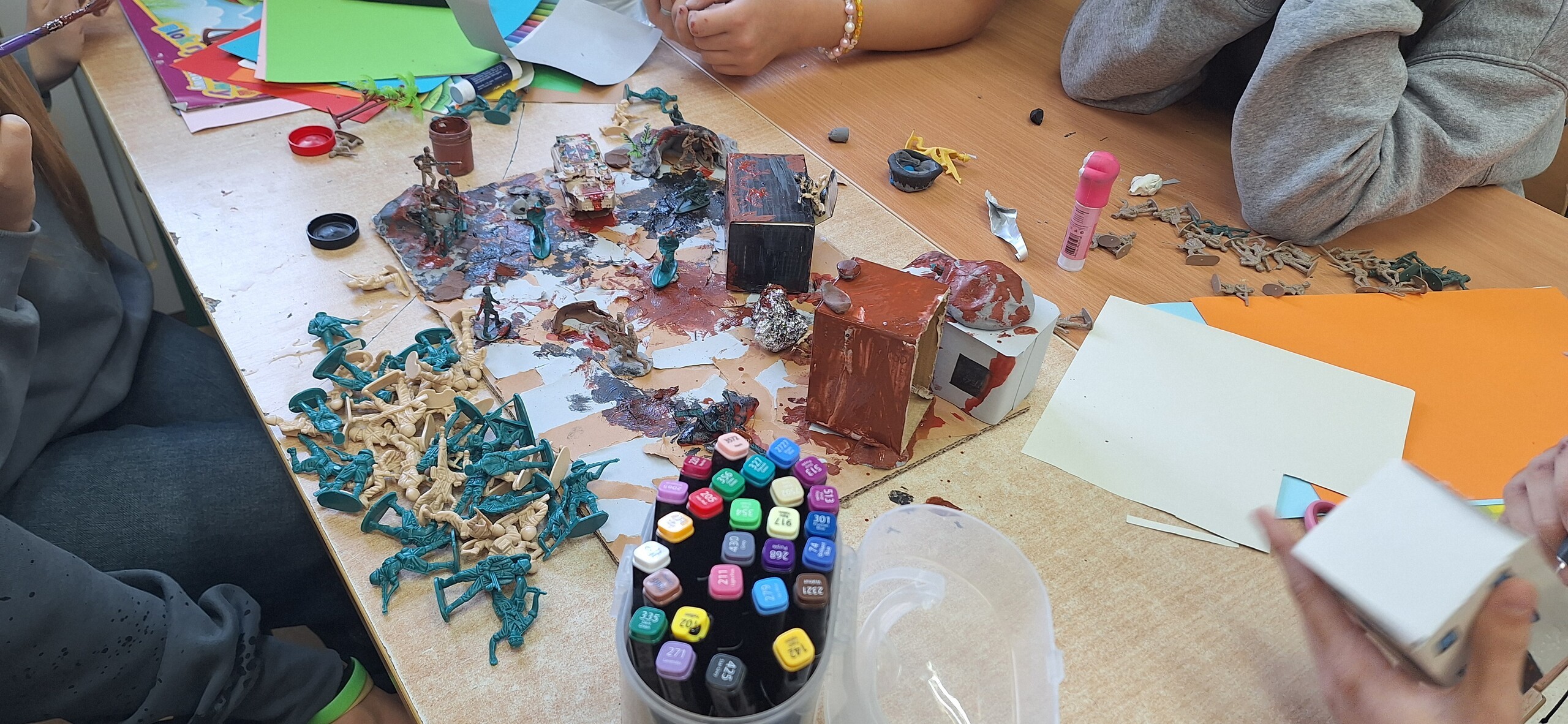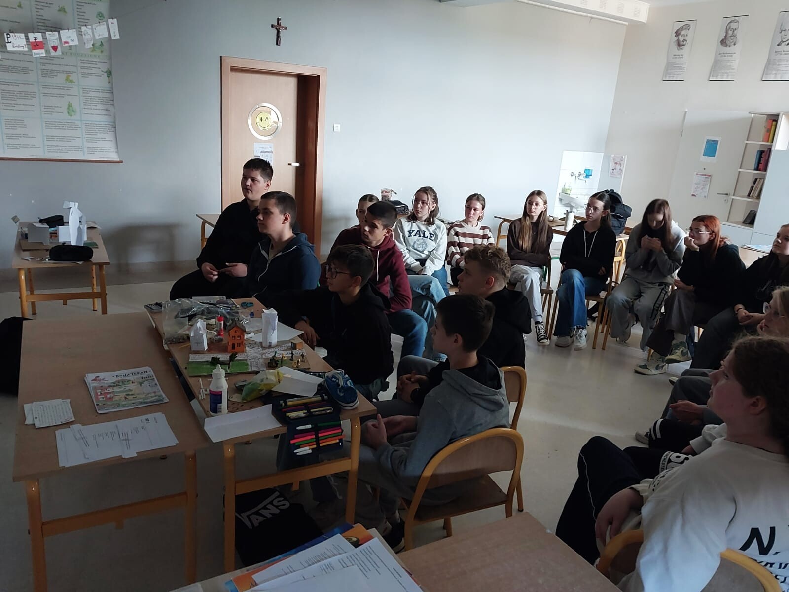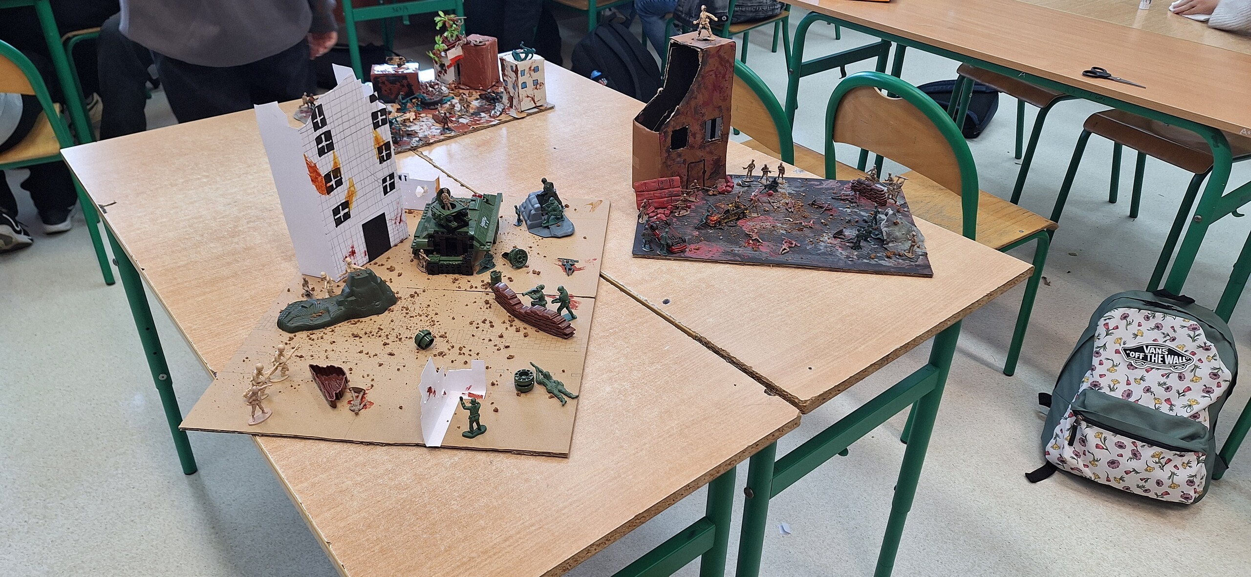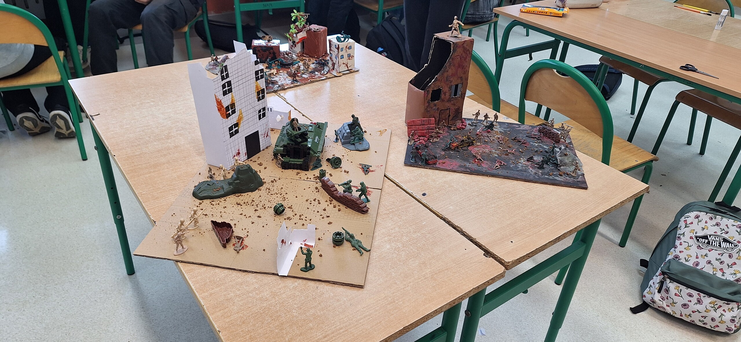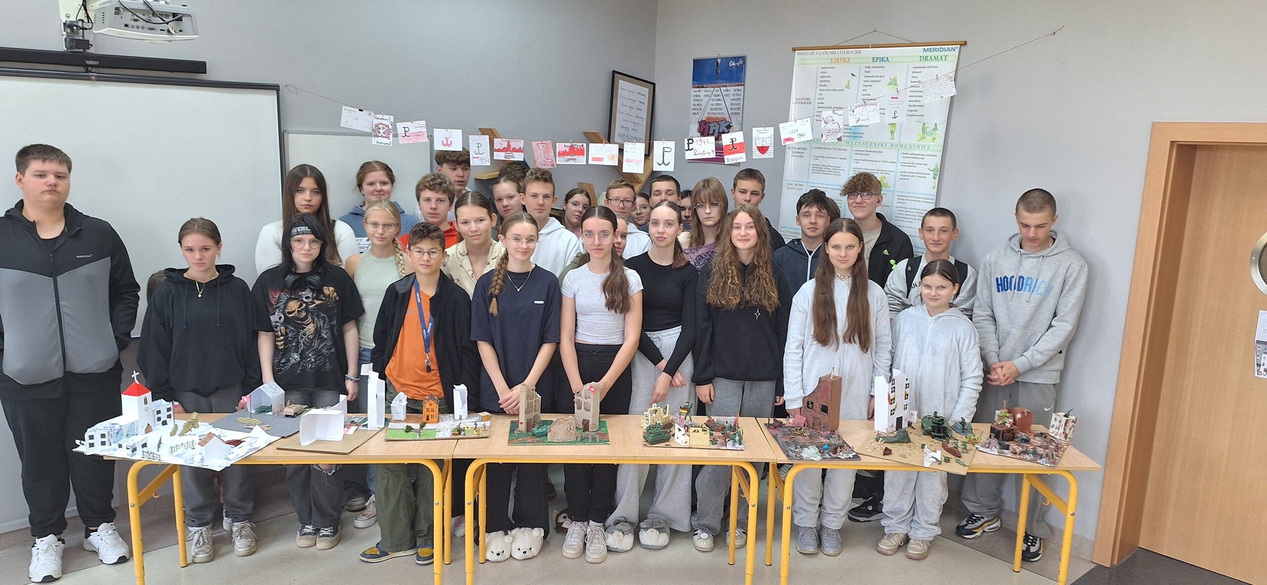 Tematyka warsztatów została przybliżona ósmoklasistom na lekcji historii i języka polskiego, a ich zwieńczeniem było wykonanie makiet ilustrujących walki o stolicę.