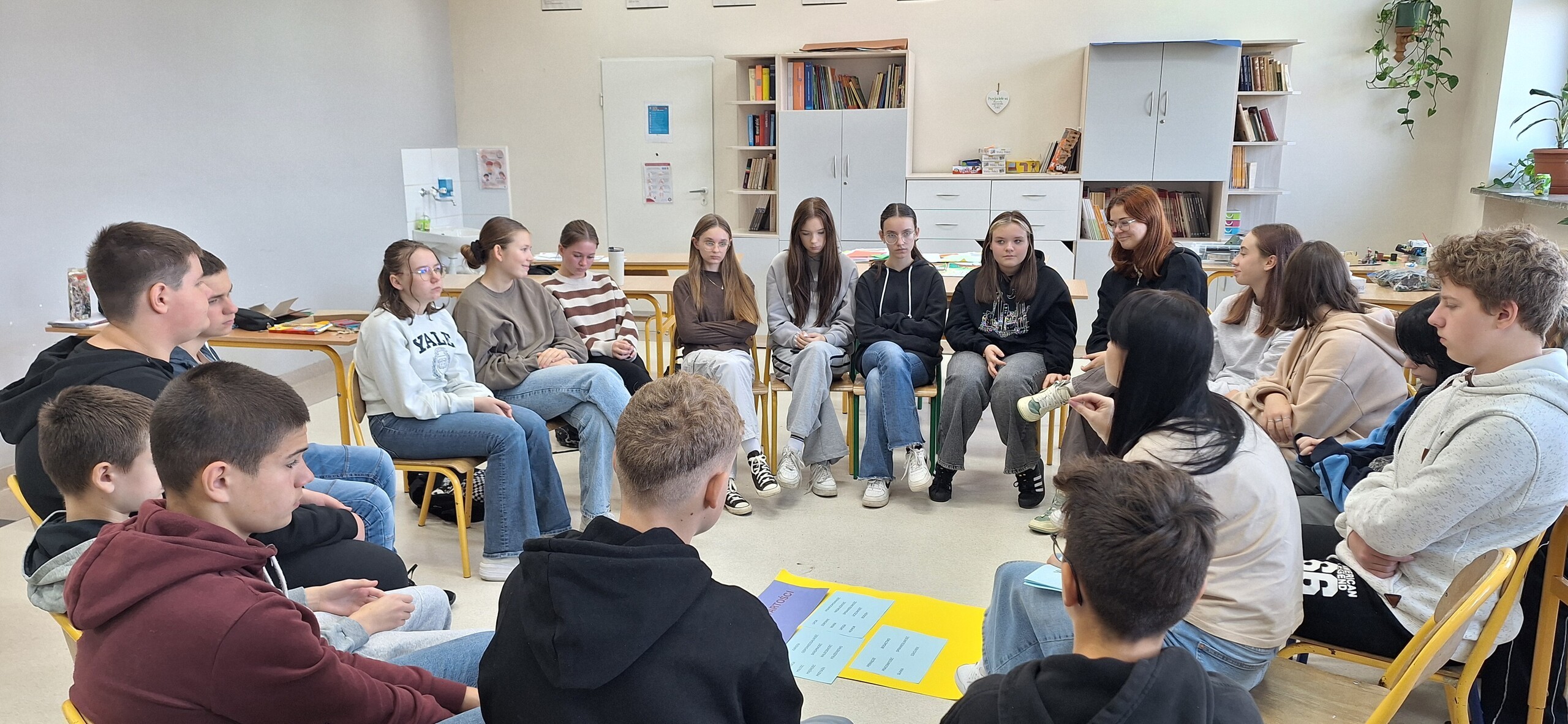 Młodzież rozwijała swoje kompetencje społeczne, doskonaliła umiejętności wyrażania poglądów na tematy trudne i ważne oraz pracy w grupie.