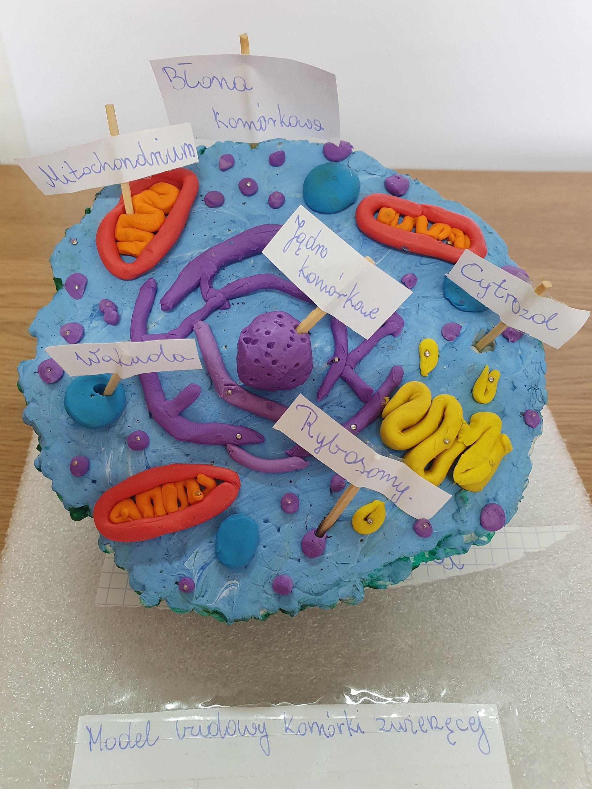 Na lekcjach biologii, uczniowie klasy 5a poznawali budowę komórkową organizmów. Aby utrwalić poznane wiadomości, wykonali modele przestrzenne, do których wykorzystali różne materiały: styropian, plastelinę czy masę solną.