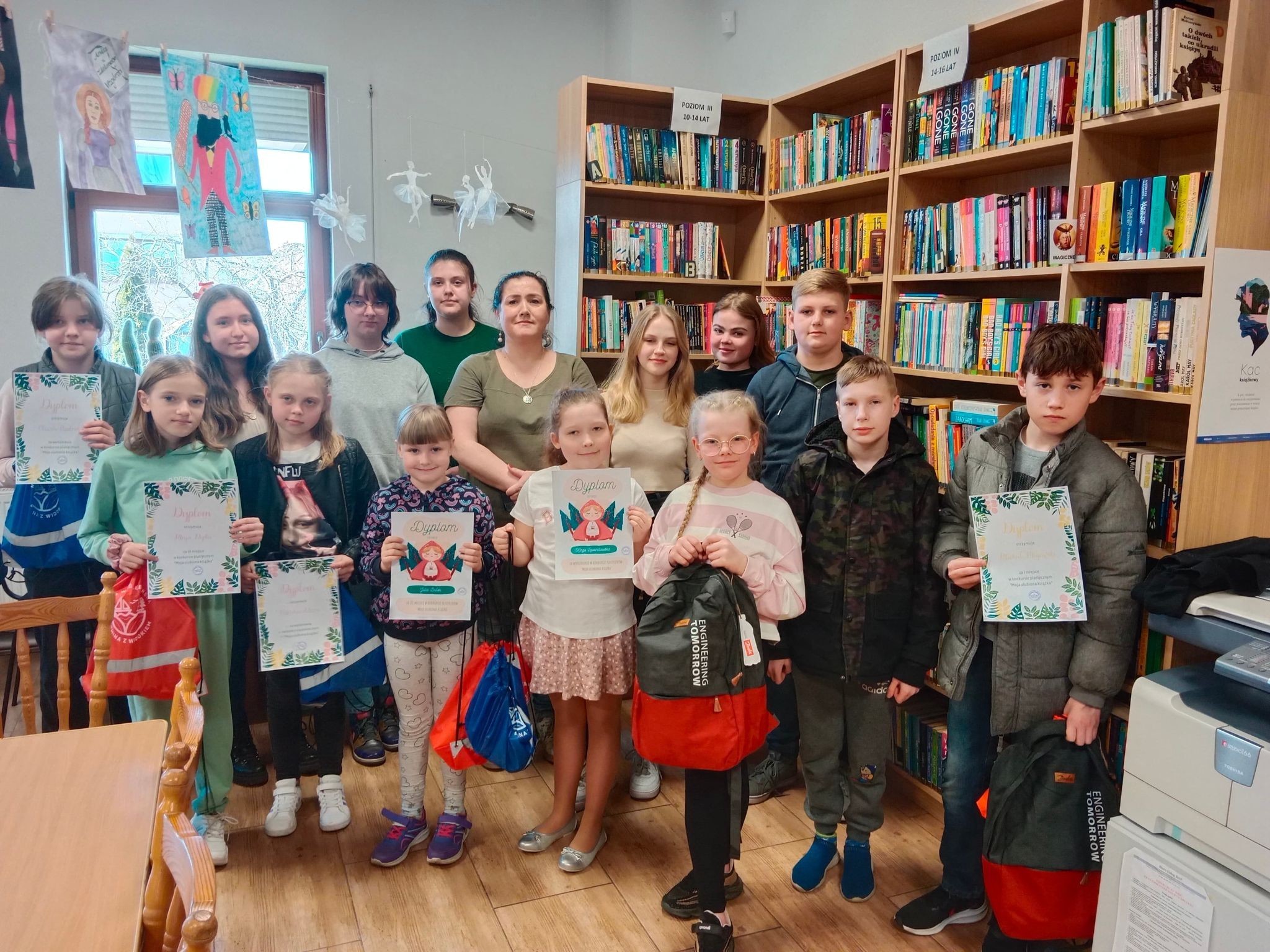 Uczniowie naszej szkoły wzięli udział w konkursie pod tytułem „Moja ulubiona książka”, organizowanym przez Bibliotekę Publiczną Gminy Nowa Wieś Lęborska. Zadaniem uczestników było przedstawienie za pomocą pracy plastycznej tematu swojej ulubionej książki.