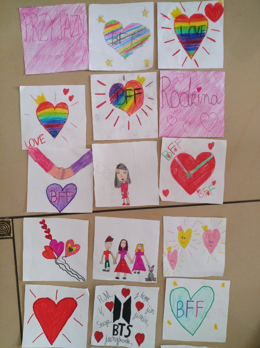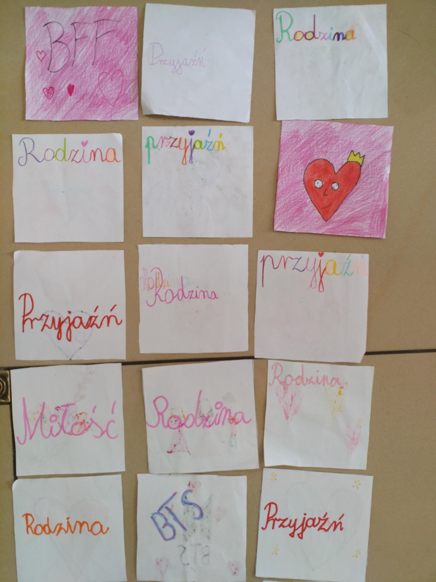 W związku z tym odbyły się już pierwsze zajęcia dotyczące wartości. Uczniowie w ramach zajęć tworzyli swoje własne karty wartości. Po jednej stronie karty napisane jest słowo, a po drugiej znajduje się rysunek, grafika, kolaż do danej wartości