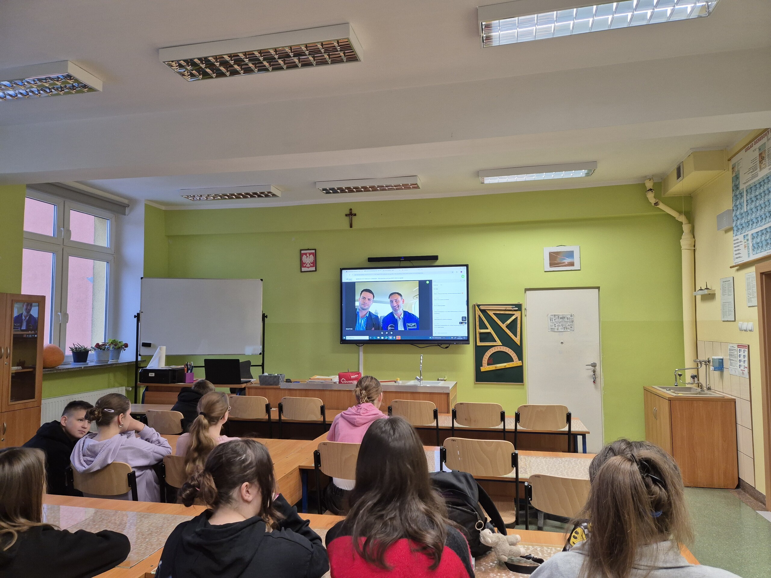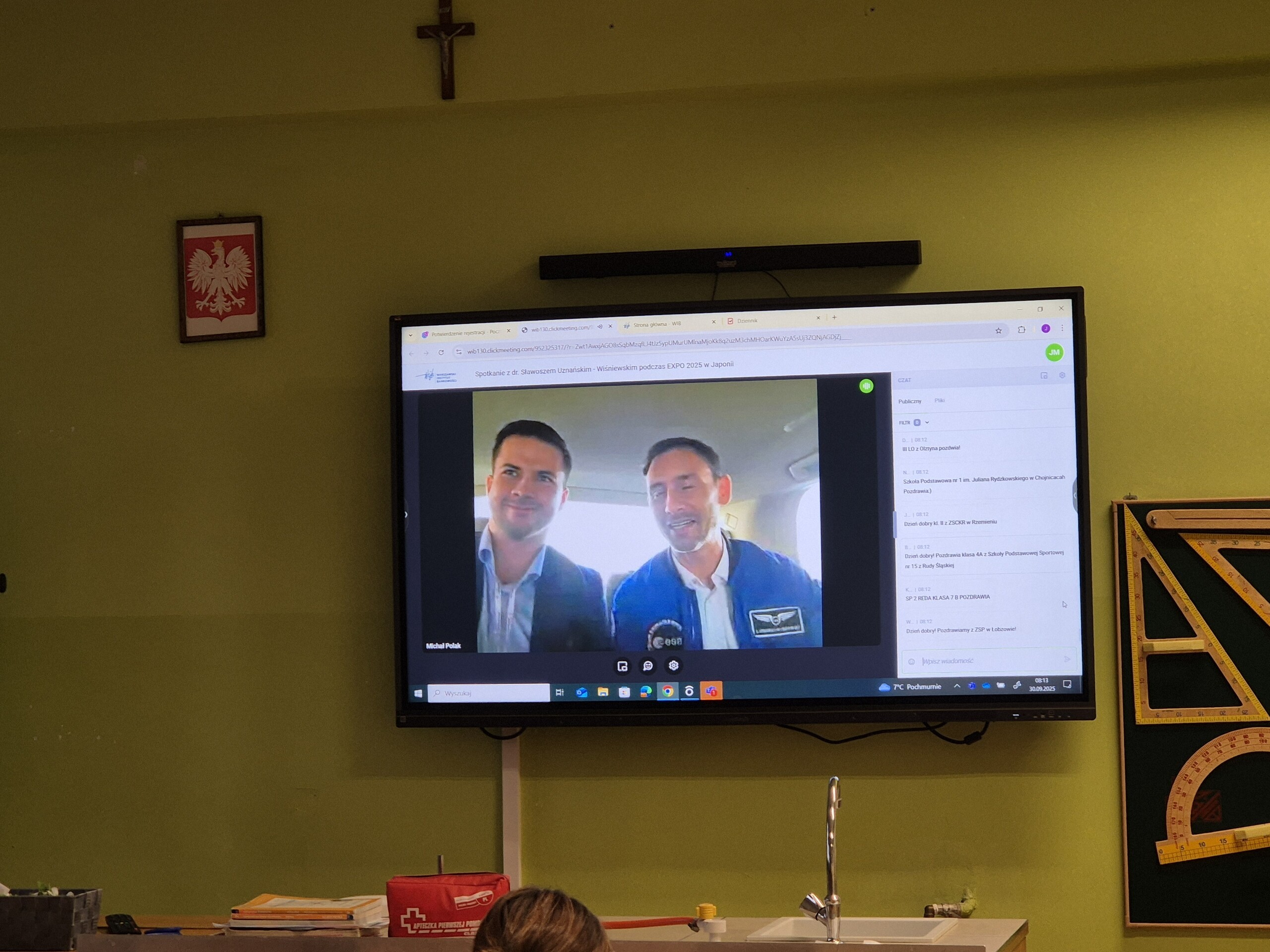 30 września uczniowie klasy 7b mieli wyjątkową okazję uczestniczyć w spotkaniu online z dr. Sławoszem Uznańskim-Wiśniewskim, polskim astronautą, prosto z Polskiego Pawilonu Expo 2025 w Osace.