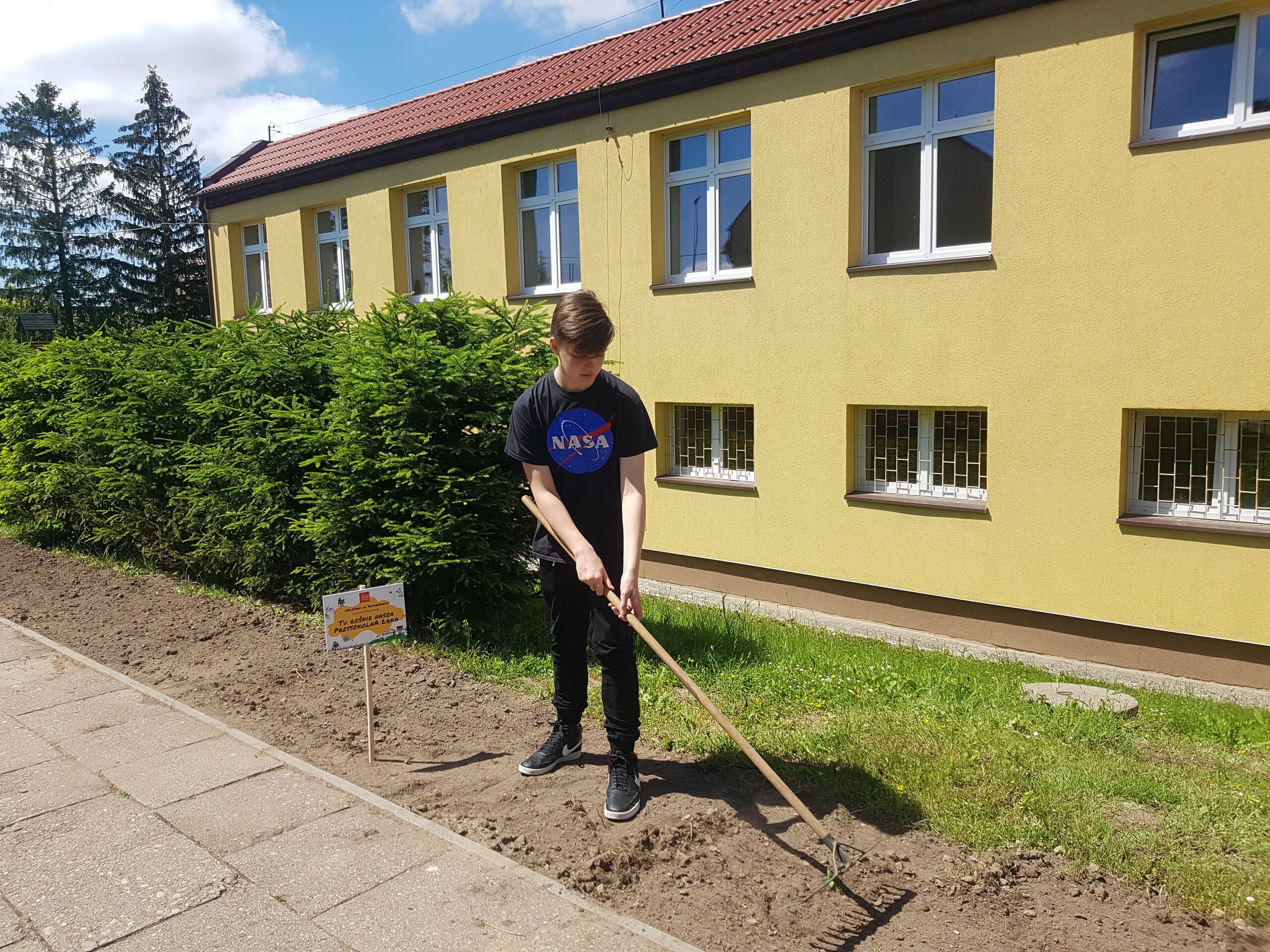 W maju 2022 roku nasza szkoła przystąpiła do projektu „Oblatani w pomaganiu”. Projekt zakładał stworzenie łąki dla pszczół.