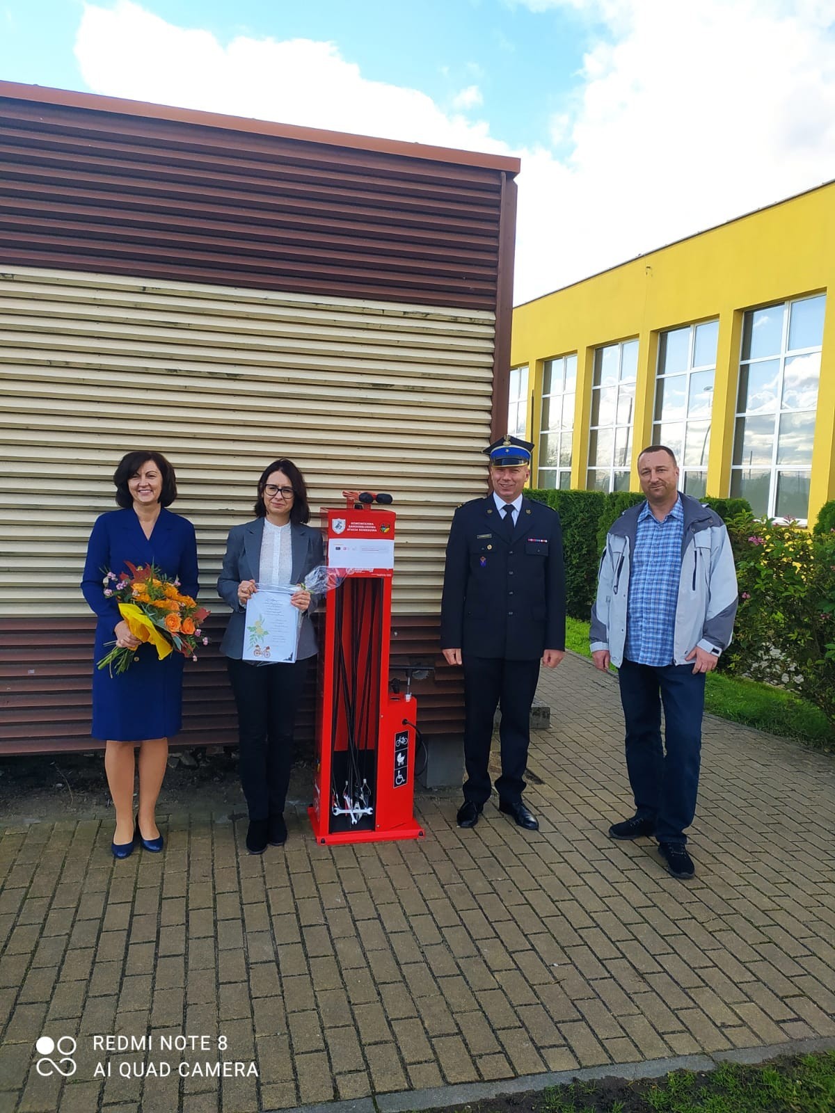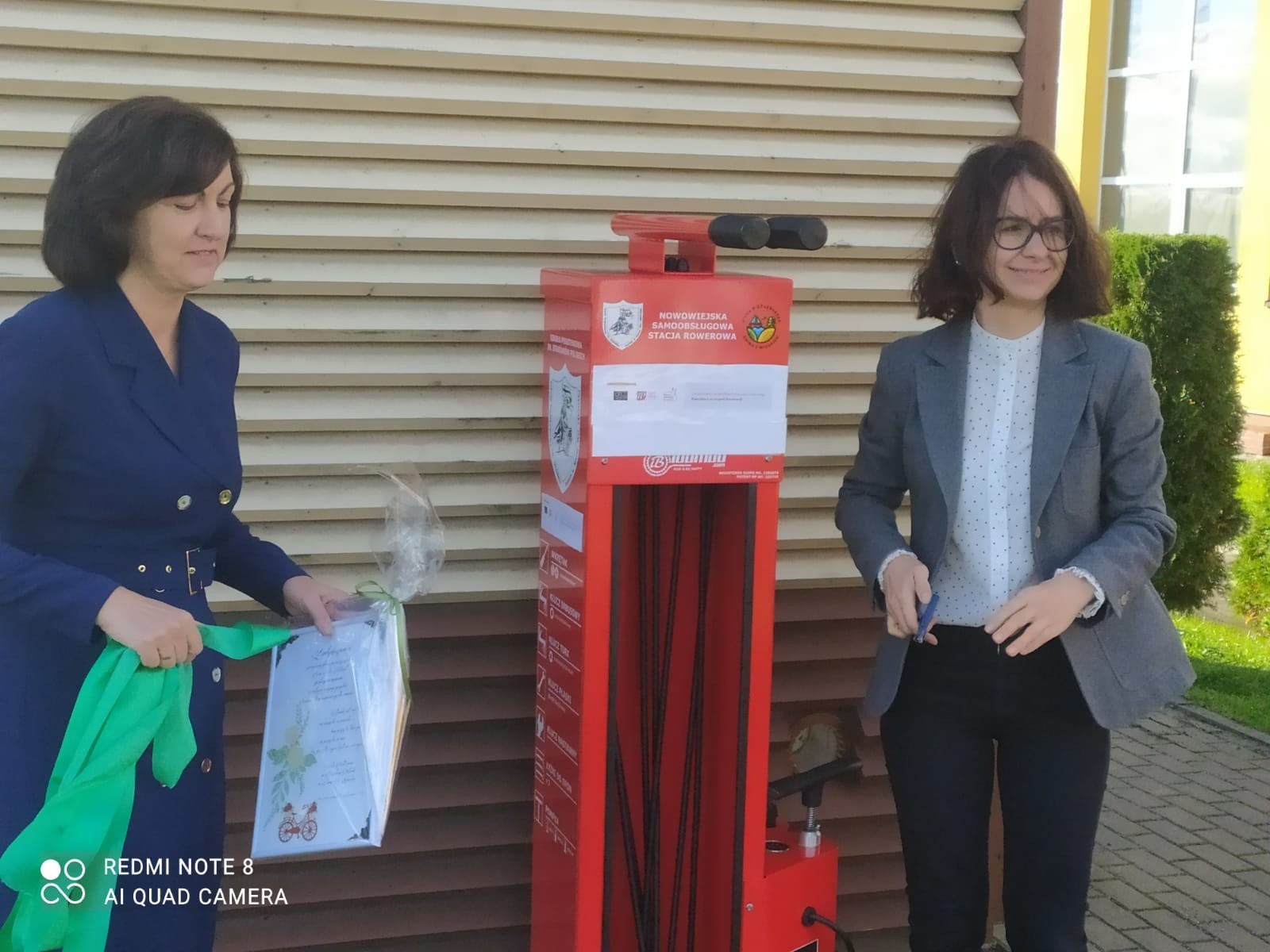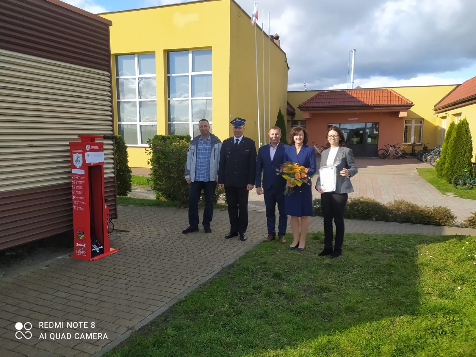 Nowowiejska Samoobsługowa Stacja Rowerowa jest już oficjalnie otwarta! Na uroczyste jej przekazanie przybyli: Pani Katarzyna Majchrzak (Szef działu komunikacji i zaangażowania społecznego w Farm Frites Poland), Pan Piotr Krzemiński (Komendant Powiatowy Państwowej Straży Pożarnej w Lęborku) oraz Pan Arkadiusz Politański (Przewodniczący Rady Rodziców).