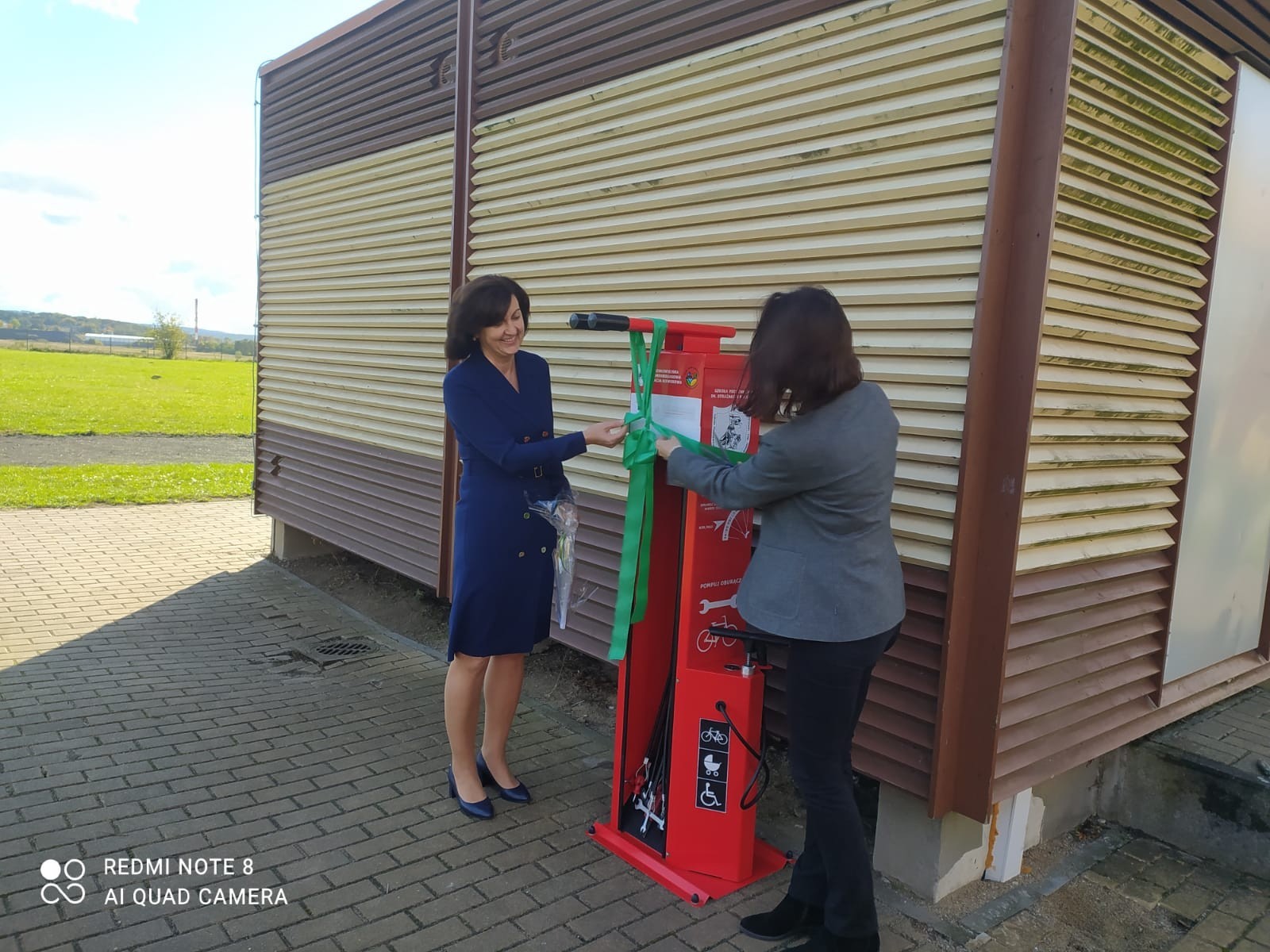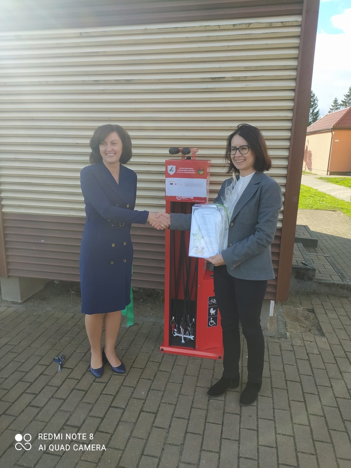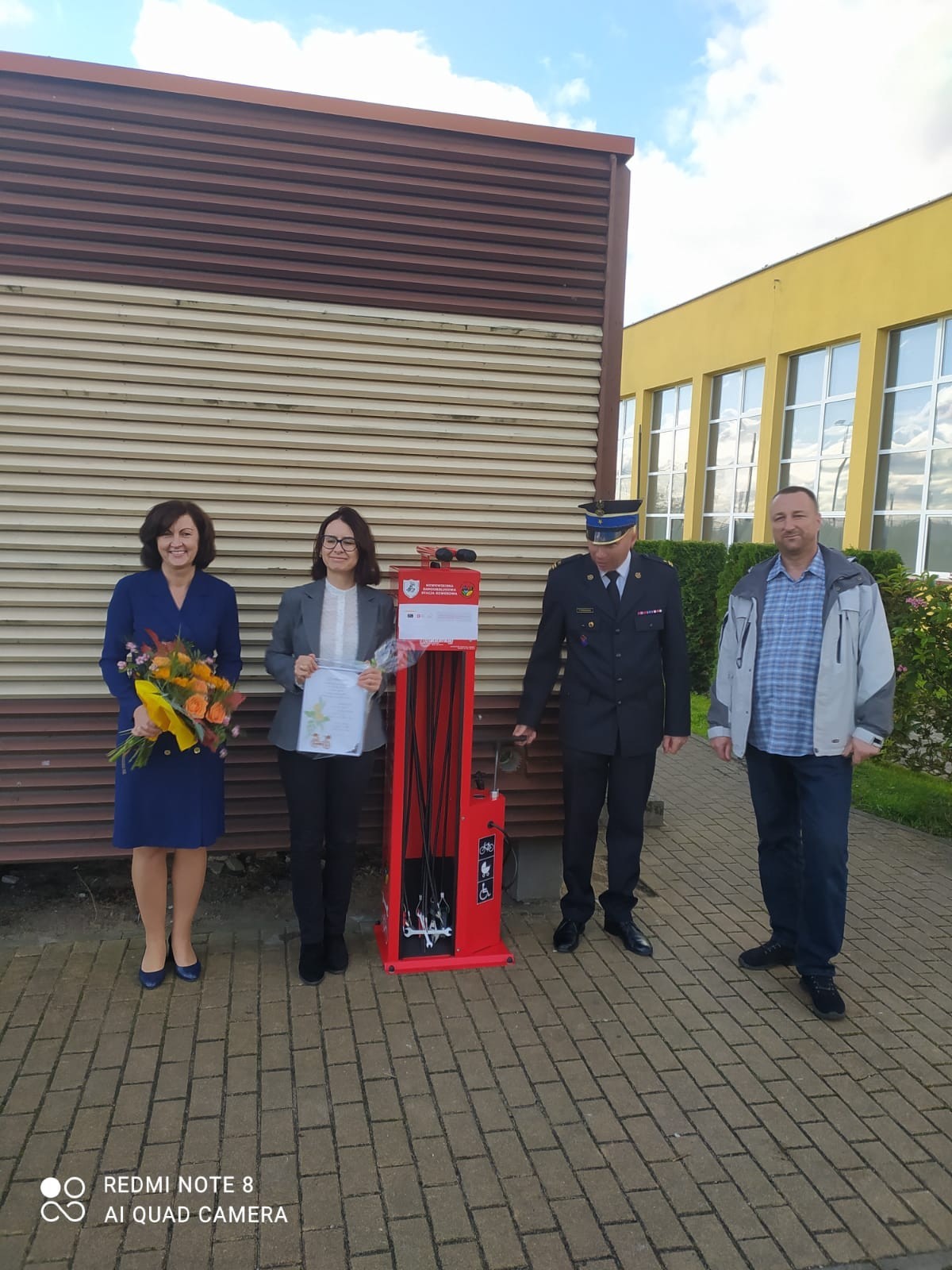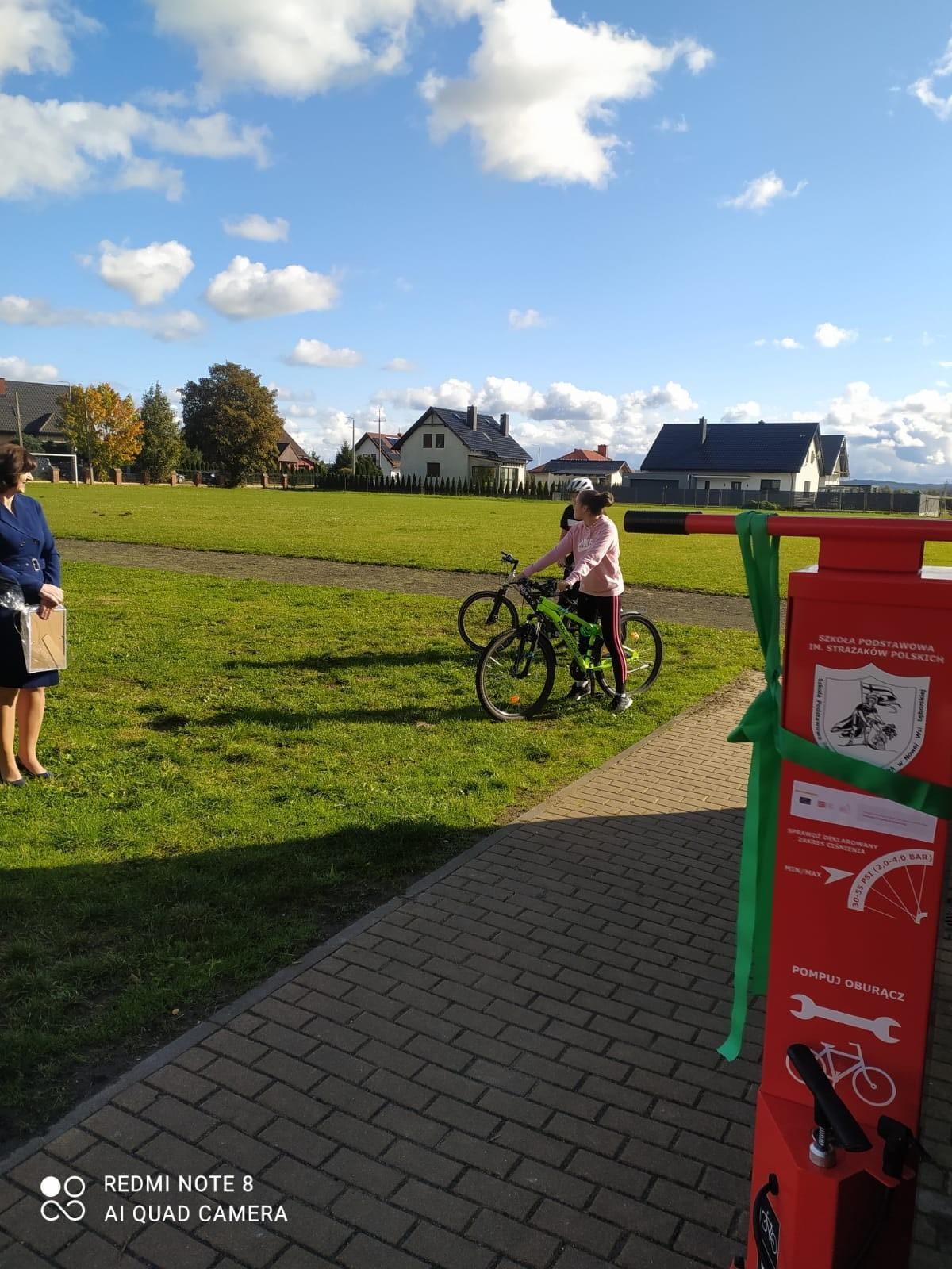 Nowowiejska Samoobsługowa Stacja Rowerowa jest już oficjalnie otwarta! Na uroczyste jej przekazanie przybyli: Pani Katarzyna Majchrzak (Szef działu komunikacji i zaangażowania społecznego w Farm Frites Poland), Pan Piotr Krzemiński (Komendant Powiatowy Państwowej Straży Pożarnej w Lęborku) oraz Pan Arkadiusz Politański (Przewodniczący Rady Rodziców).