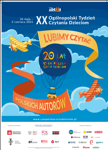 „Lubimy czytać polskich autorów” to hasło przewodnie XX Ogólnopolskiego Tygodnia Czytania Dzieciom. Ideą wydarzenia jest zachęcanie do regularnego, wspólnego czytania oraz promowanie wartościowej literatury dla dzieci i młodzieży. W tym roku wspólnie czytaliśmy utwory polskich autorów ze Złotej Listy rekomendowanej przez Fundację ABC XXI- Cała Polska Czyta Dzieciom.