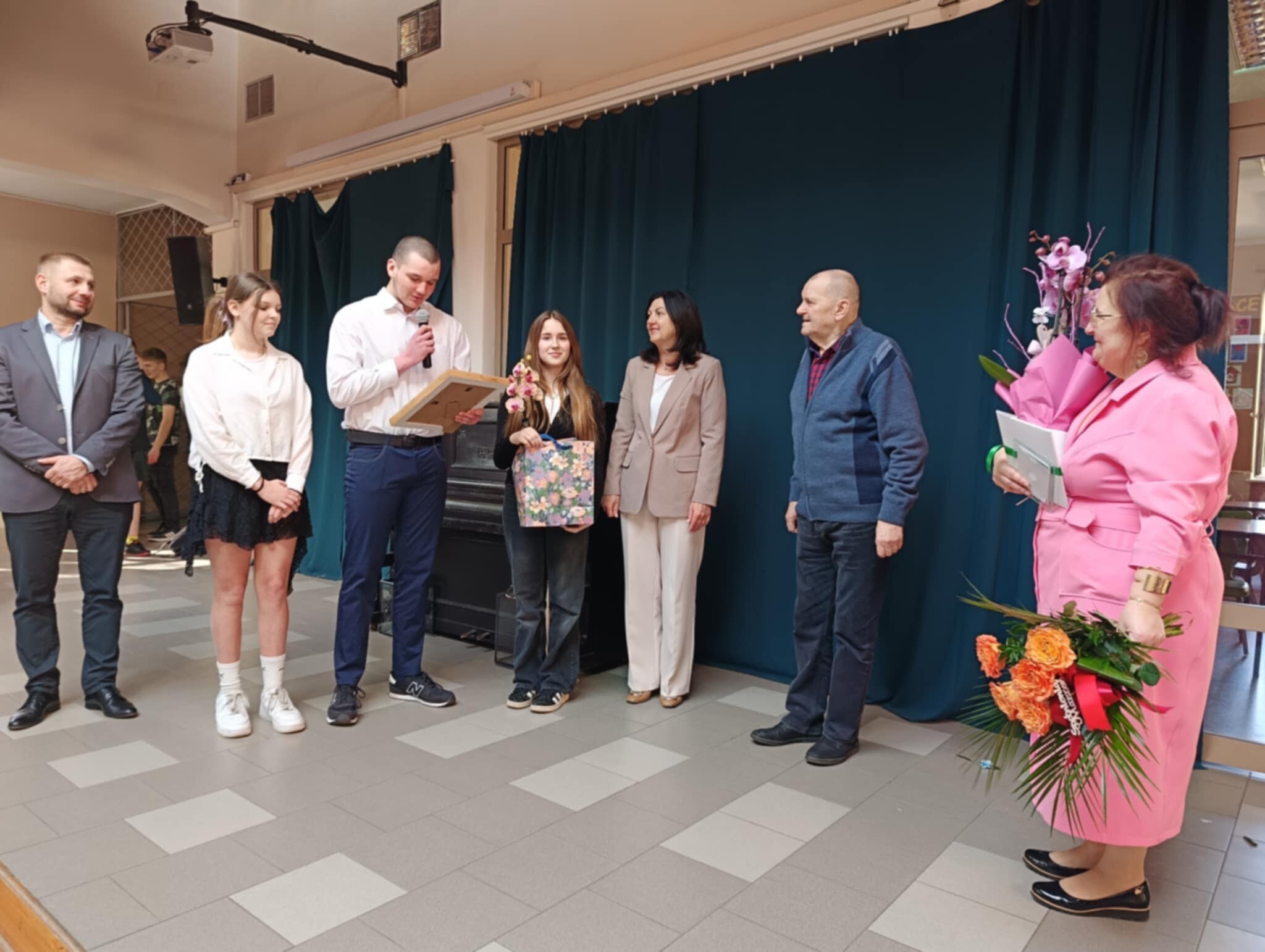 7 marca pożegnaliśmy odchodzącą na emeryturę p.Joannę Hebel. Pani Joanna pełniła funkcję sekretarza naszej szkoły od 1997 r. Pani Dyrektor w imieniu własnym i wszystkich pracowników szkoły ze wzruszeniem w głosie pożegnała odchodzącą na zasłużoną emeryturę koleżankę. Słowa podziękowania za wieloletnią pracę i serdeczność w imieniu całej społeczności uczniowskiej wygłosili przedstawiciele samorządu uczniowskiego. Dla Pani Ali kończy się czas trudnej, ale jakże satysfakcjonującej pracy i zaczyna okres zasłużonego odpoczynku w gronie rodziny i przyjaciół.