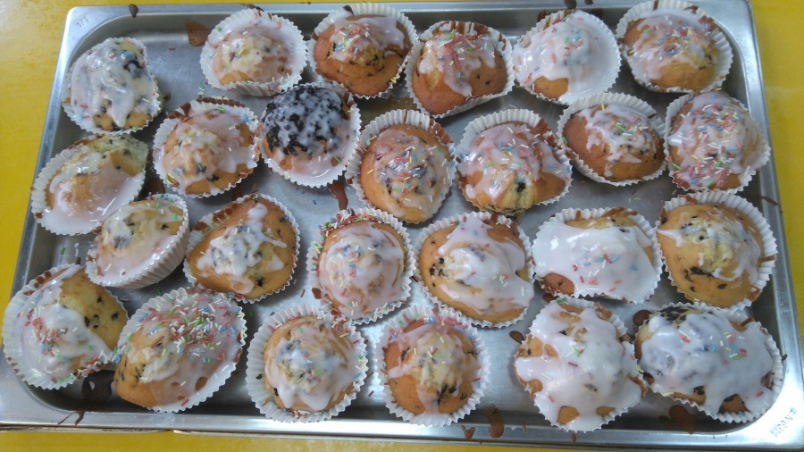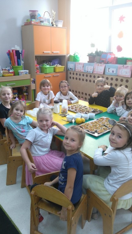 24 października br. uczniowie grupy 0 „b” postanowili wypróbować swoich sił w kuchni. Na początku zajęć dzieci rozpoznawały i nazywały przygotowane produkty, omawiały przybory wykorzystywane w przygotowywaniu ciast, aż w końcu zabrały się za robienie babeczek - łączyły potrzebne składniki, mieszały je, z pomocą swoich wychowawczyń nakładały do foremek. Po wypieczeniu i wystudzeniu babeczek przystąpiliśmy do dekoracji. Wszystkie dzieci starannie polukrowały i ozdobiły swoje słodkie dzieła. Babeczek próbować będziemy jutro podczas „Balu jesiennego”. Na pewno będzie smacznie, zabawnie i bardzo kolorowo ;-)