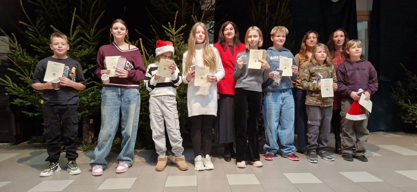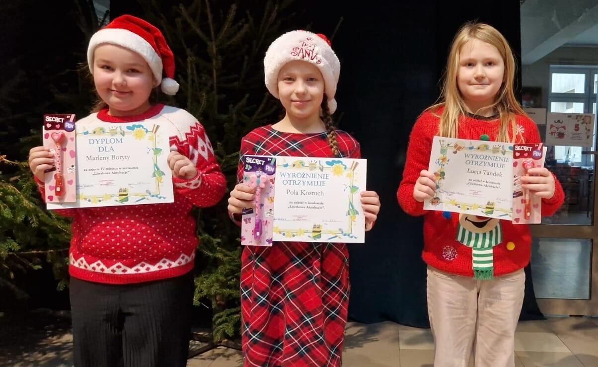 Dzisiejszy apel rozpoczęła Nikola Mielewczyk, która pięknie zaśpiewała piosenkę pt. ,,Hej ludzie idą święta" i wprowadziła nas w świąteczny nastrój. Podczas spotkania wręczyliśmy nagrody w konkursach szkolnych i pozaszkolnych – recytatorskich, polonistycznych, artystycznych oraz sportowych. Uczniowie klas I–III brali udział w konkursie „Bajkowa zakładka do książki”, a klasy IV–VIII przygotowały prace na konkurs „Okładka ulubionej książki”.