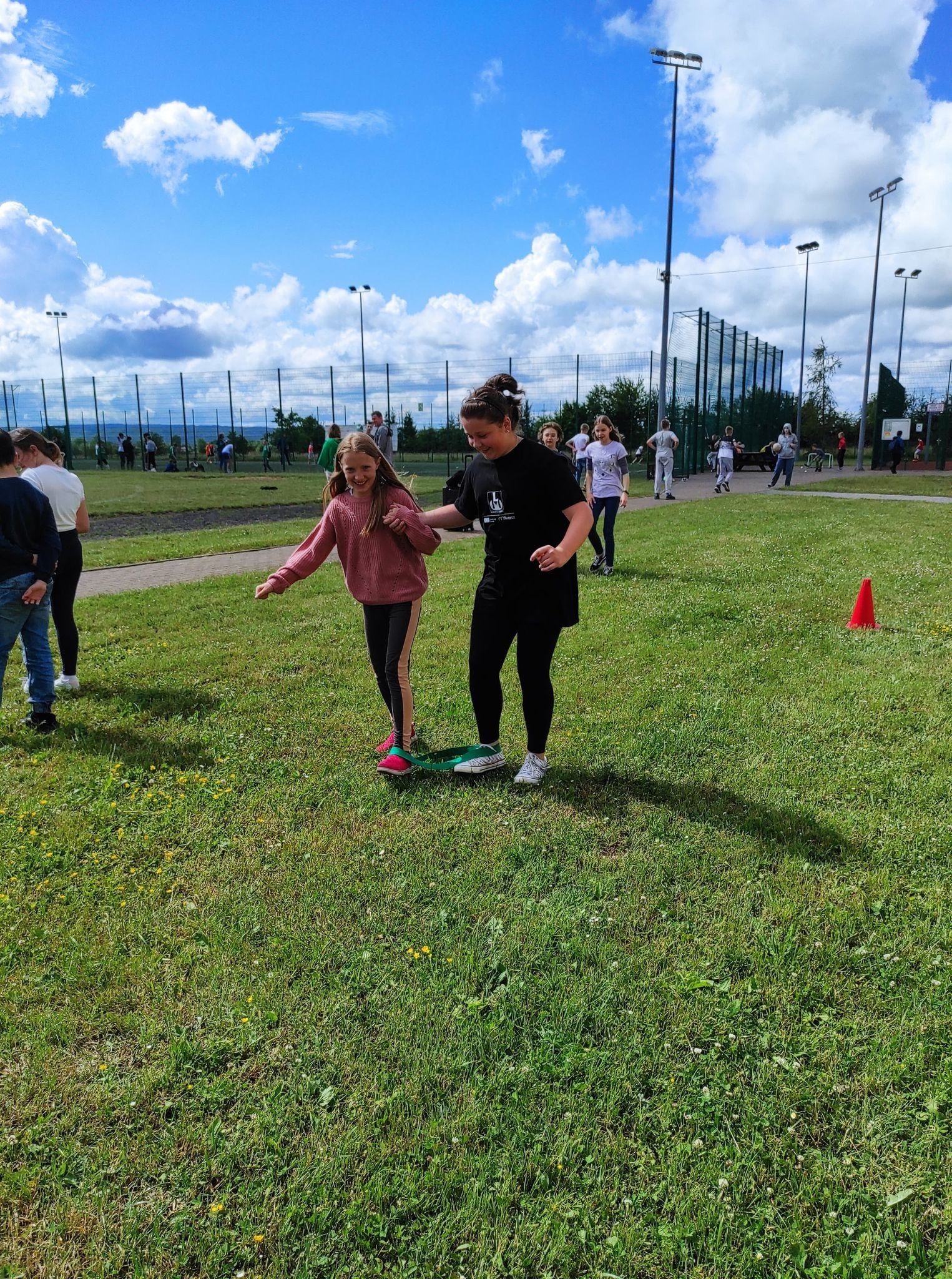 Po części oficjalnej ruszyliśmy do zabawy. Rozegraliśmy klasowe biegi sztafetowe i przeciąganie liny. Emocje dorównywały tym, które towarzyszą wielkim imprezom sportowym. Wspaniały doping wychowawców, koleżanek i kolegów z klasy, niósł młodych biegaczy jak na skrzydłach.